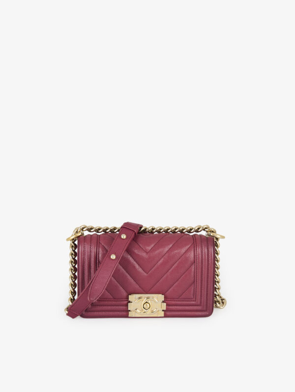 Petit sac Boy Chanel cuir grainé cerise