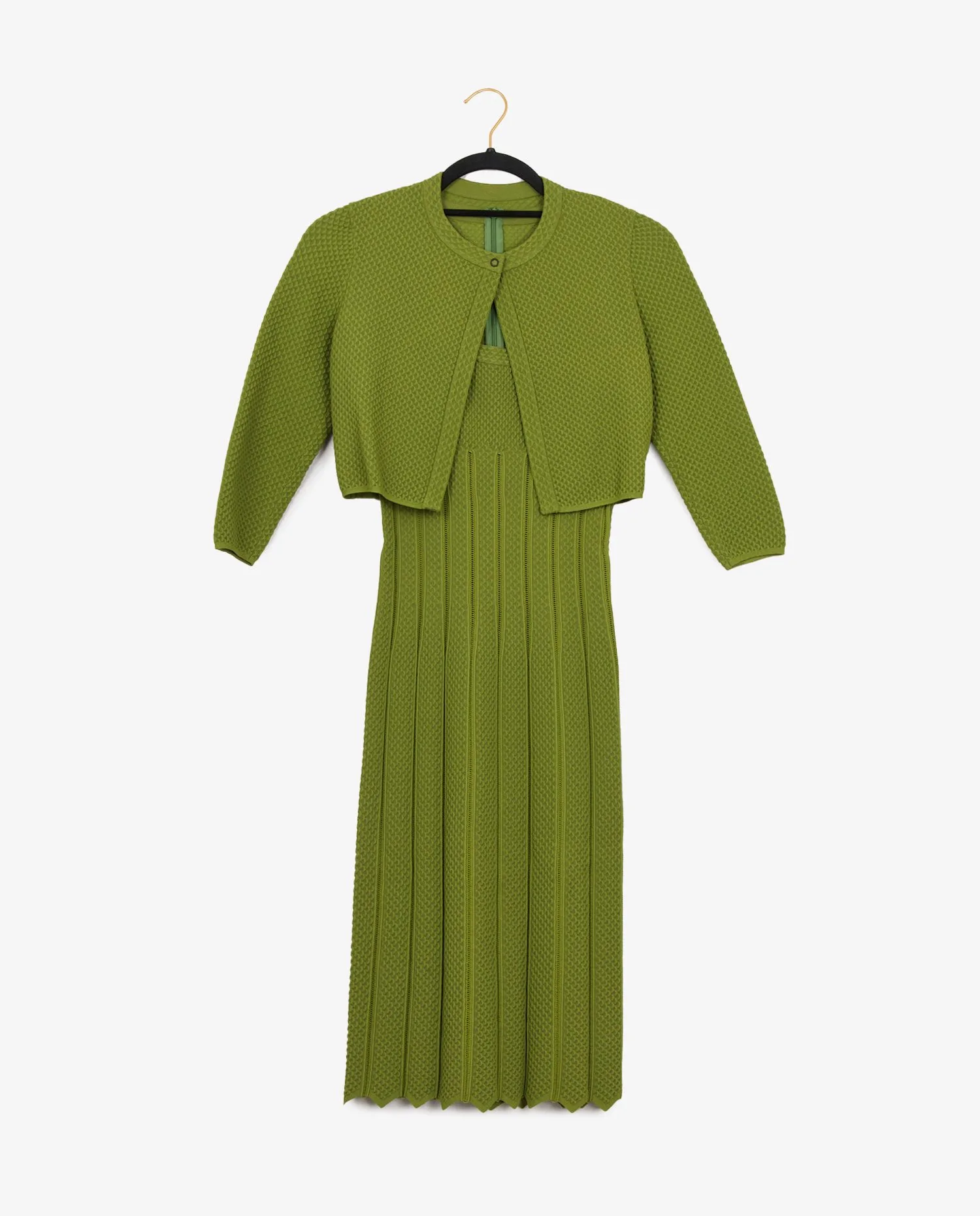 Alaia dress and cardigan set. The dress is fitted and mid-length. In very good condition.