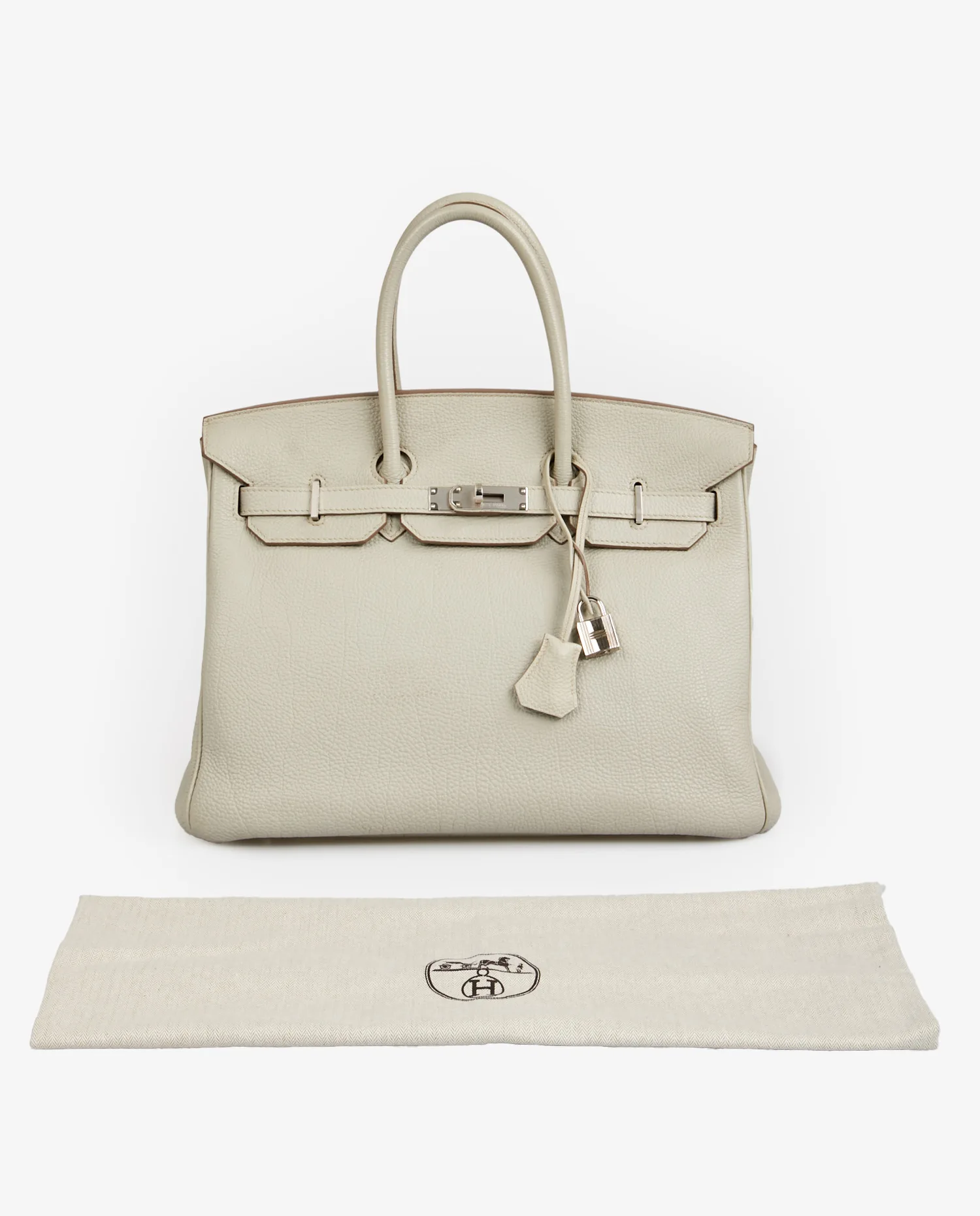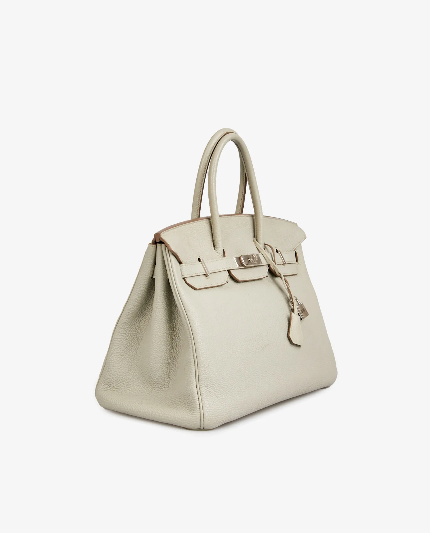 Born in 1984 from the meeting of Jane Birkin and Jean-Louis Dumas, the Birkin quickly became an icon of Hermès leather goods. Designed to be practical, spacious and sophisticated, it has been a coveted model since its early years. The 35 cm size is the most versatile in the line, suitable for both everyday use and more formal occasions. Togo leather, introduced in the 90s, quickly became a house standard for its lightness, ability to retain its shape and naturally elegant texture. The rarely offered, confidential Gris Neve color adds a singular value sought after by collectors.