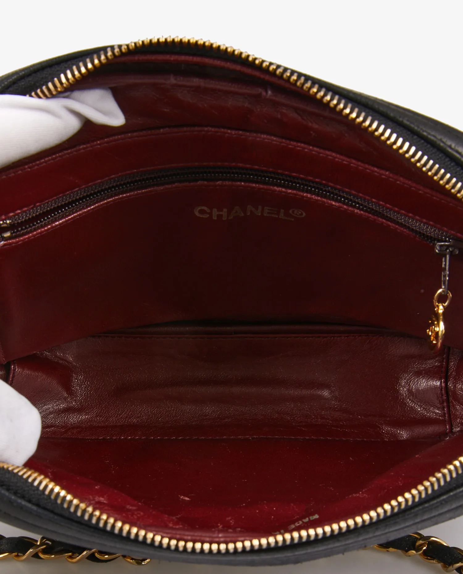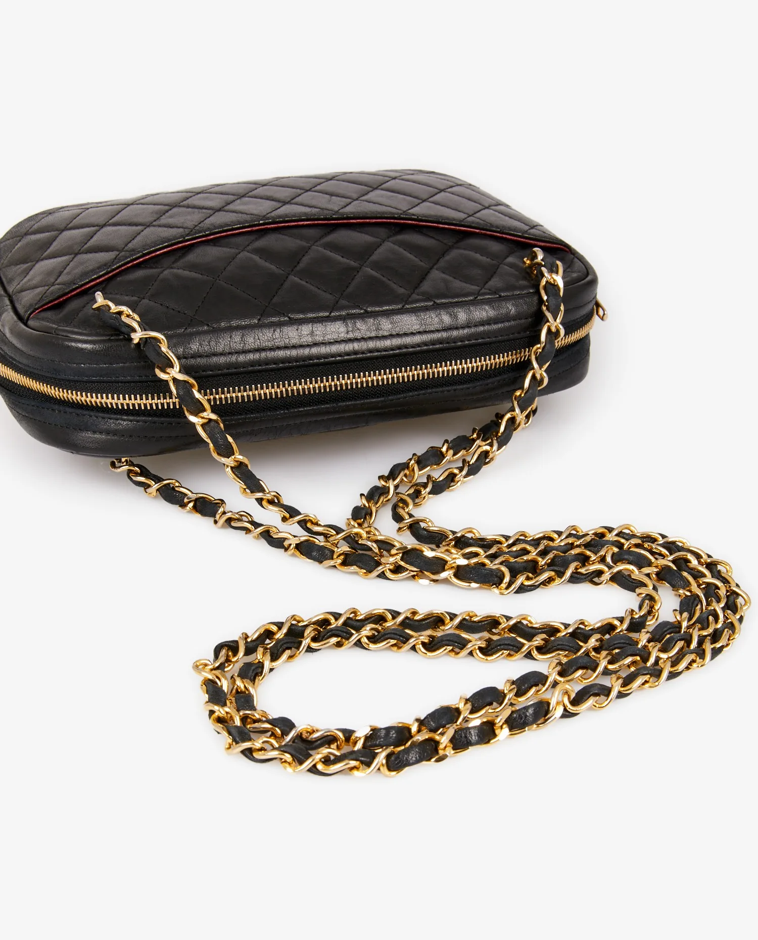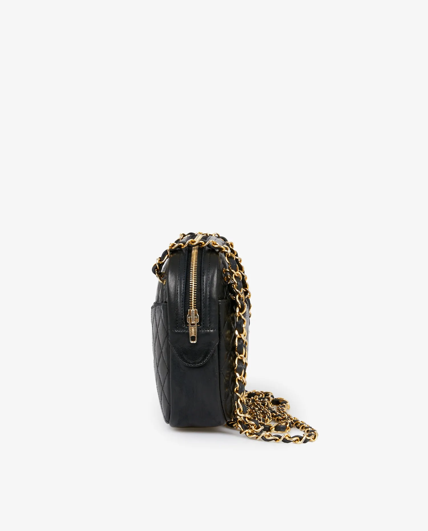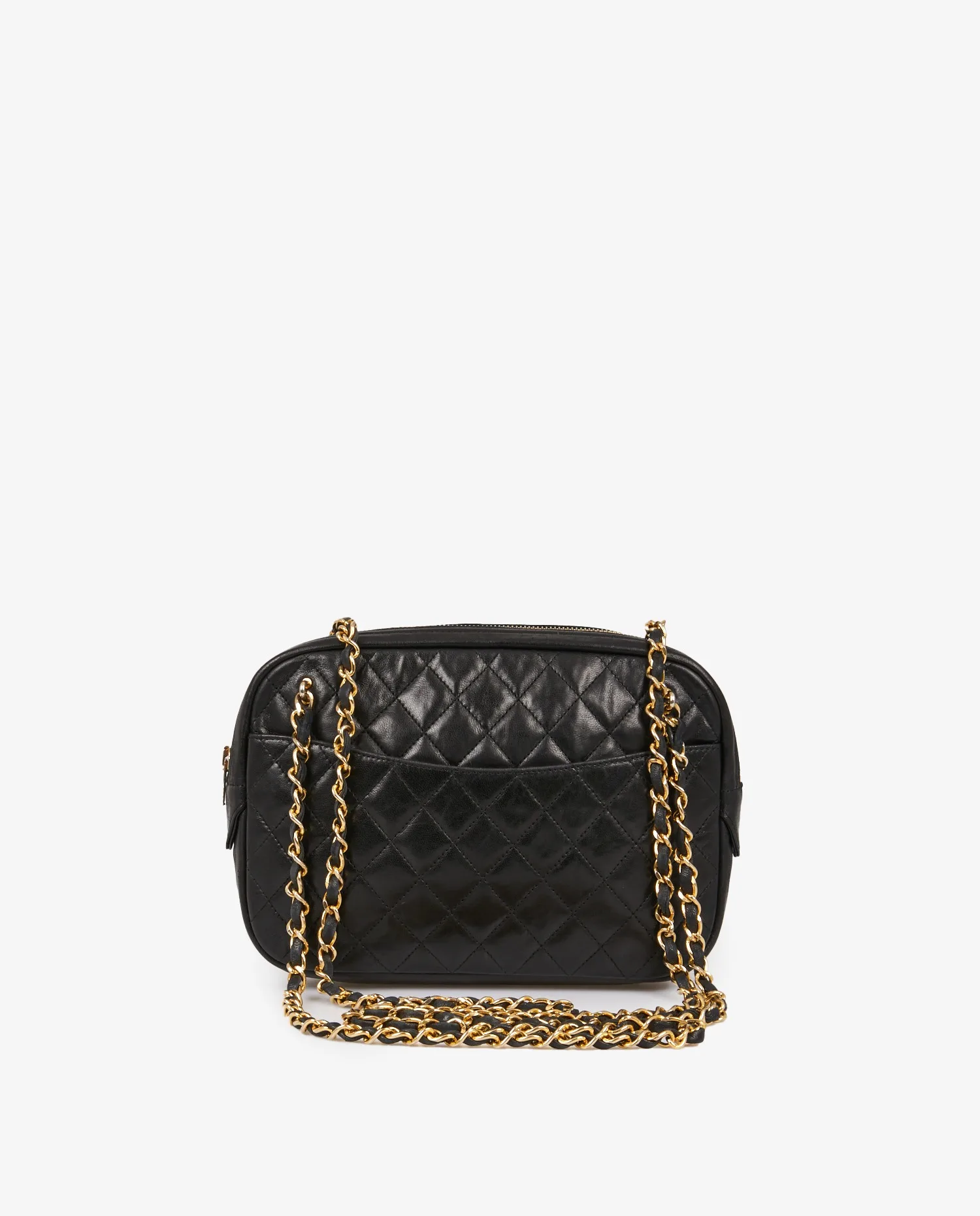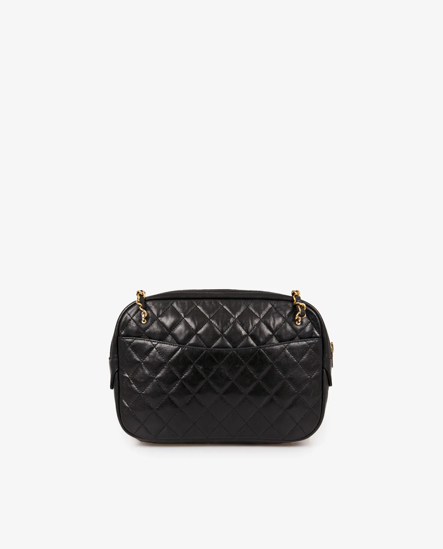 Vintage Chanel Camera bag in black lambskin. Carried on the shoulder or across the body (102cm). In very good condition. Slight wear due to age.
