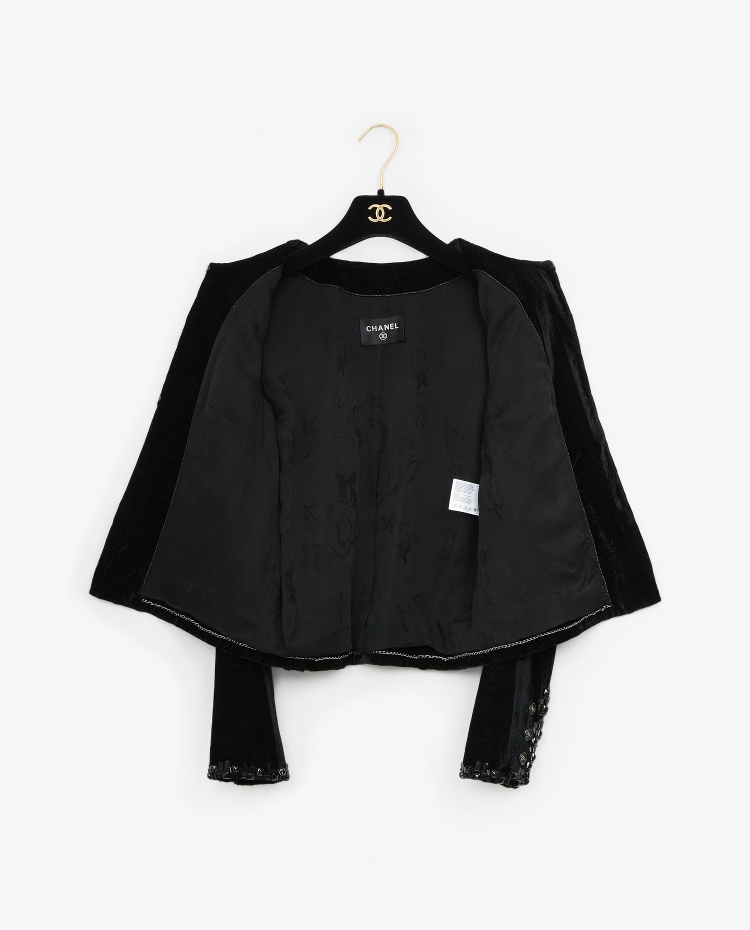 Chanel evening jacket in black velvet. Size 36. In very good condition.