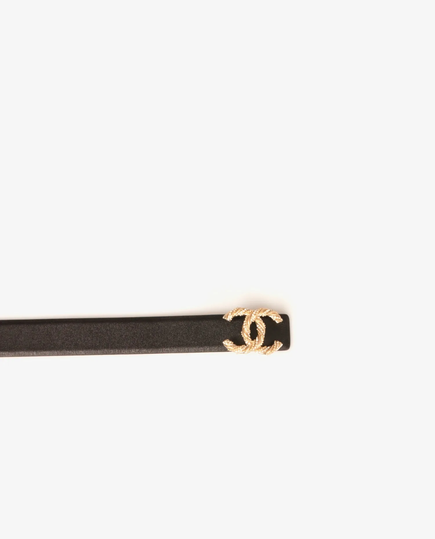 Chanel black leather belt CC buckle rhinestones