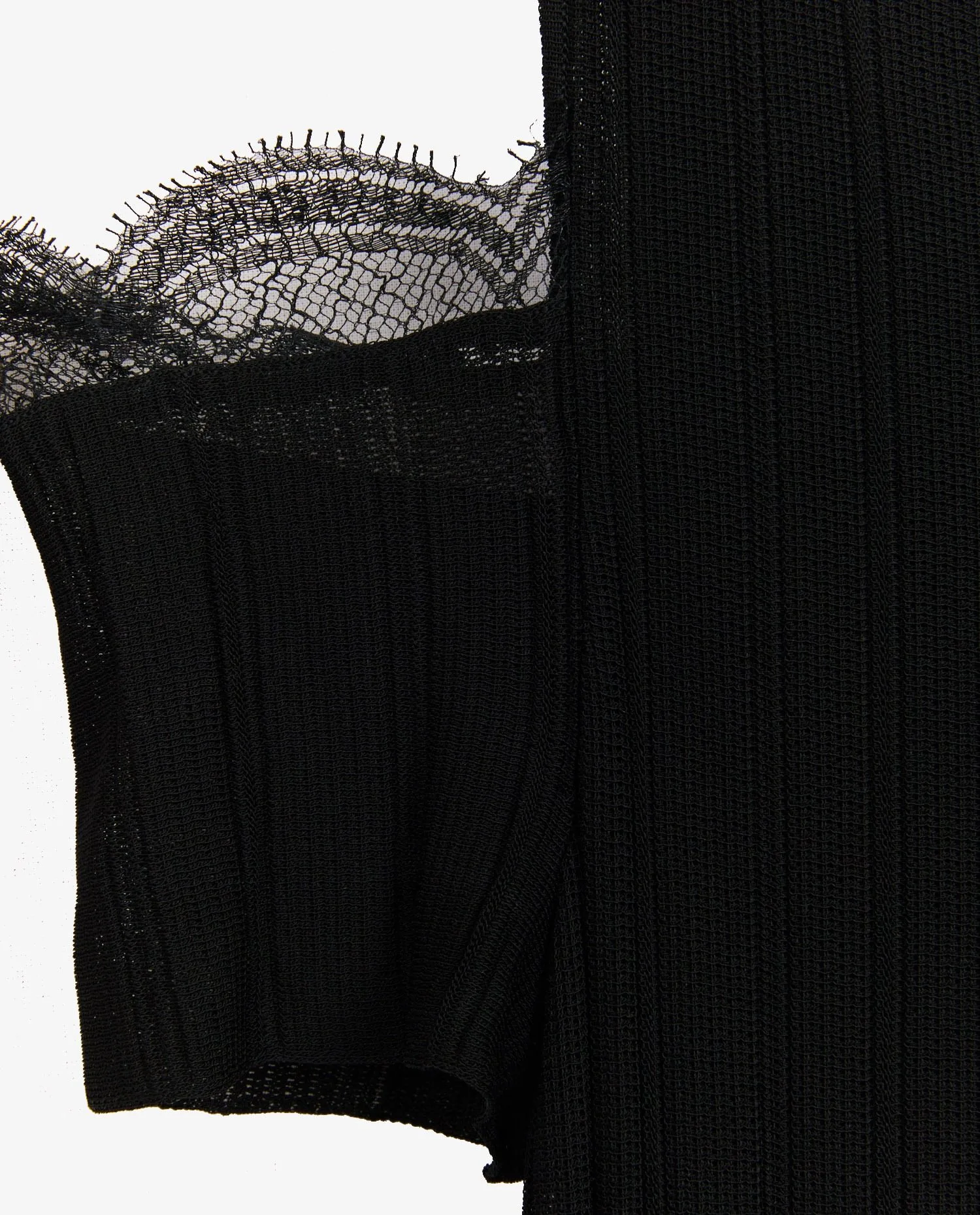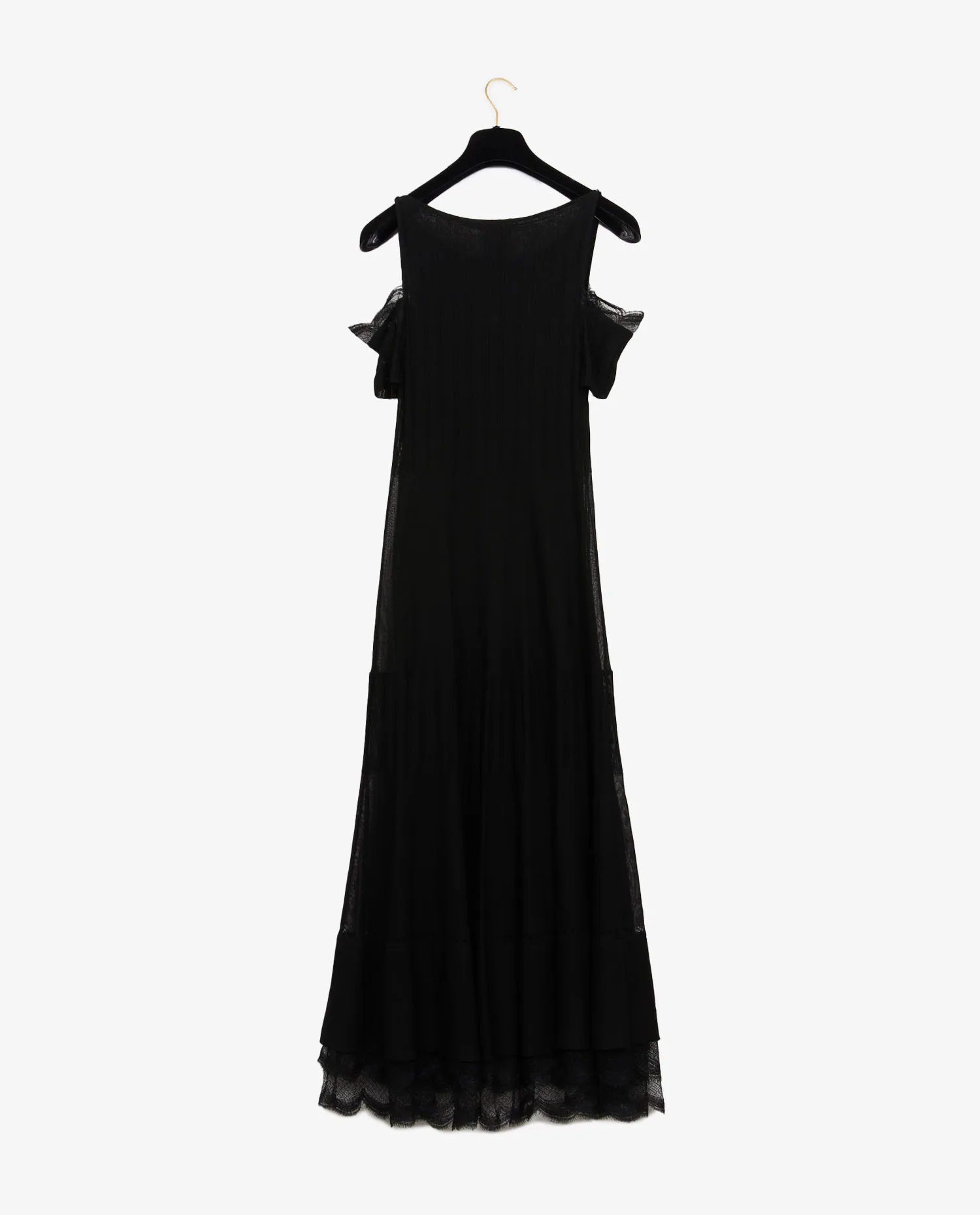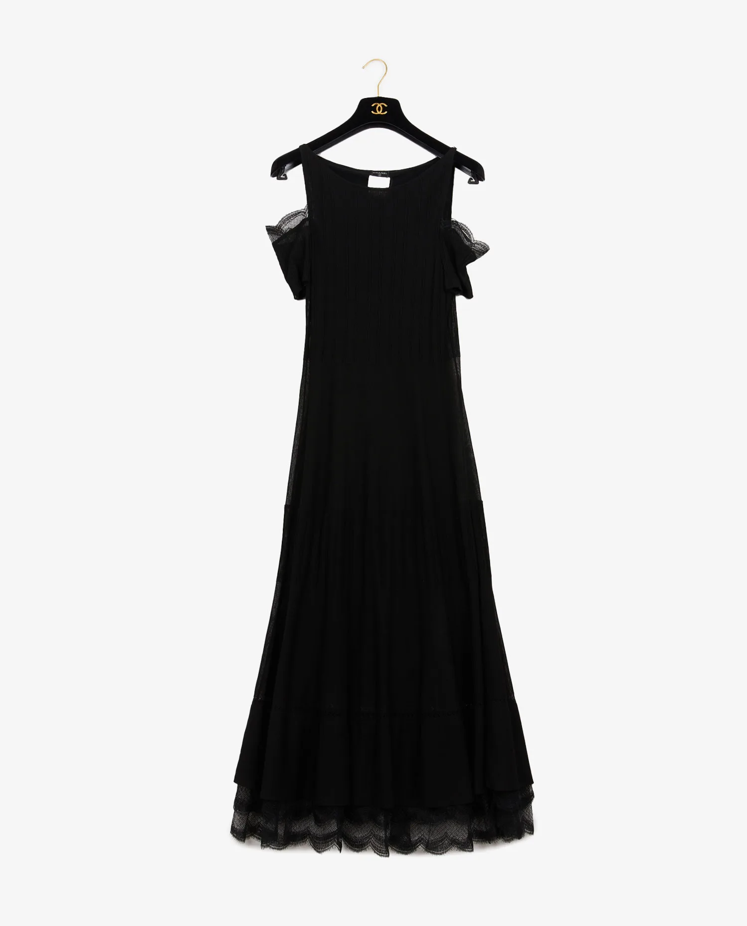 Chanel black long dress in lace. Sober yet elegant. In very good condition. Slight but inconspicuous snag at front.