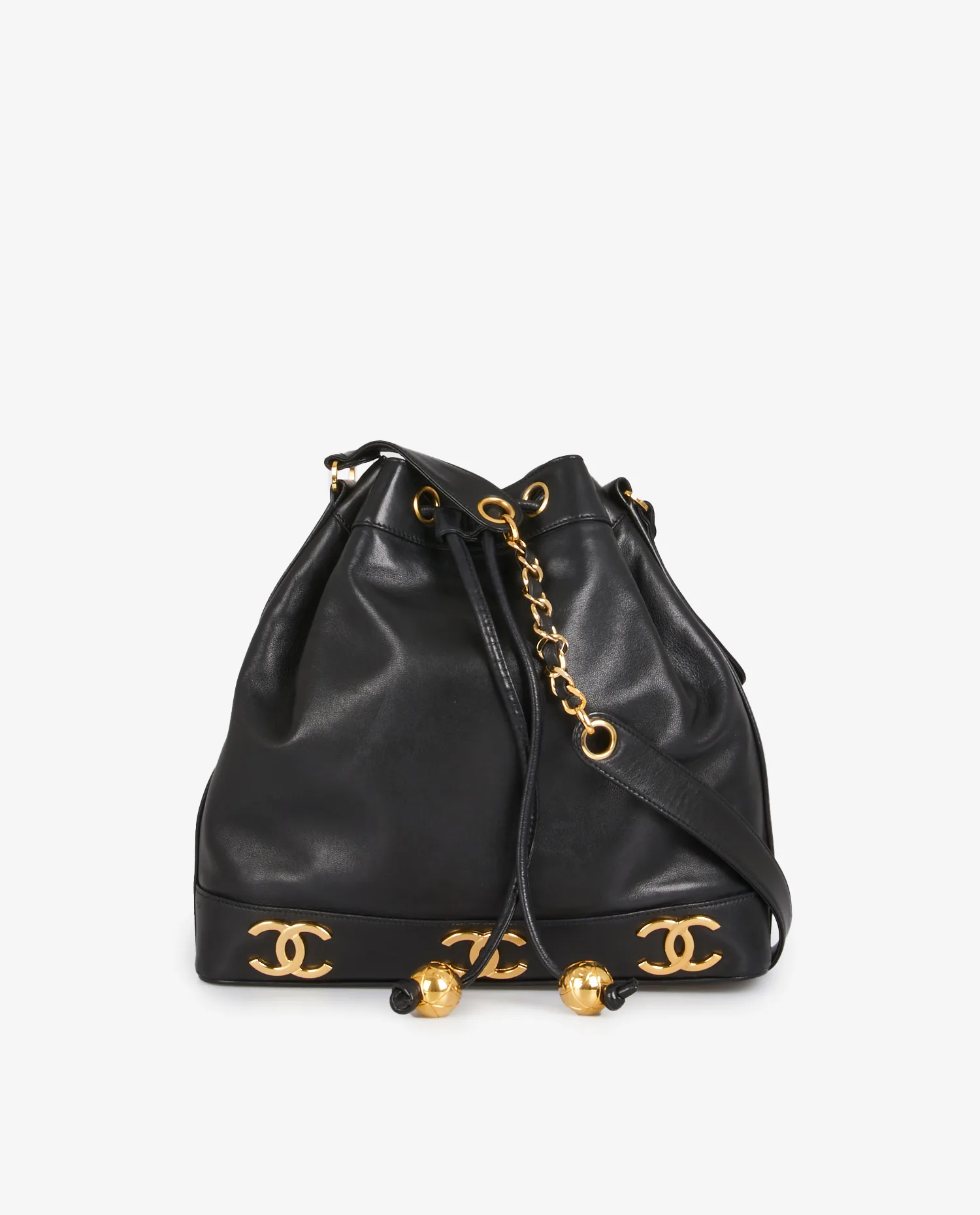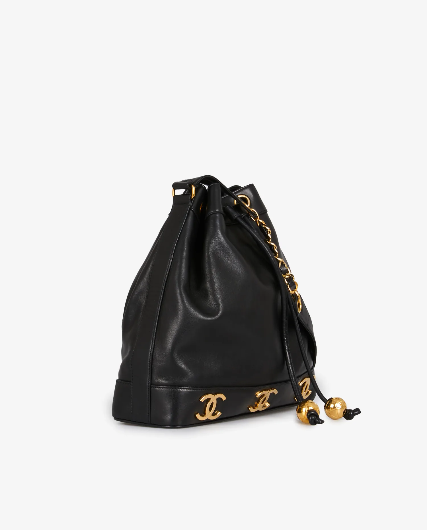 Vintage Chanel bucket bag in black lambskin. Carried on the shoulder or across the body (102cm). In very good condition.