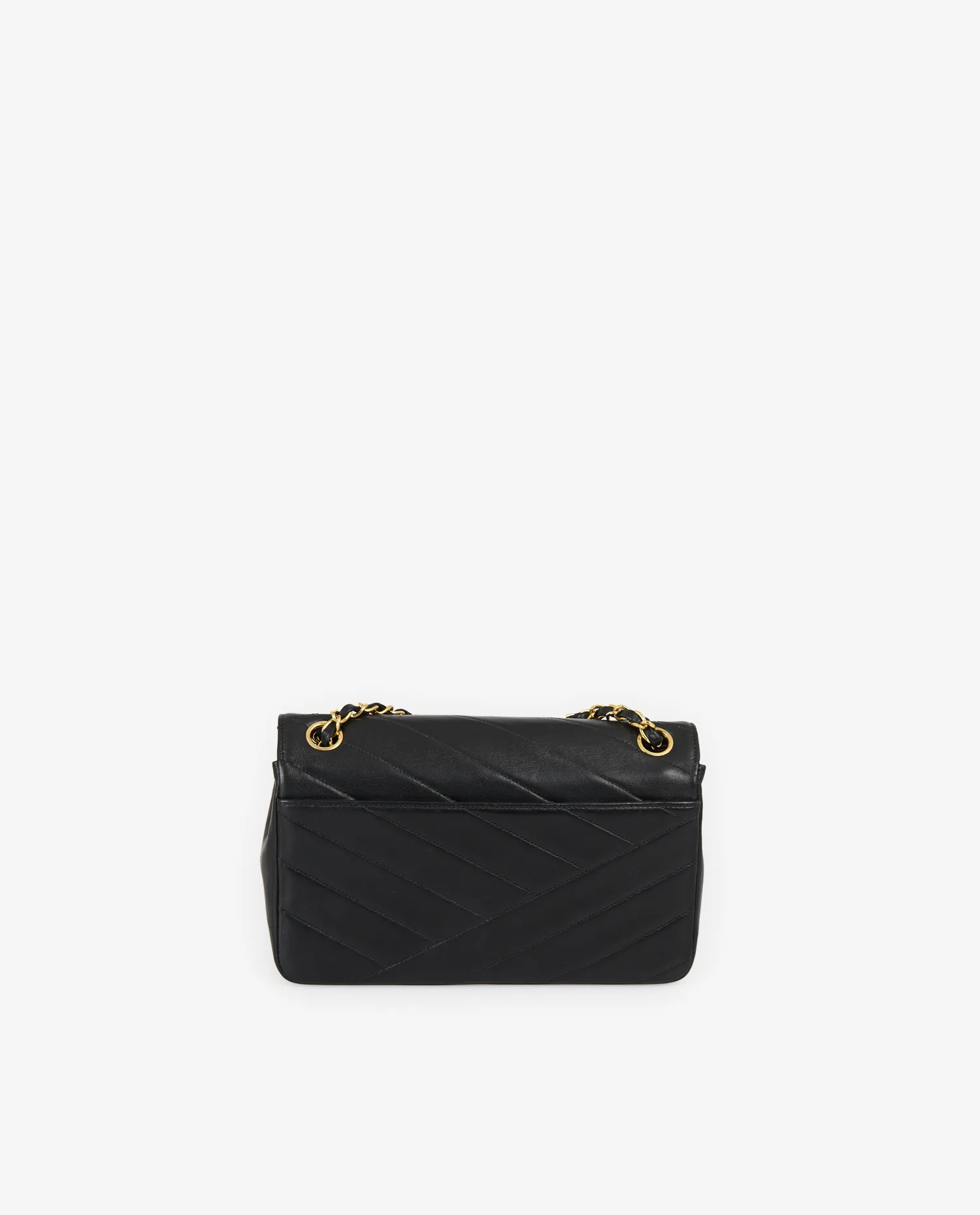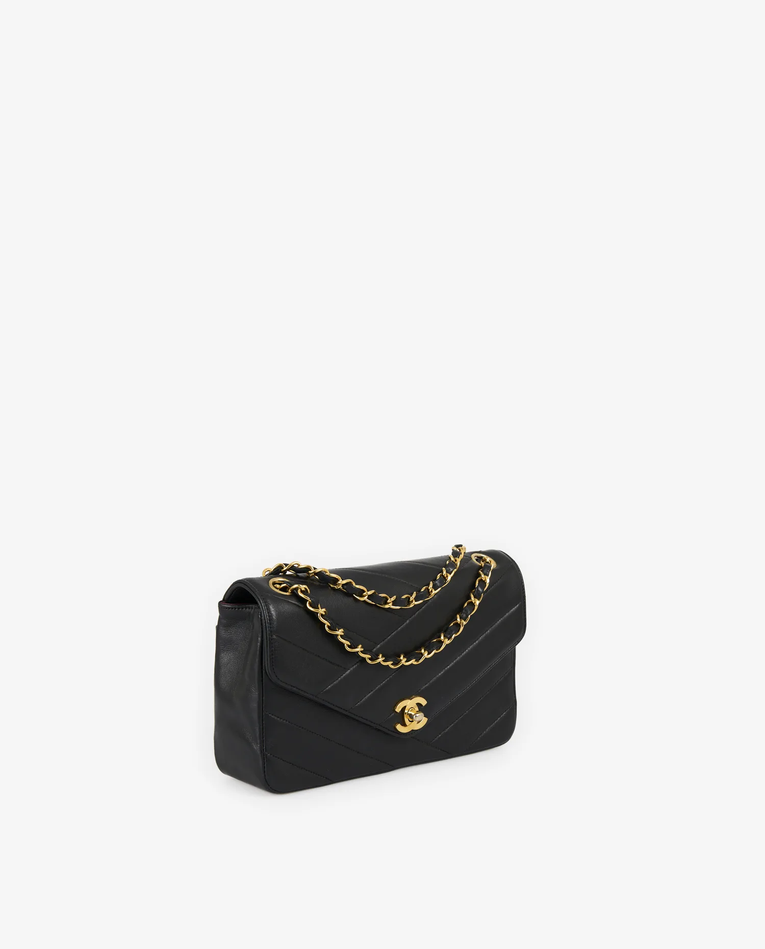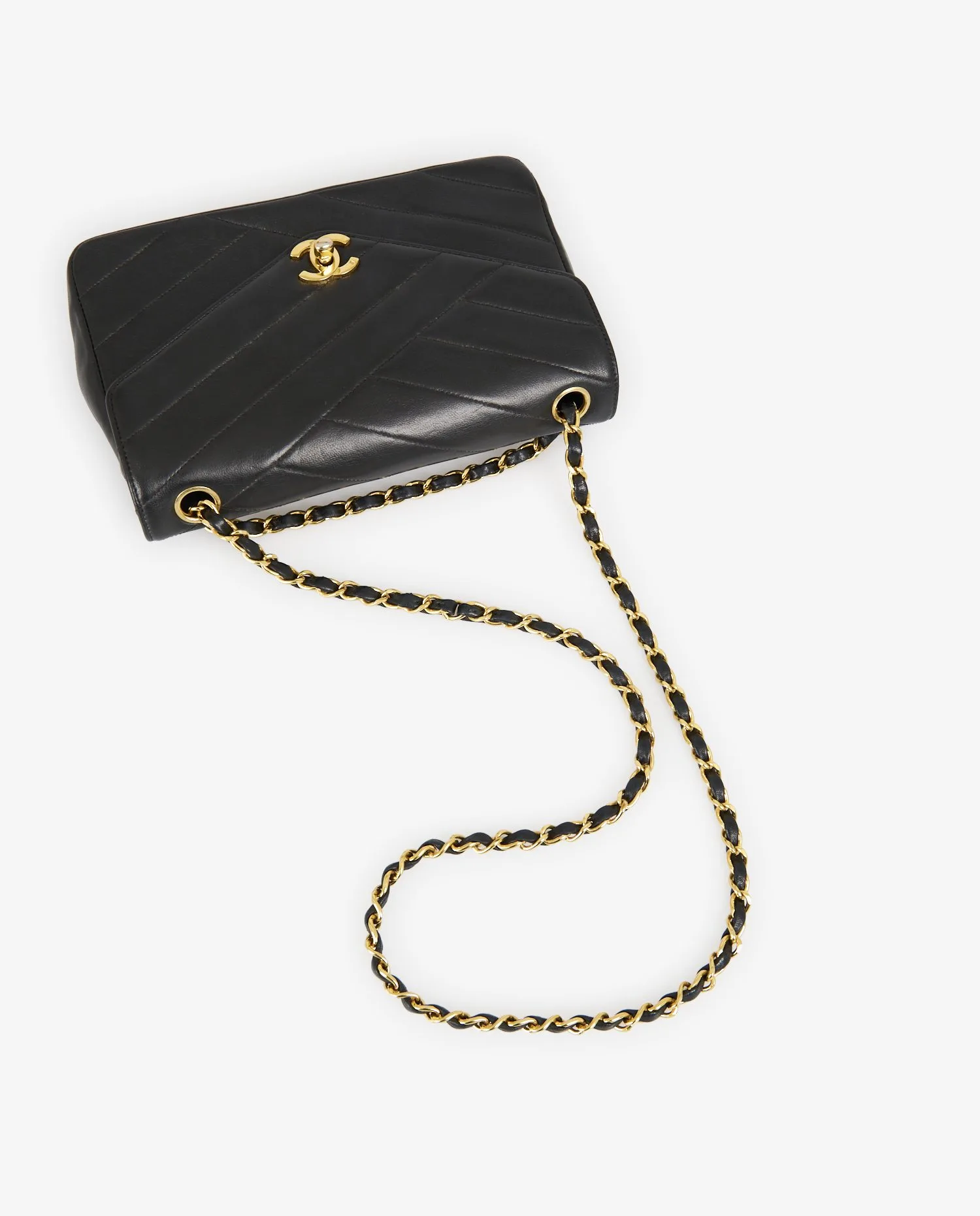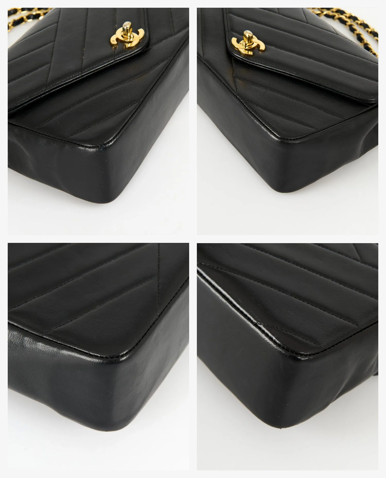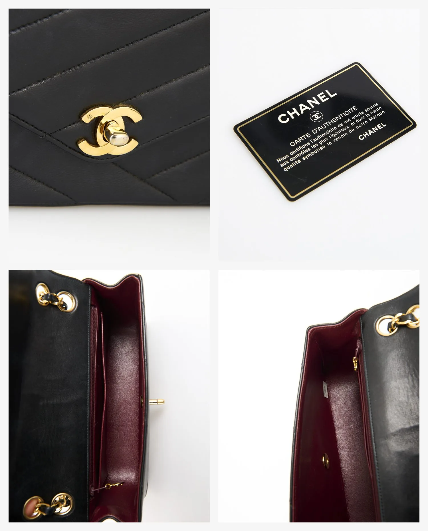 This vintage Chanel bag from 1994-1996 is a rare collector’s item, combining discretion with a strong visual identity thanks to its chevron motif. The combination of lambskin leather, interlaced chain and CC clasp embodies the DNA of the house in its purest version. Its complete provenance with card, dustbag and box reinforces its appeal to luxury vintage enthusiasts in search of a model that is at once elegant, functional and emblematic of a pivotal Chanel era.
