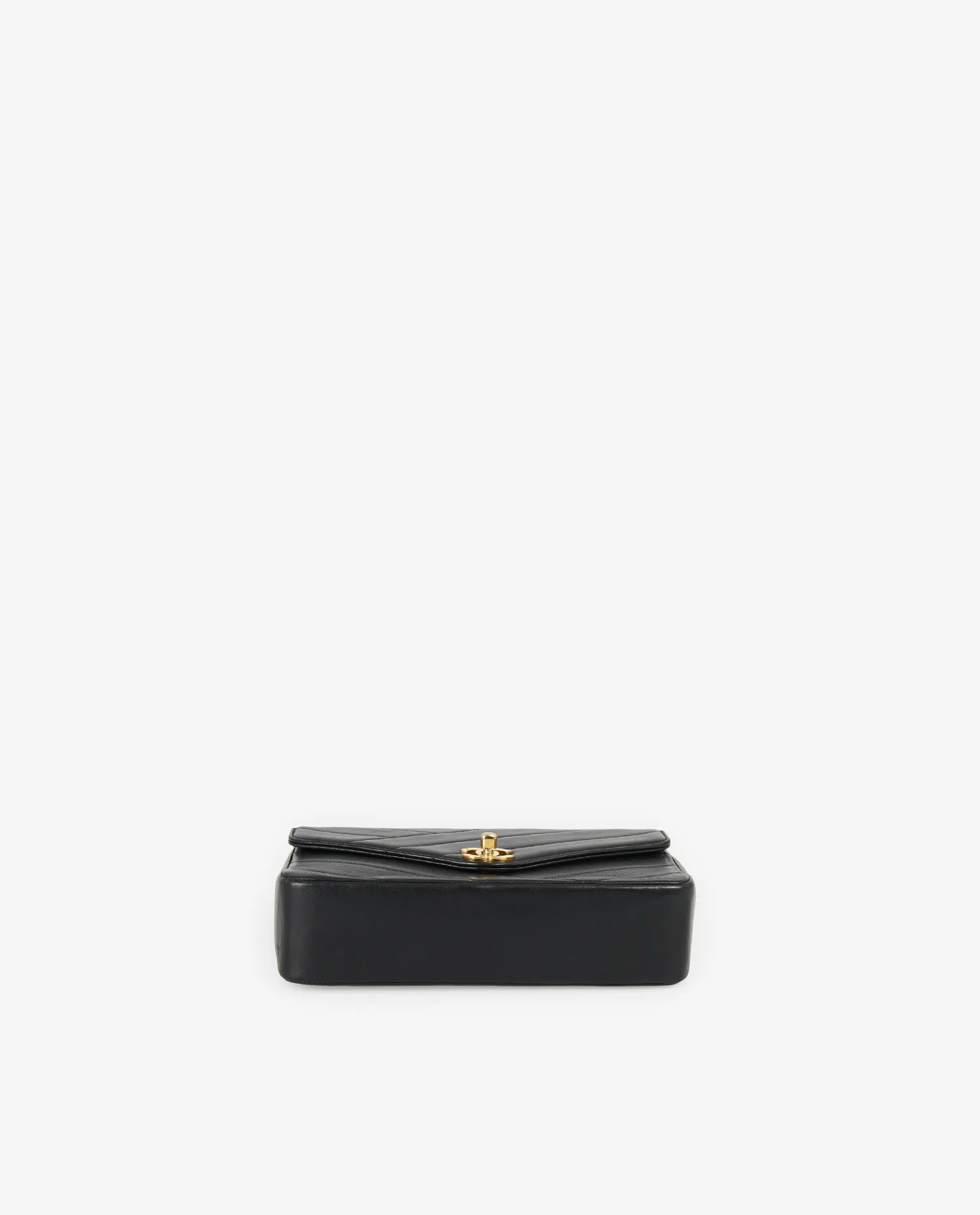 This bag is in very good condition for a piece from the 90s. The leather retains its suppleness and shine. The metal parts are shiny, with no major oxidation. The overall structure is well preserved, the chain and stitching are solid, and the clasp works smoothly.
