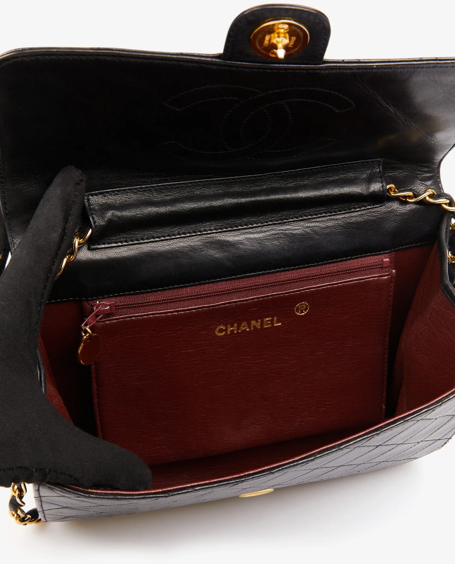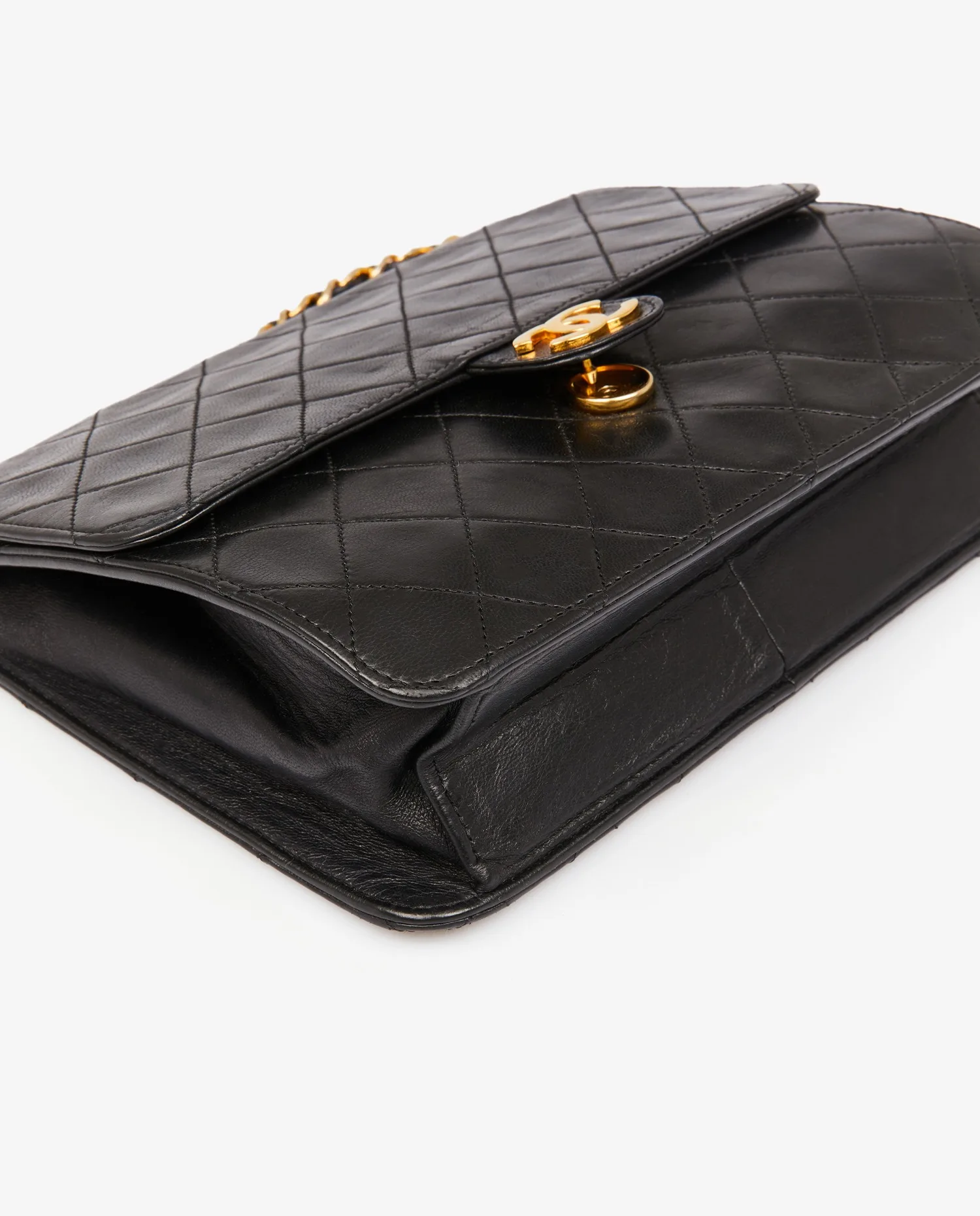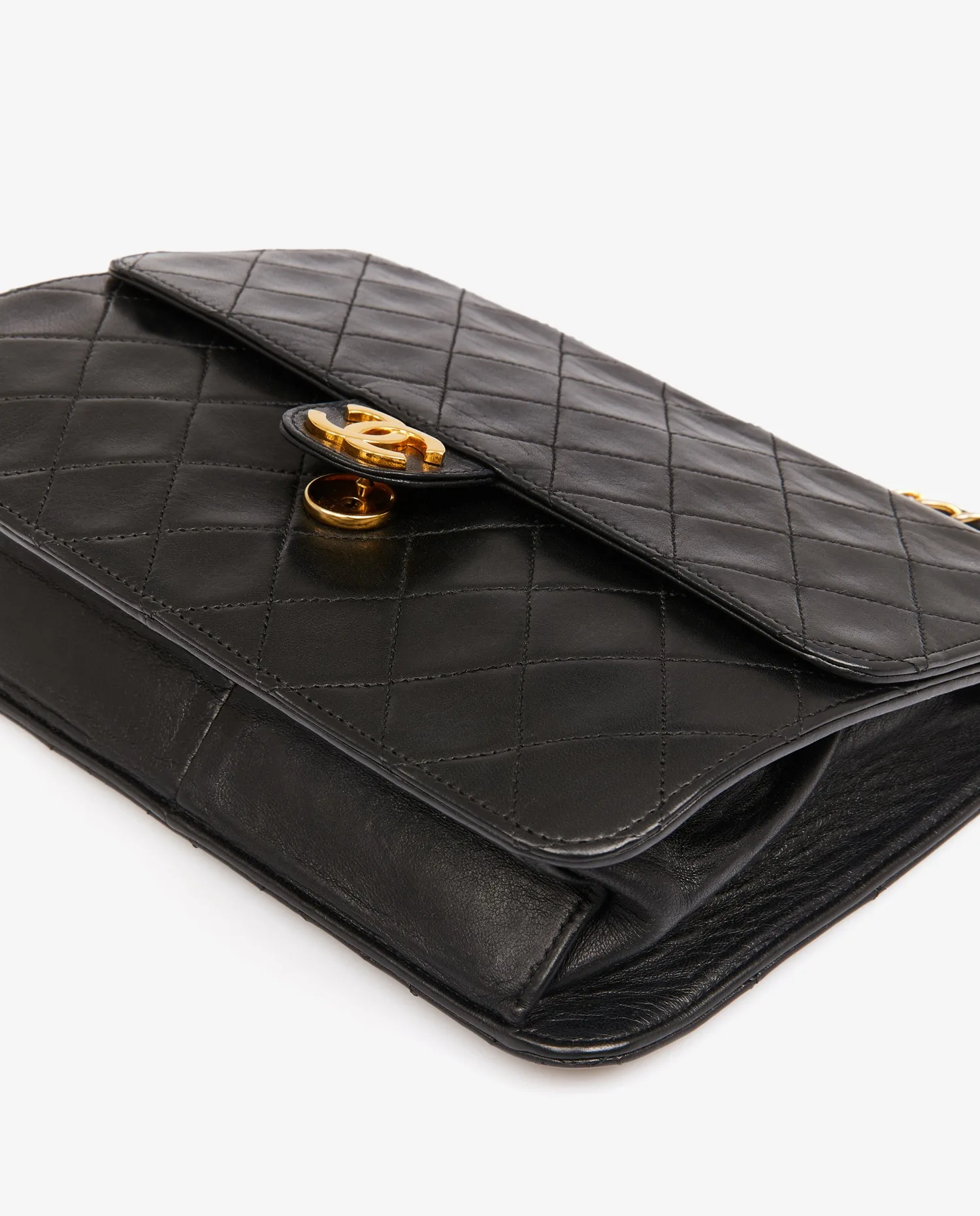 Chanel flap bag in black quilted lambskin. CC clasp. Carried on the shoulder (79min). In very good condition. Delivered in its original dustbag.