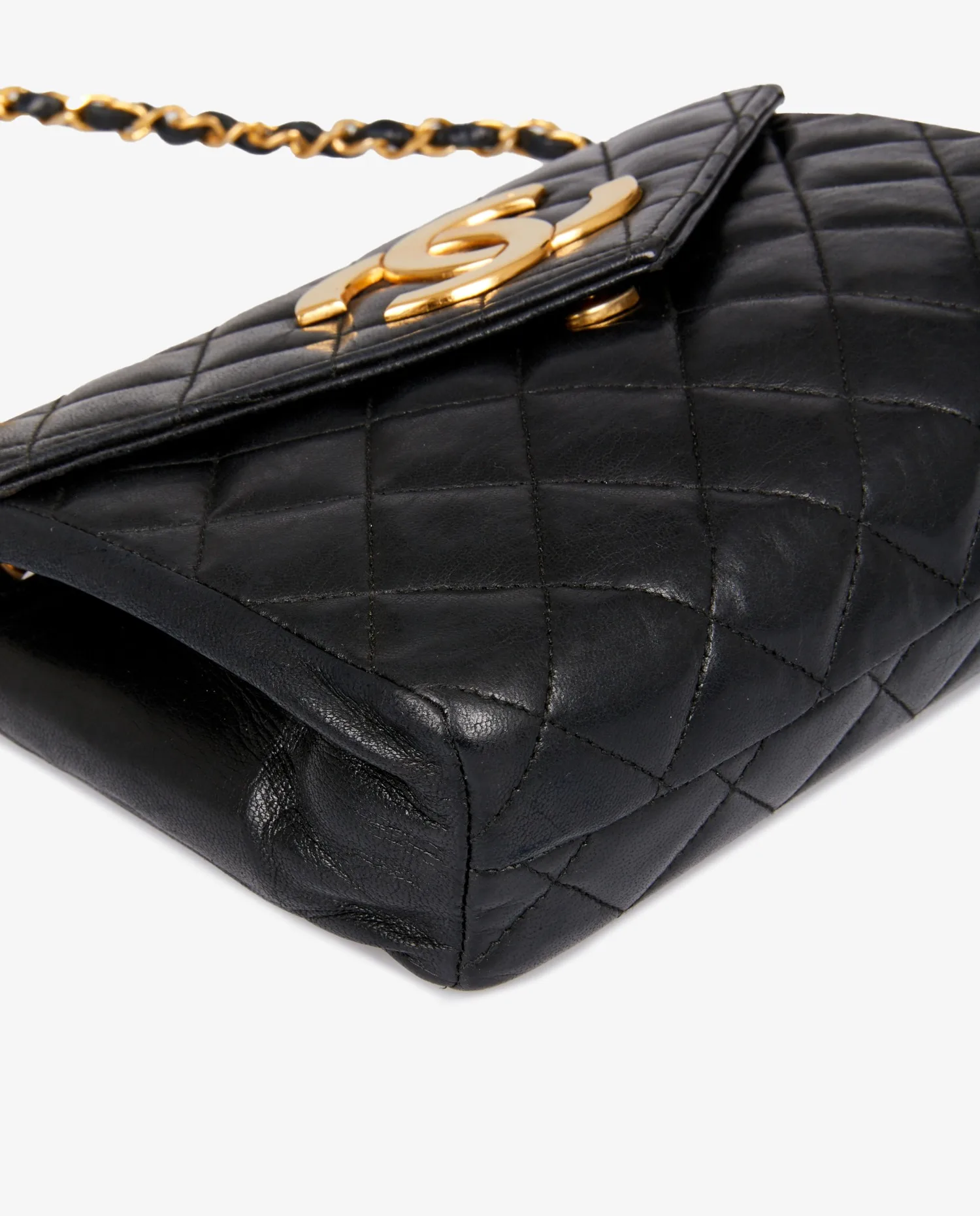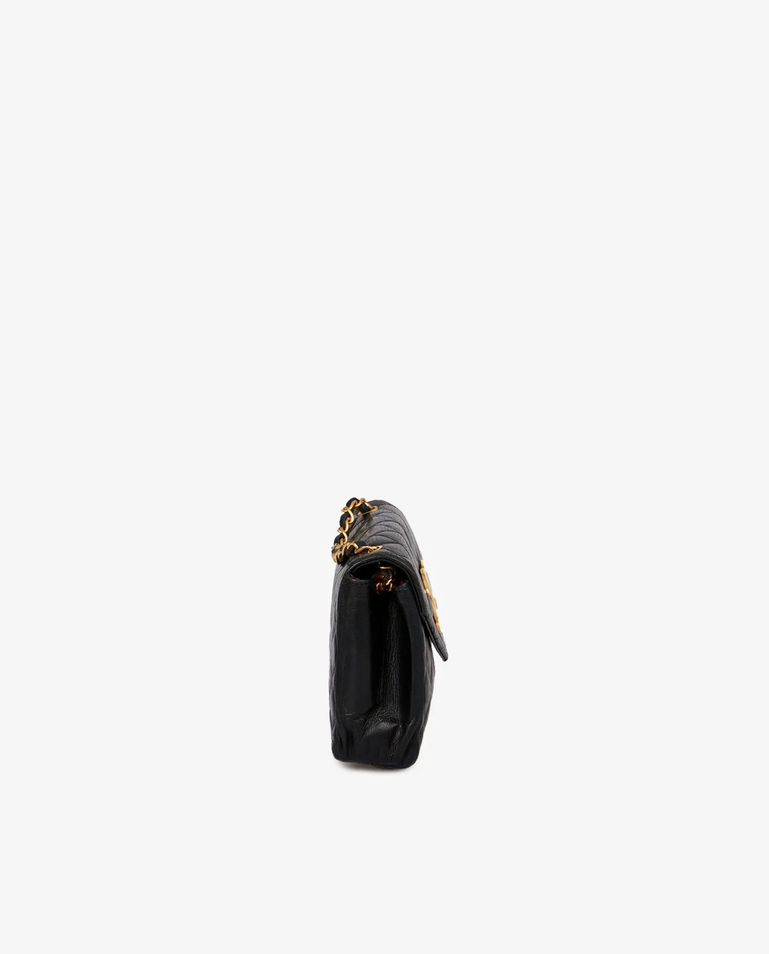 Vintage Chanel black quilted leather bag. Carried over the shoulder or across the body (114cm). The interior is in burgundy leather. In very good condition.
