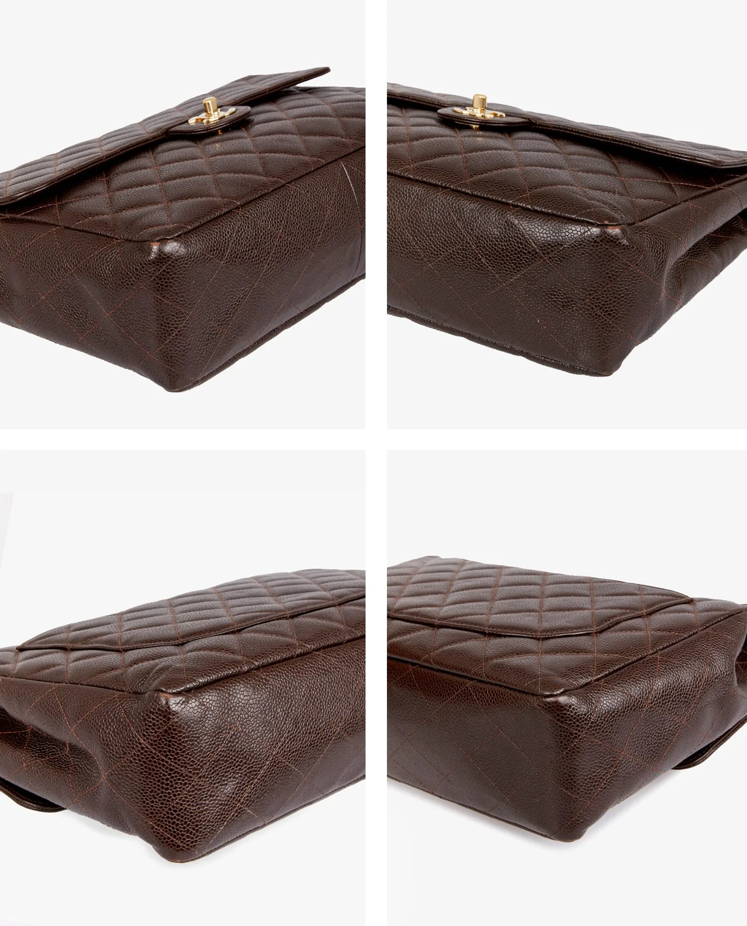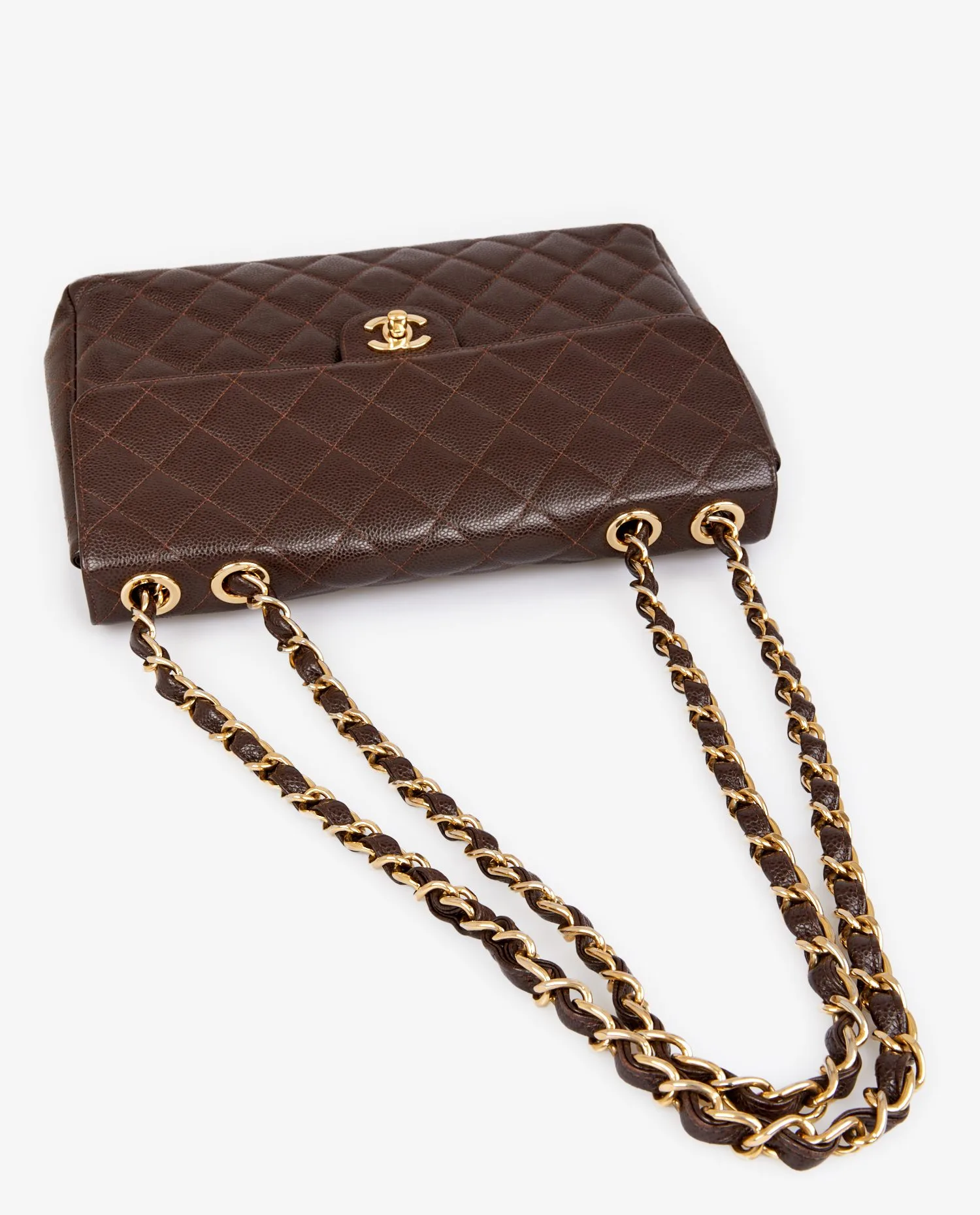 Vintage Chanel bag in brown grained leather. Carried on the shoulder or across the body (132cm). In very good condition.