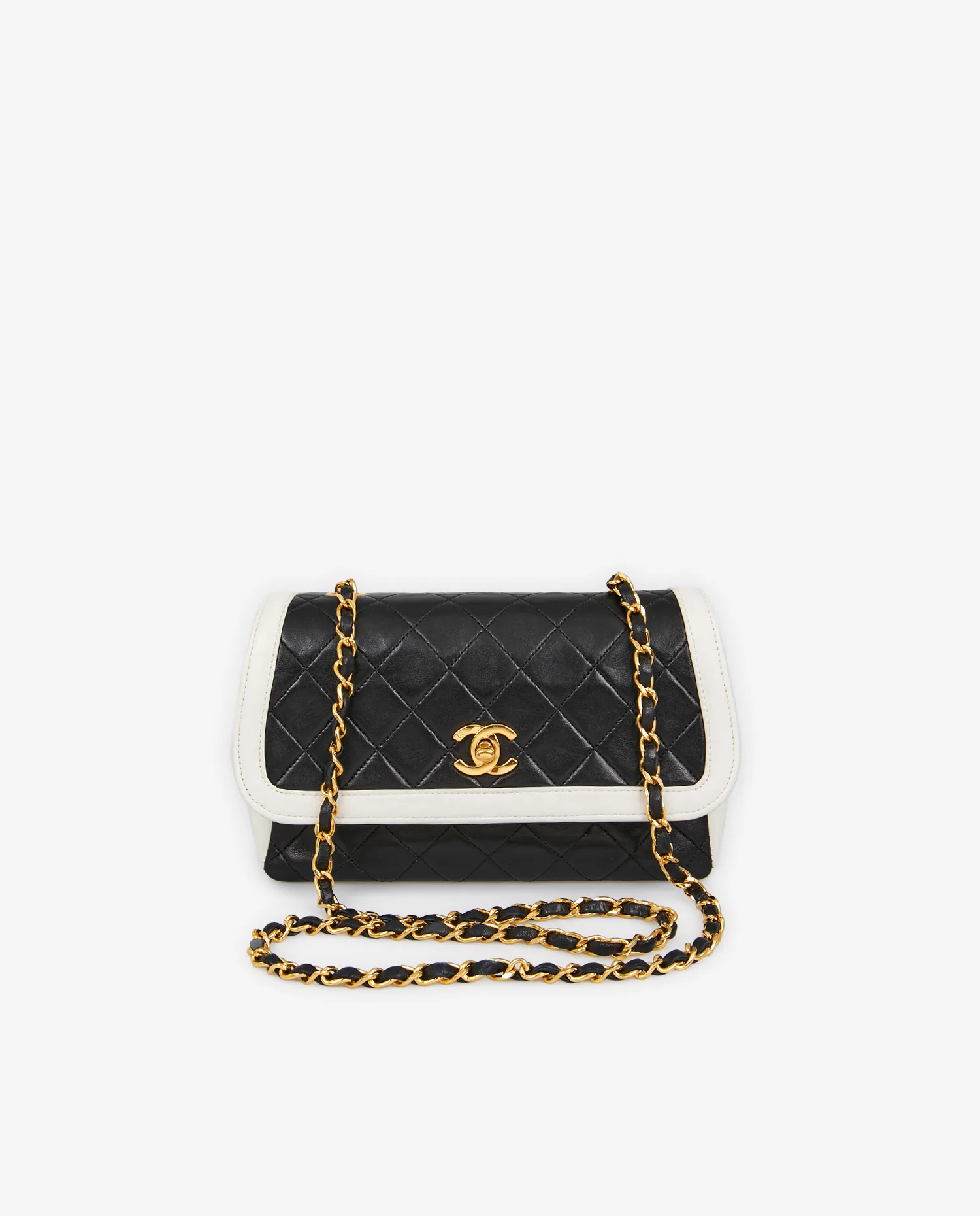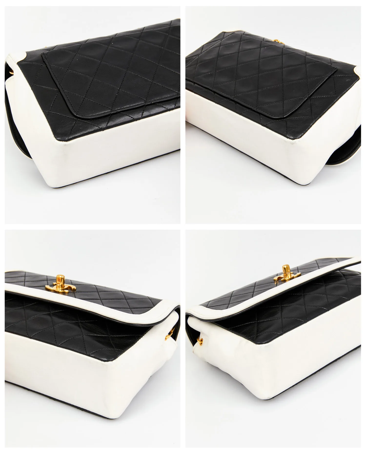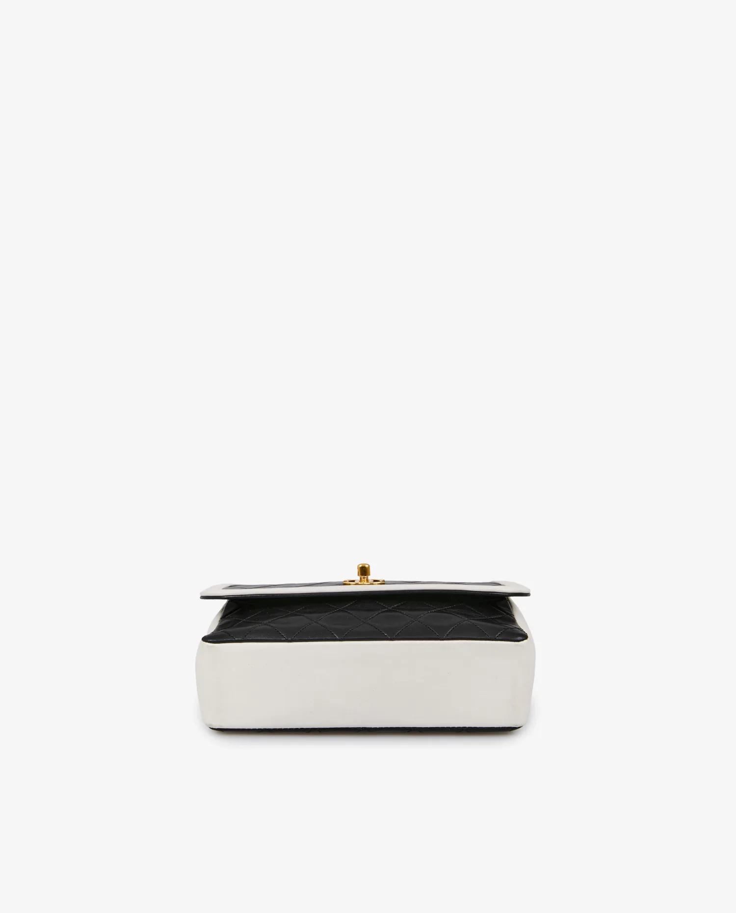 Chanel’s quilted bags, introduced as early as 1955 with the famous 2.55 designed by Gabrielle Chanel, have become one of the house’s most powerful codes. This model, dating from the late ’80s to early ’90s, follows in this prestigious lineage. At the time, Karl Lagerfeld was Chanel’s artistic director and reintroduced the double C clasp – here plated with 24-carat gold – while experimenting with bold chromatic associations. The black and white contrast, deeply linked to the house’s DNA, evokes the sobriety of Coco Chanel’s outfits and the graphic purity of her creations. This two-tone version combines classicism and singularity in a subtle balance.