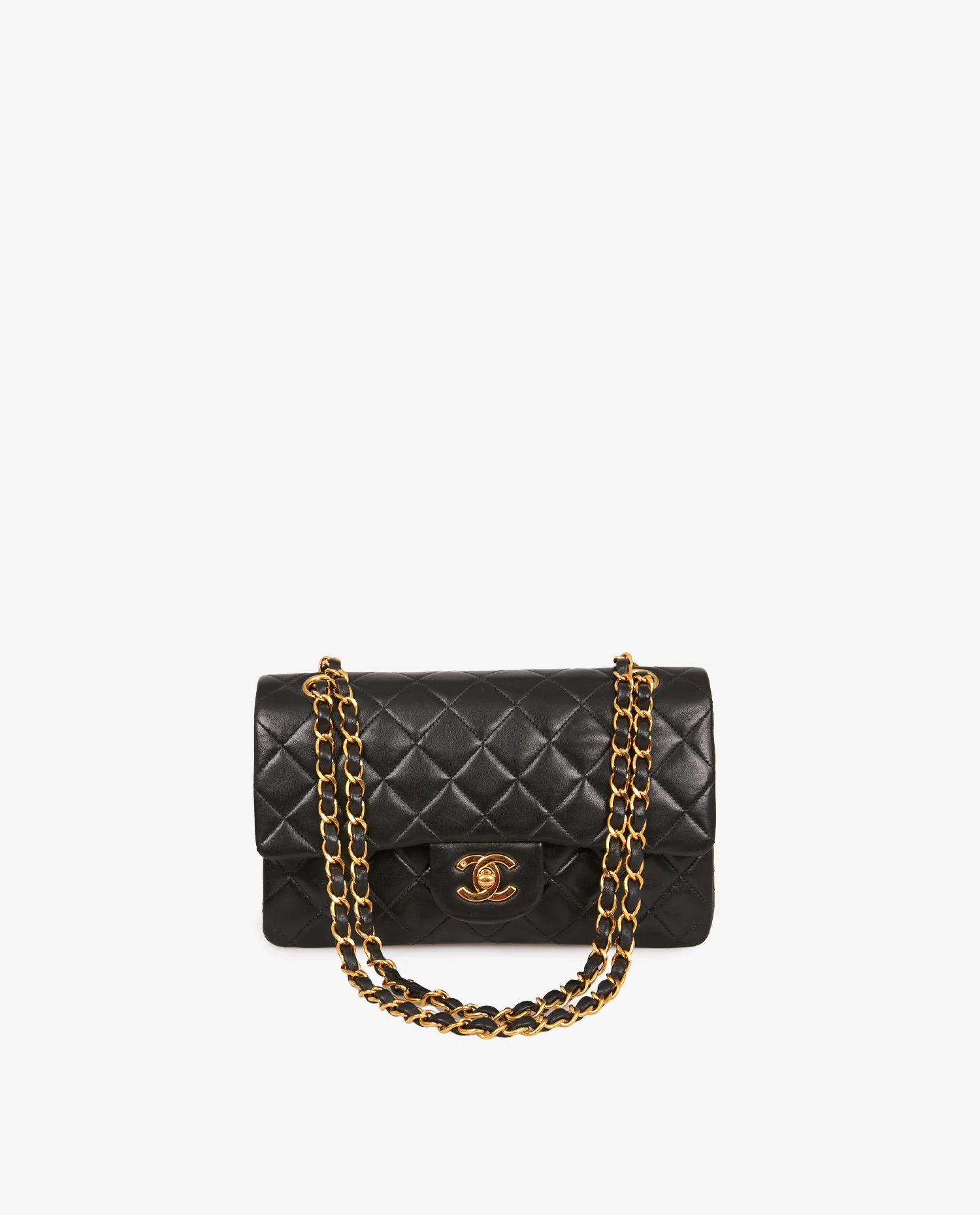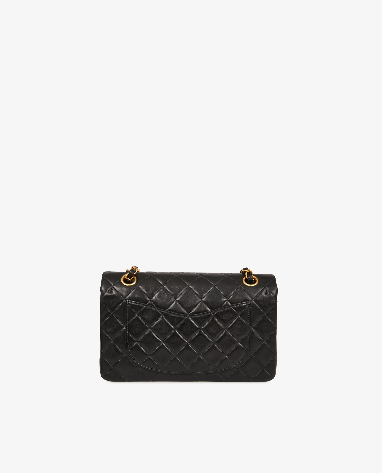 Superb 23cm vintage Chanel Classic bag in black lambskin. Carried on the shoulder. In very good condition.