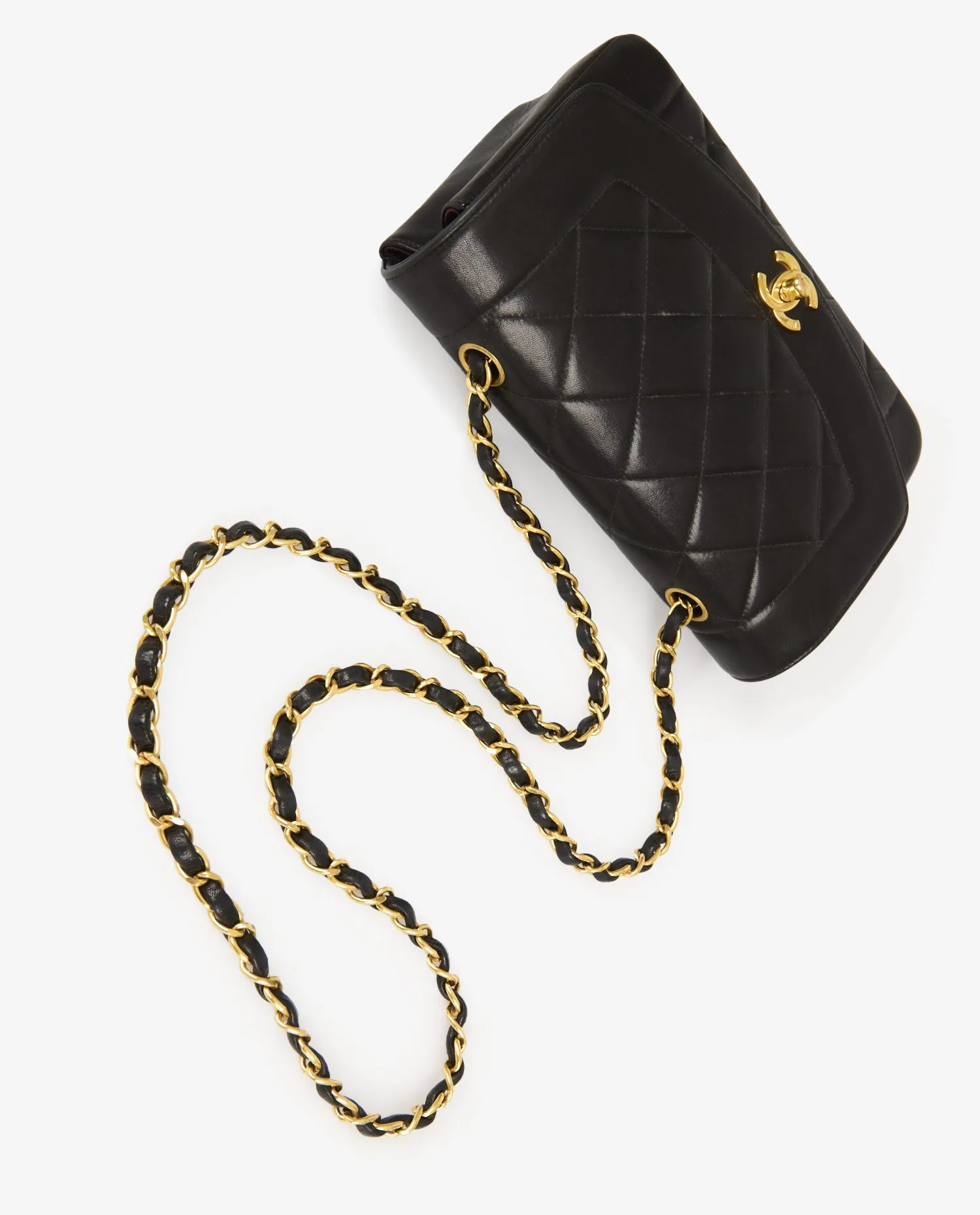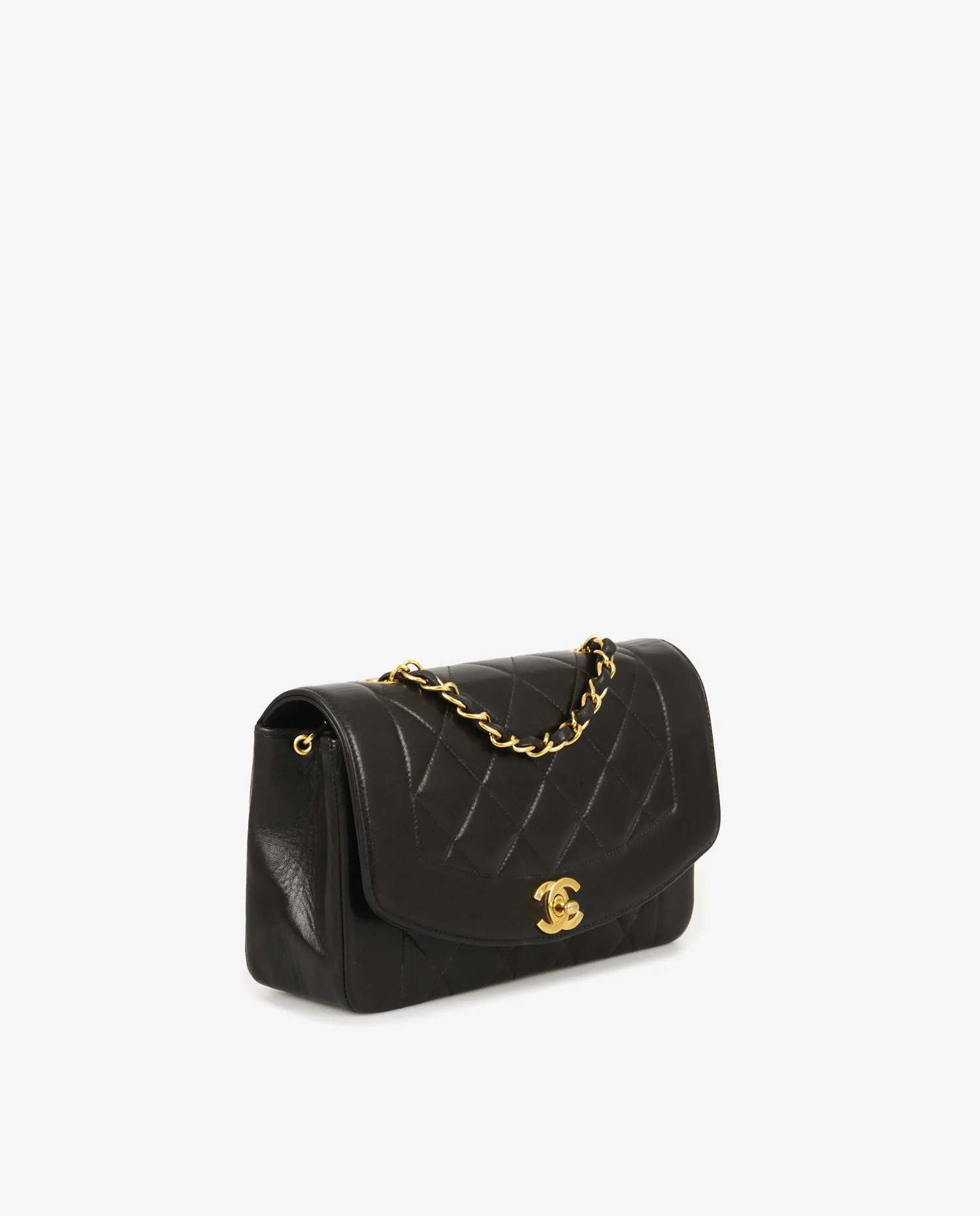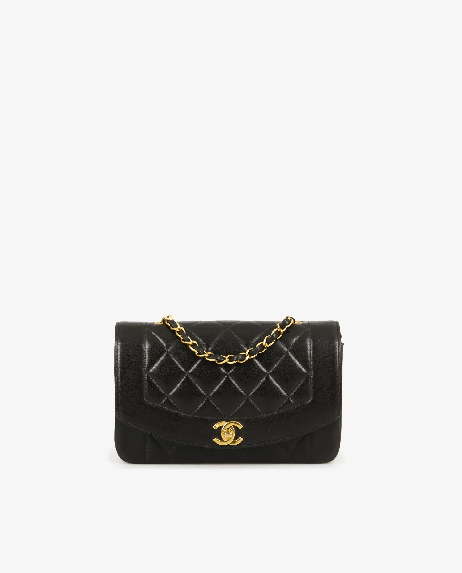 The Diana bag was launched by Chanel in the 1989s, and takes its name from Princess Diana, who was a loyal fan. This model was in continuous production until the mid-1990s, before being reissued briefly in 2015. It is distinguished from other Chanel bags by its thick flap with rounded edge and its style that is both classic and slightly retro. Today, the original models are highly sought-after for their rarity and iconic design, emblematic of the Chanel aesthetic under the direction of Karl Lagerfeld.