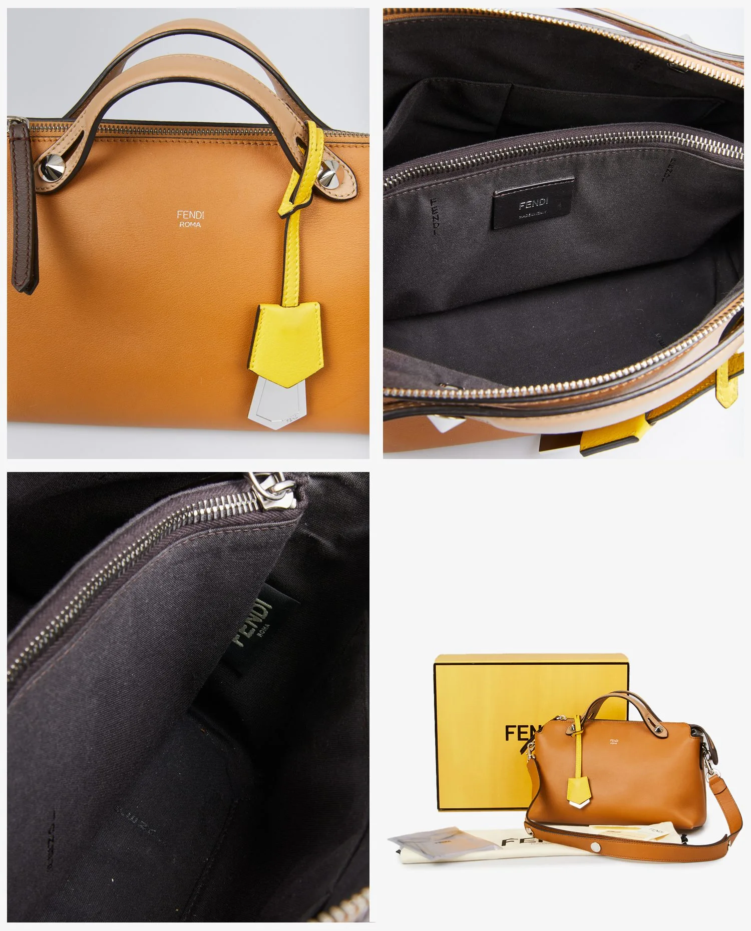 Fendi By the way bag in gold leather. Hand-carried as a clutch or crossbody with removable shoulder strap (shortest 80cm, longest 114cm). The interior is in brown fabric. In very good condition.