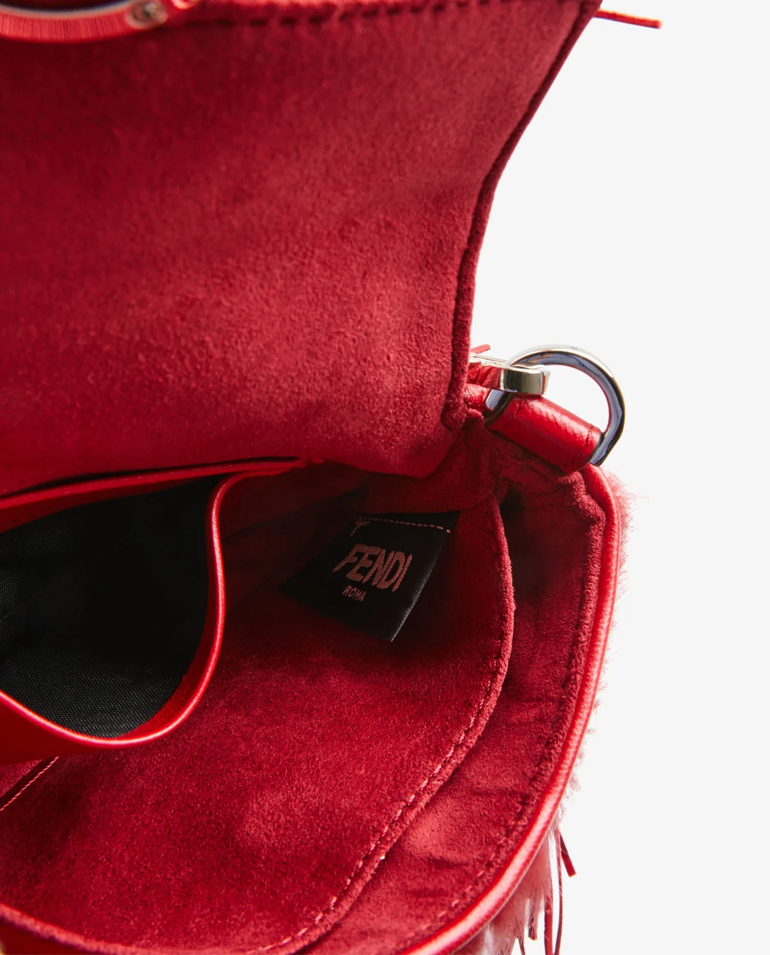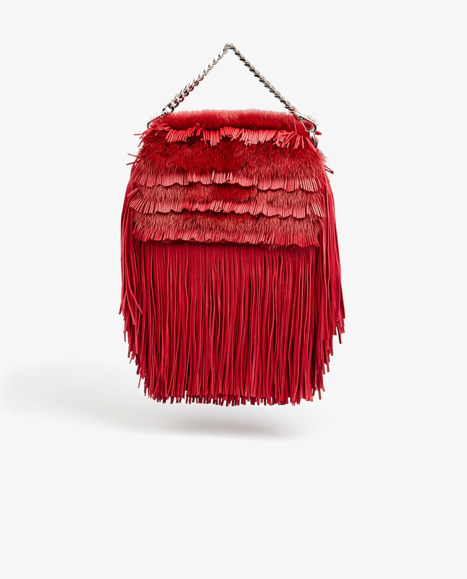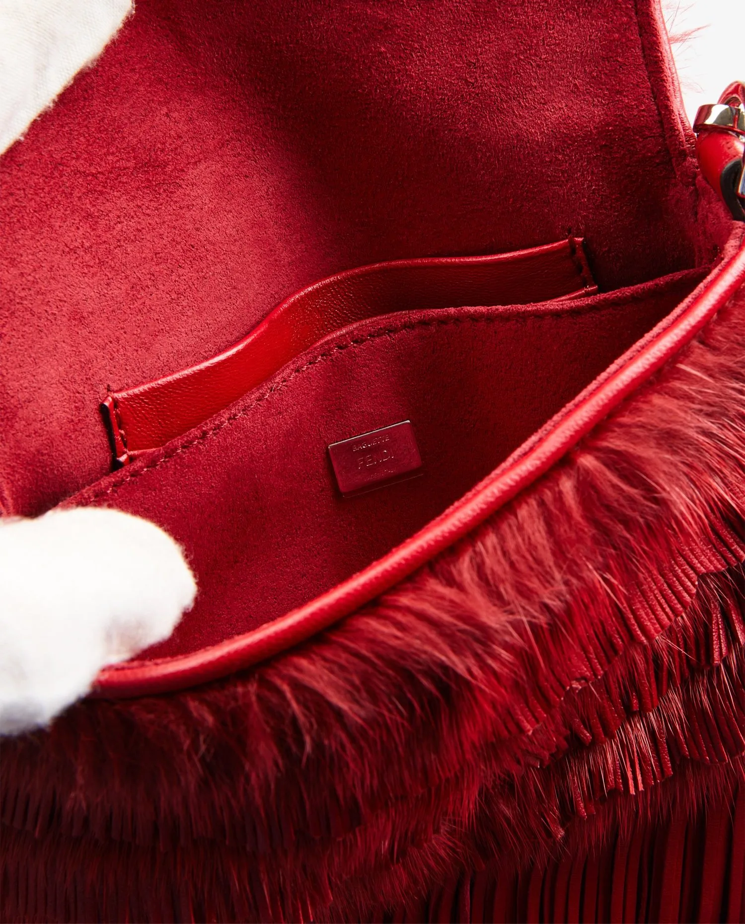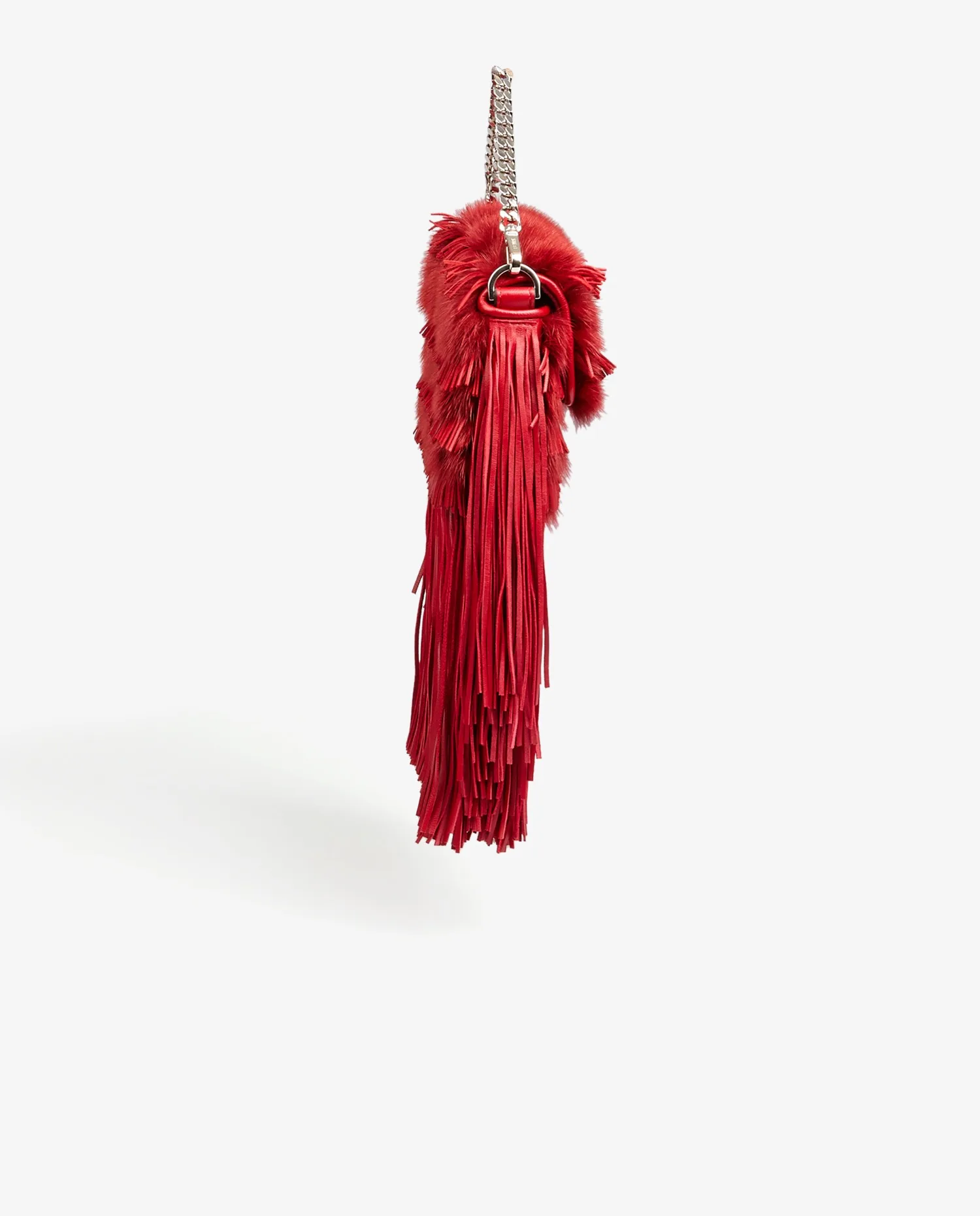 Fendi fringed handbag in fur and red leather. Snap closure. Hand-carried. In very good condition.