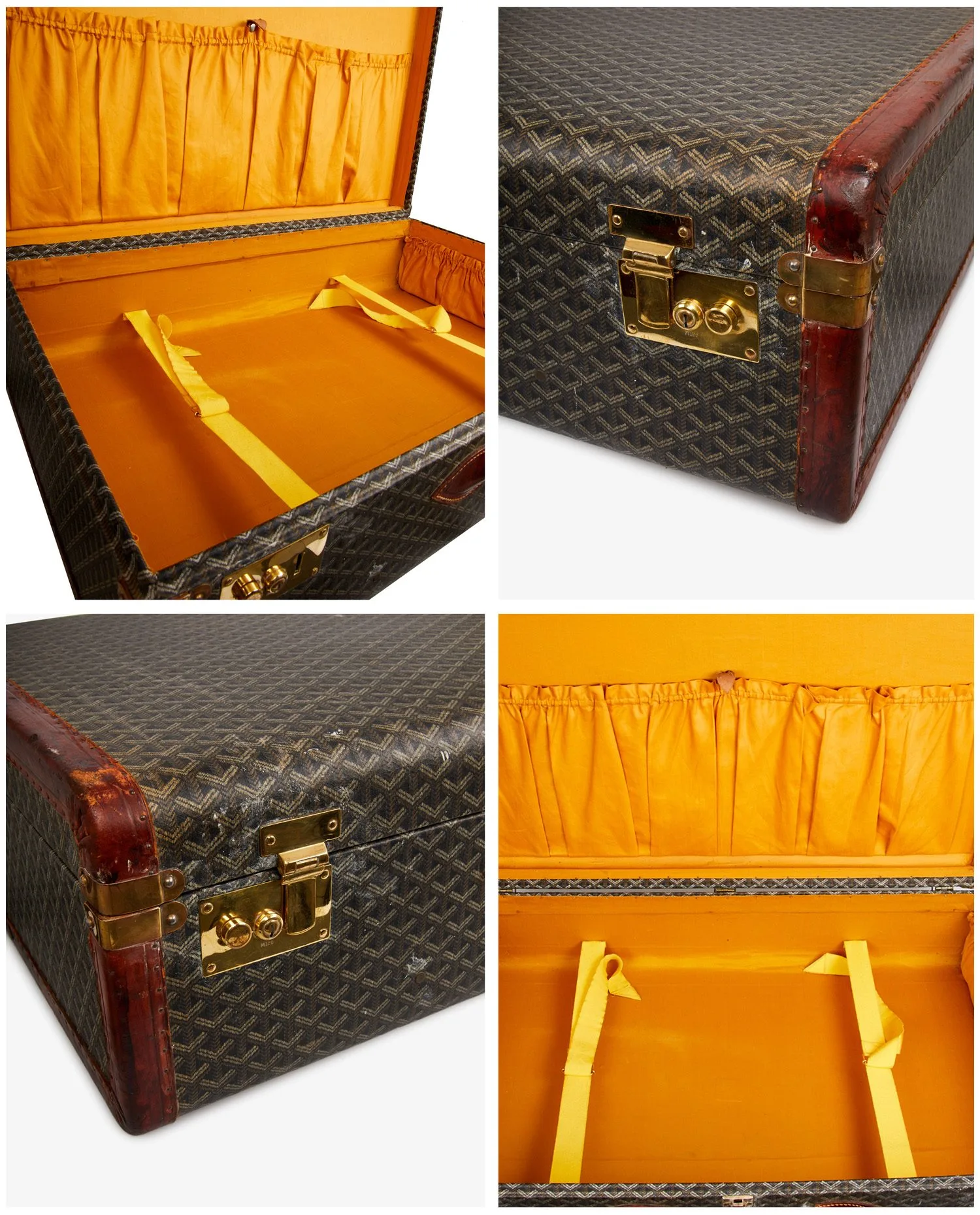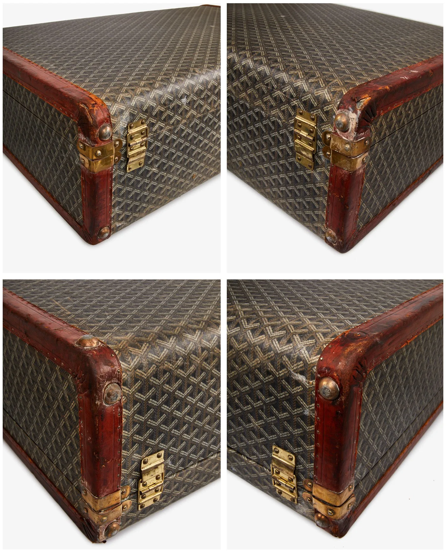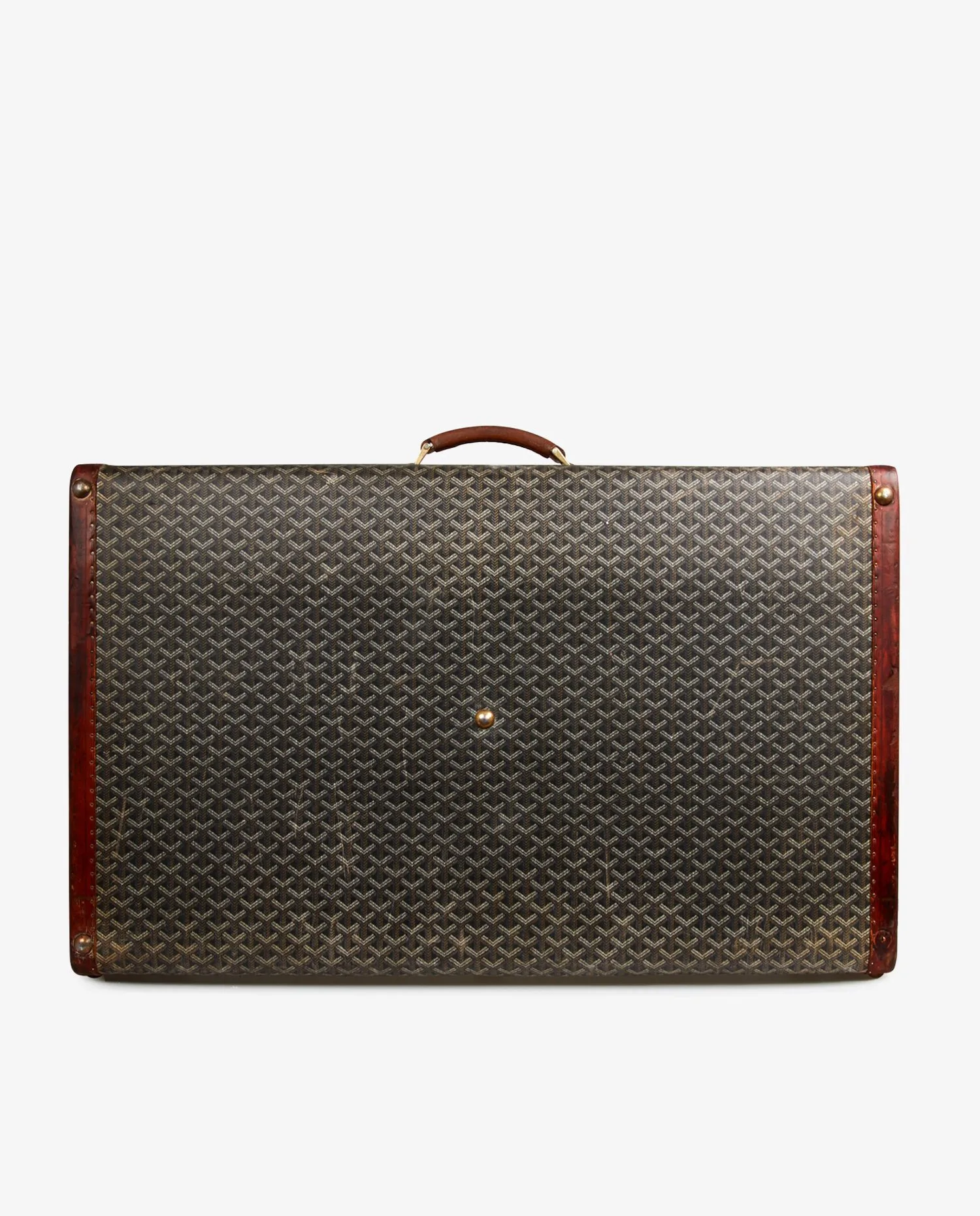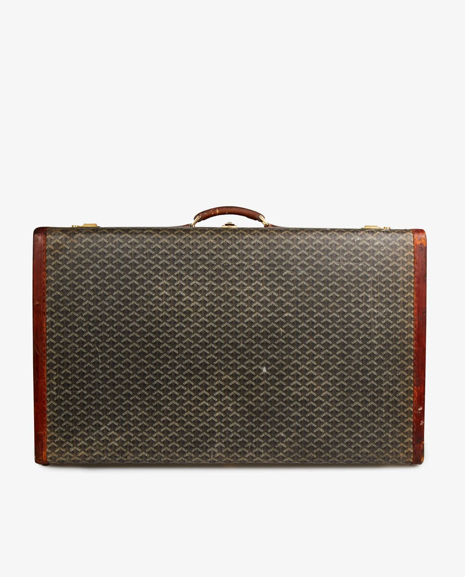 Goyard Grand Hotel suitcase in soft woven canvas. Brass fittings. Size 85, which today only exists in size 80, making it a very rare piece. Initials CMF. This model was created circa 1965. In very good used condition due to its great age. The leather finishes have a patina. See photos.