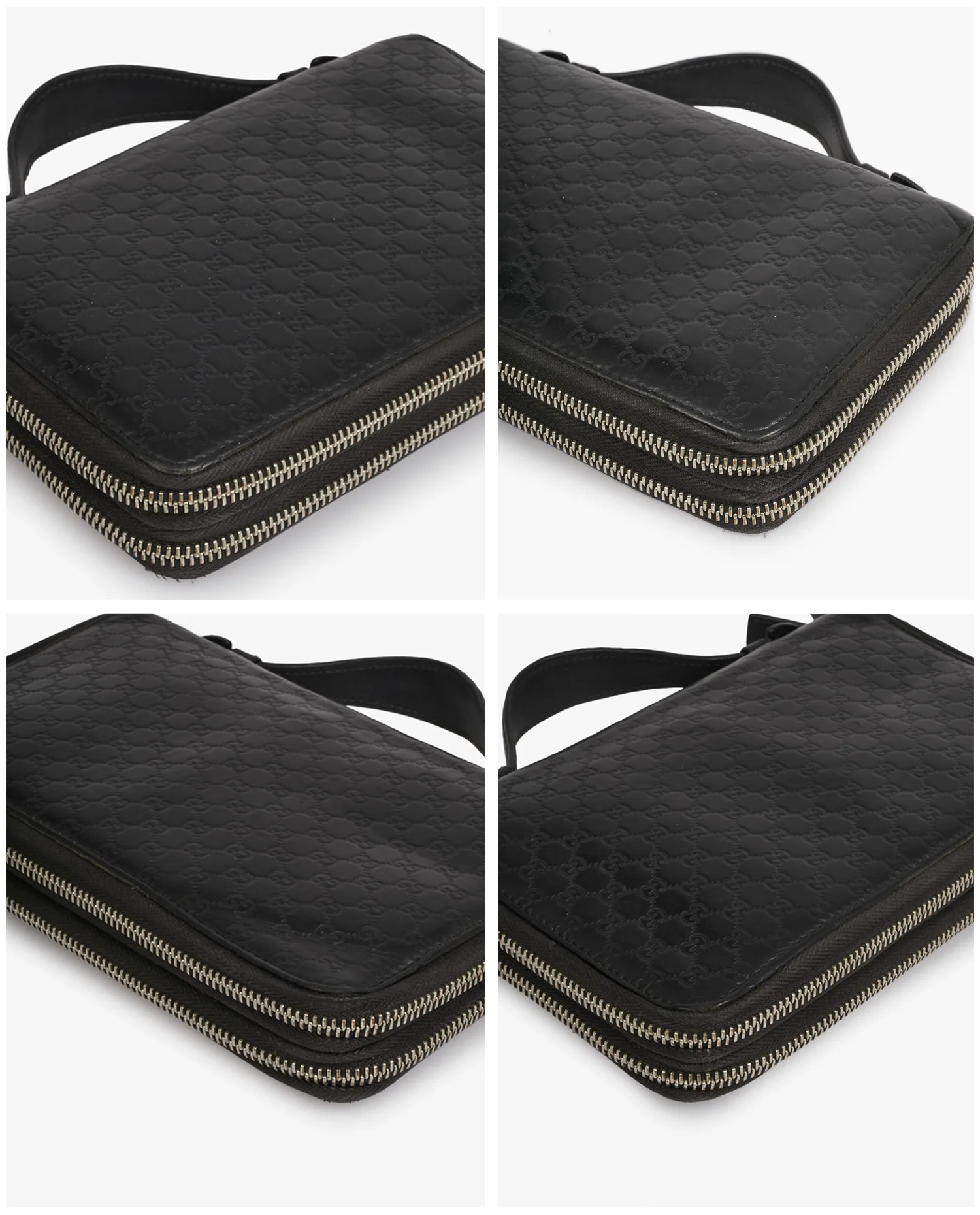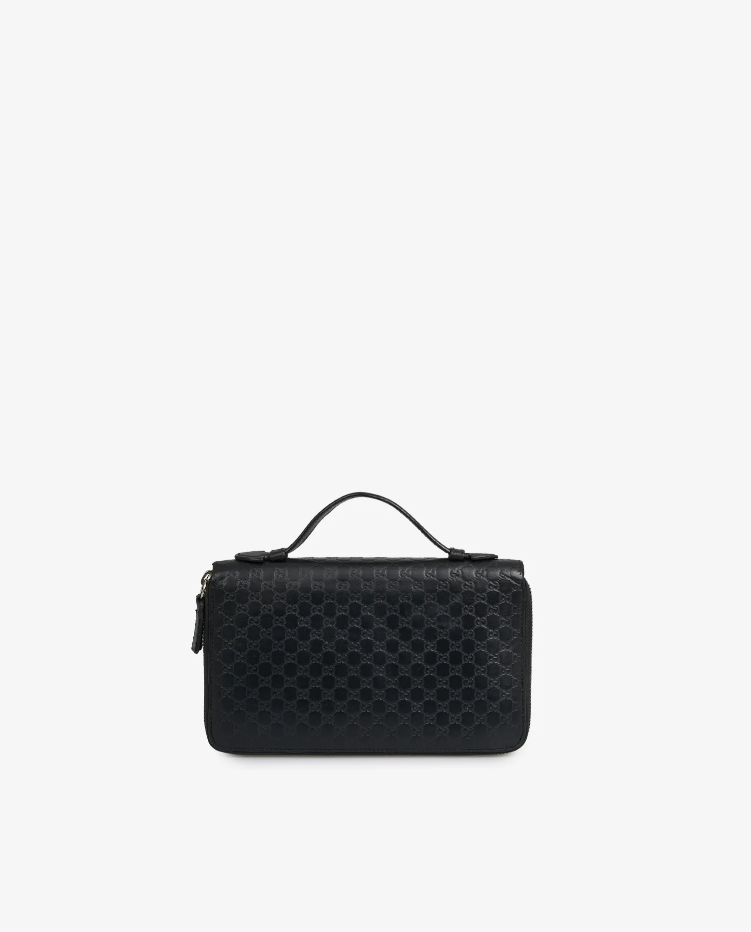 Gucci clutch bag in black “GG” embossed leather. Silver zipper closure. Hand-carried. In very good condition.