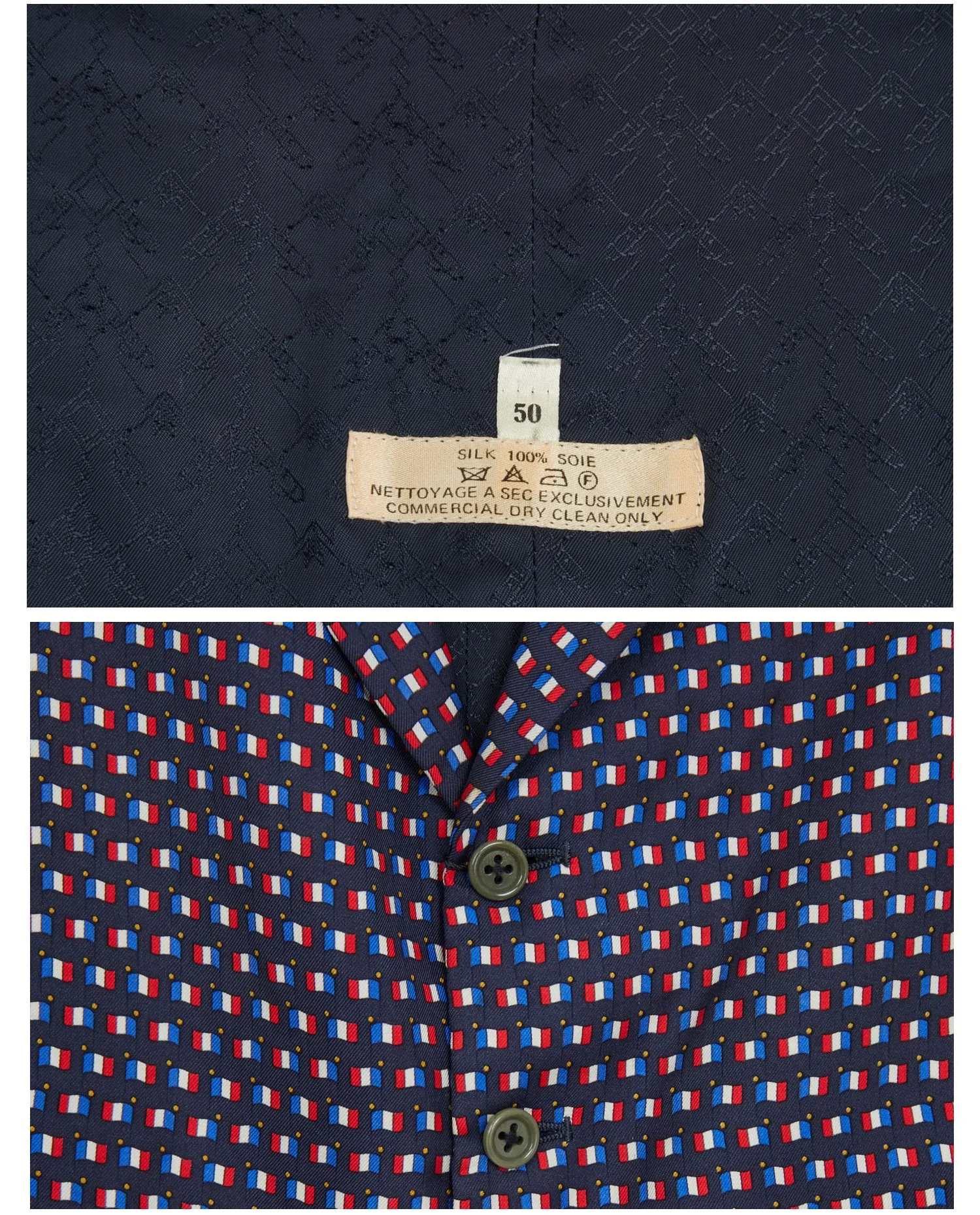 Hermès silk scarf-print vest with French flags. Size 50. In very good condition.