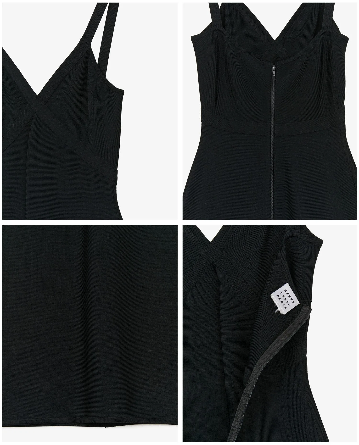 Vintage Hervé Léger “Bandage” midi-length dress in black rayon. V-neck gives a glimpse of cleavage for a very sexy look. Very close to the body. Size 36. Zipped back closure. It hugs the body to perfection. In very good condition.