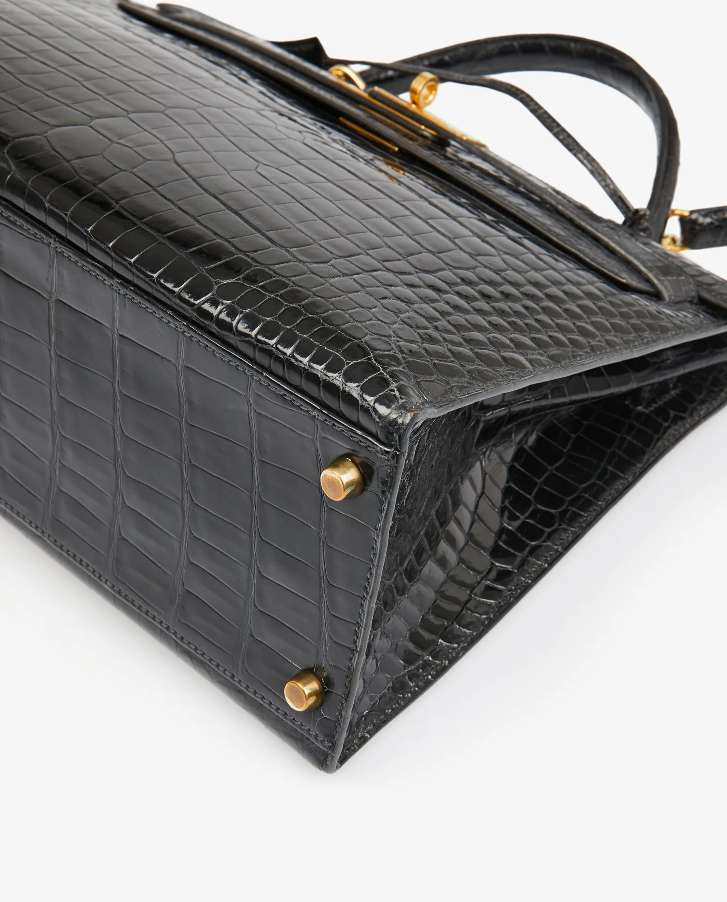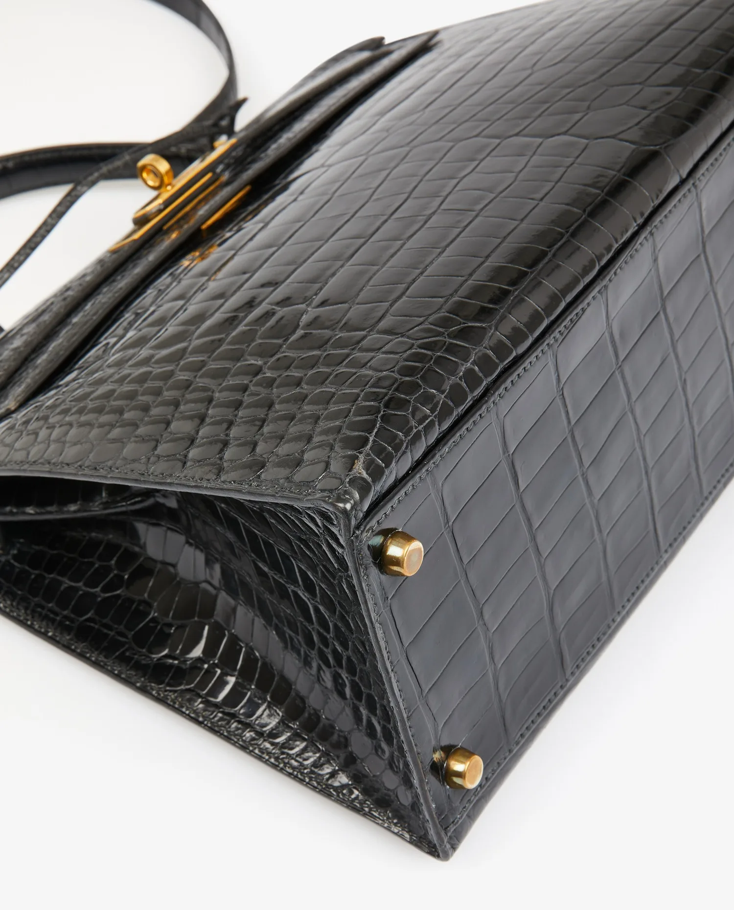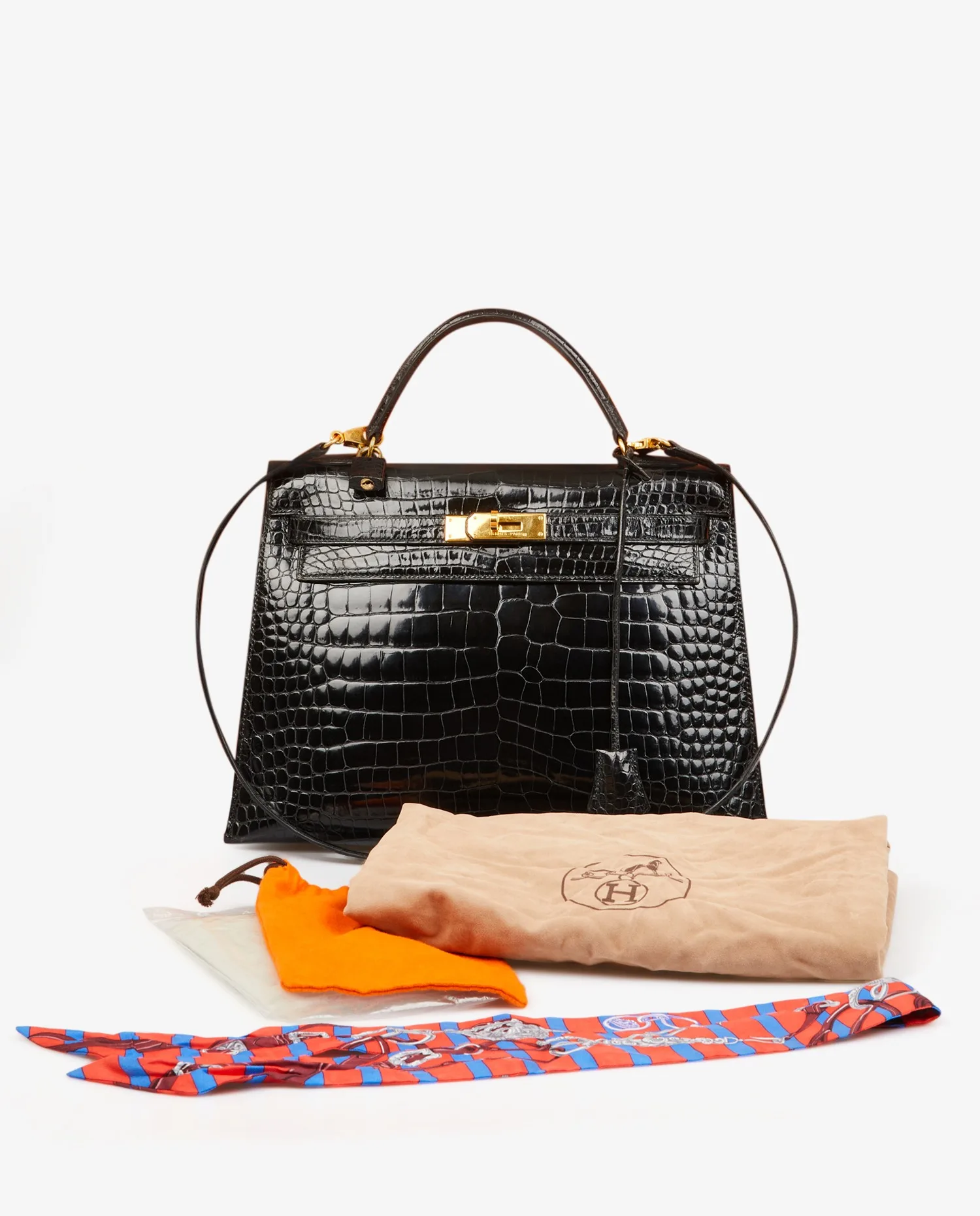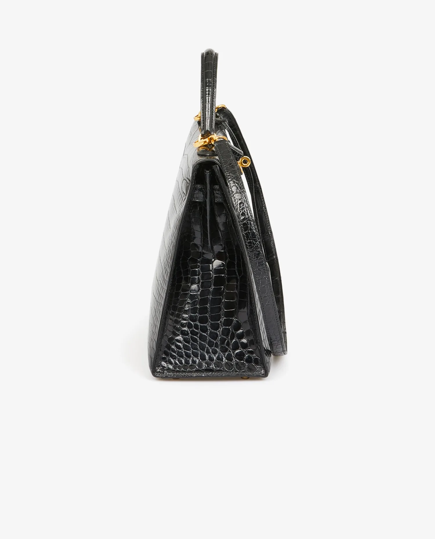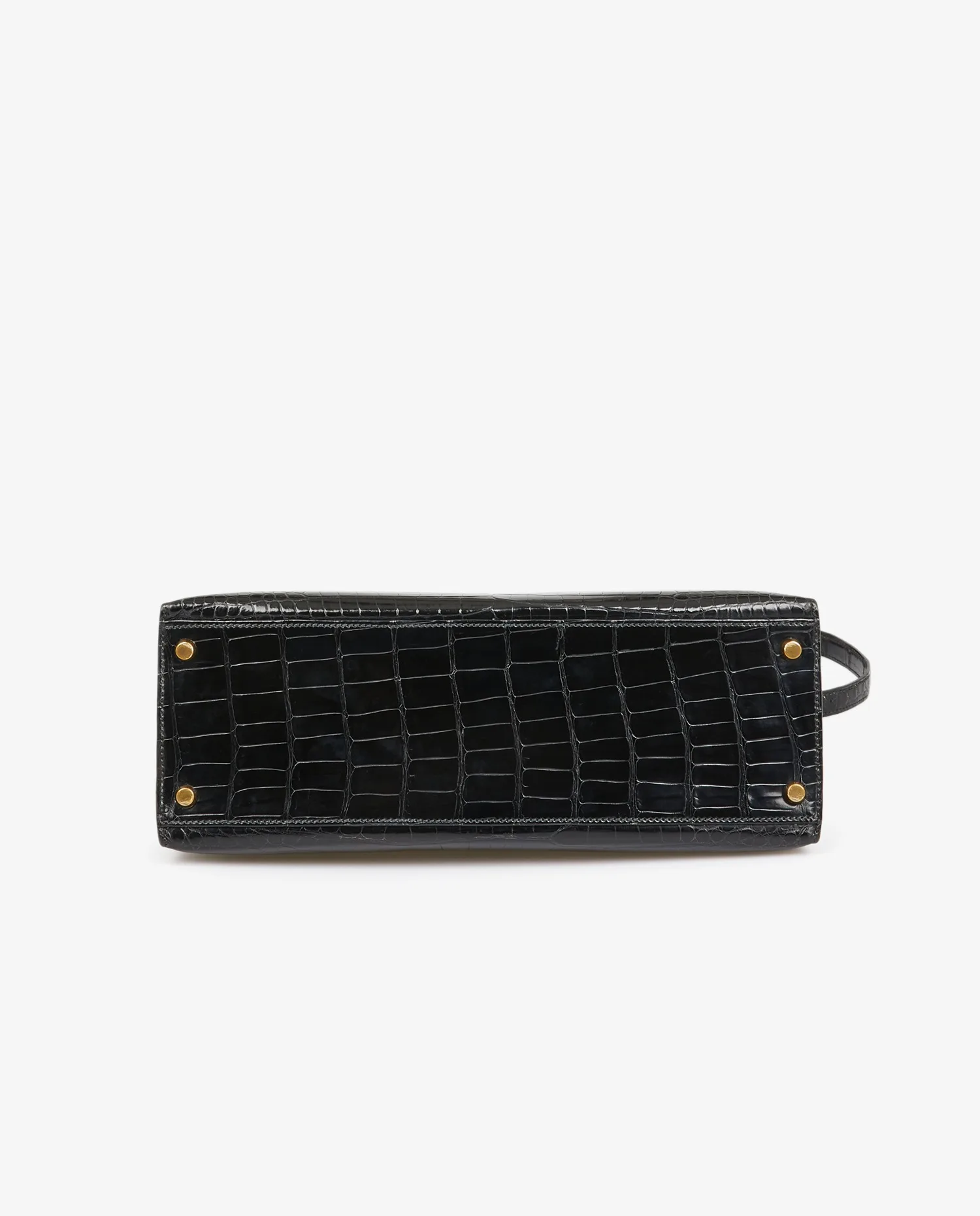 Kelly 32 Hermès bag in black porosus crocodile. Pull cord, bell and padlock. Carried by hand or on the shoulder with a detachable shoulder strap measuring 90cm. Stamp V in a circle, year 1992. In very good condition.