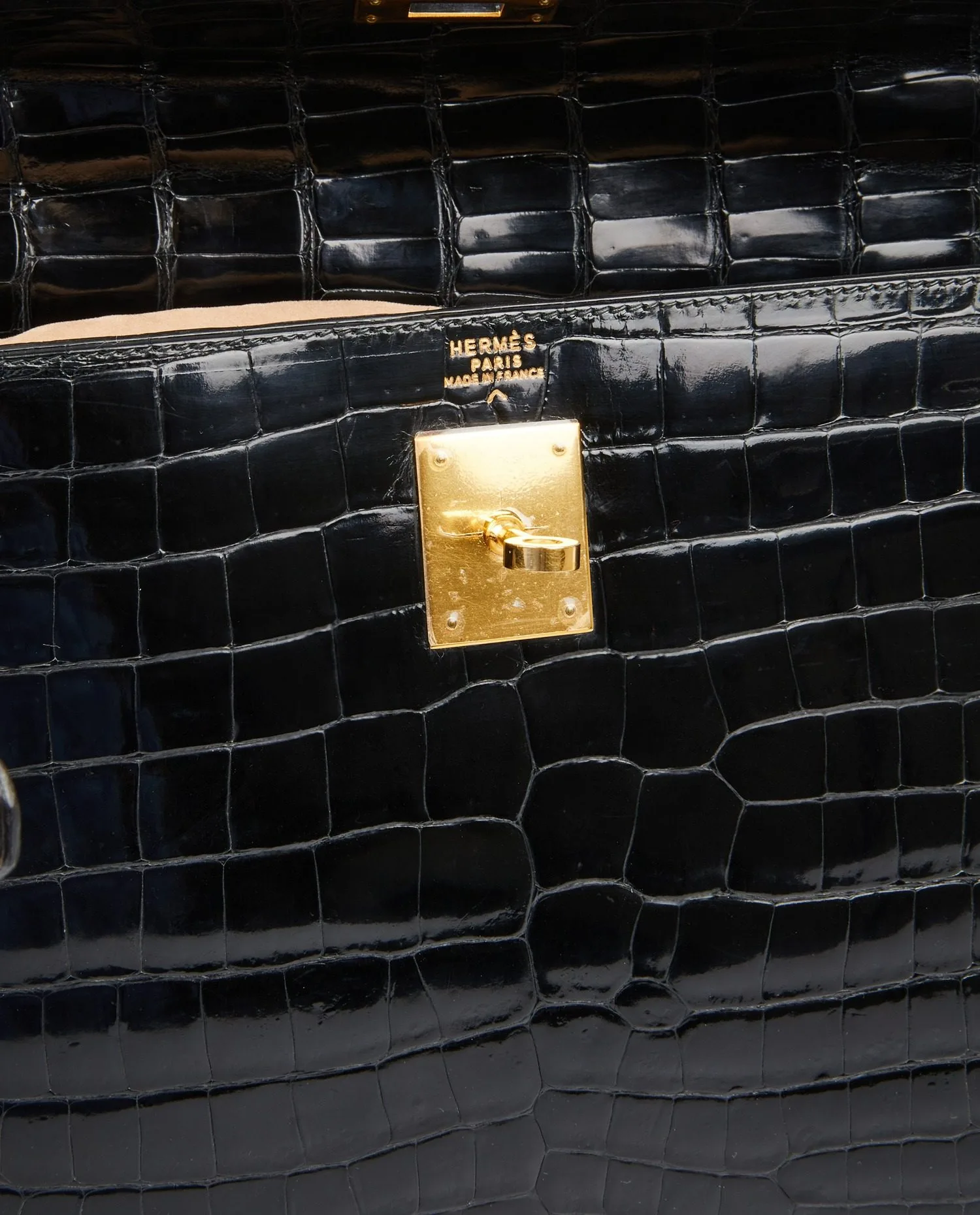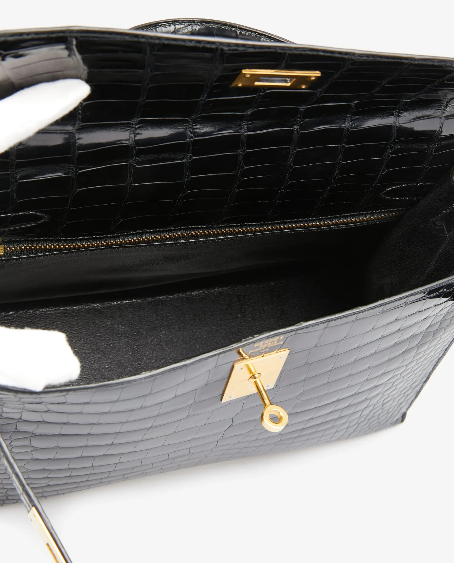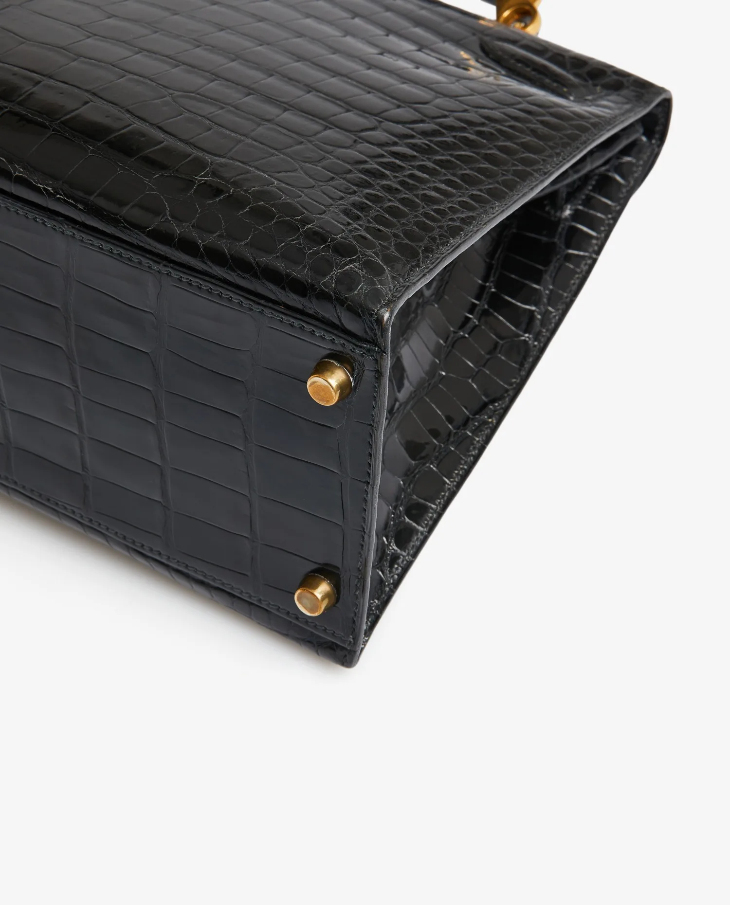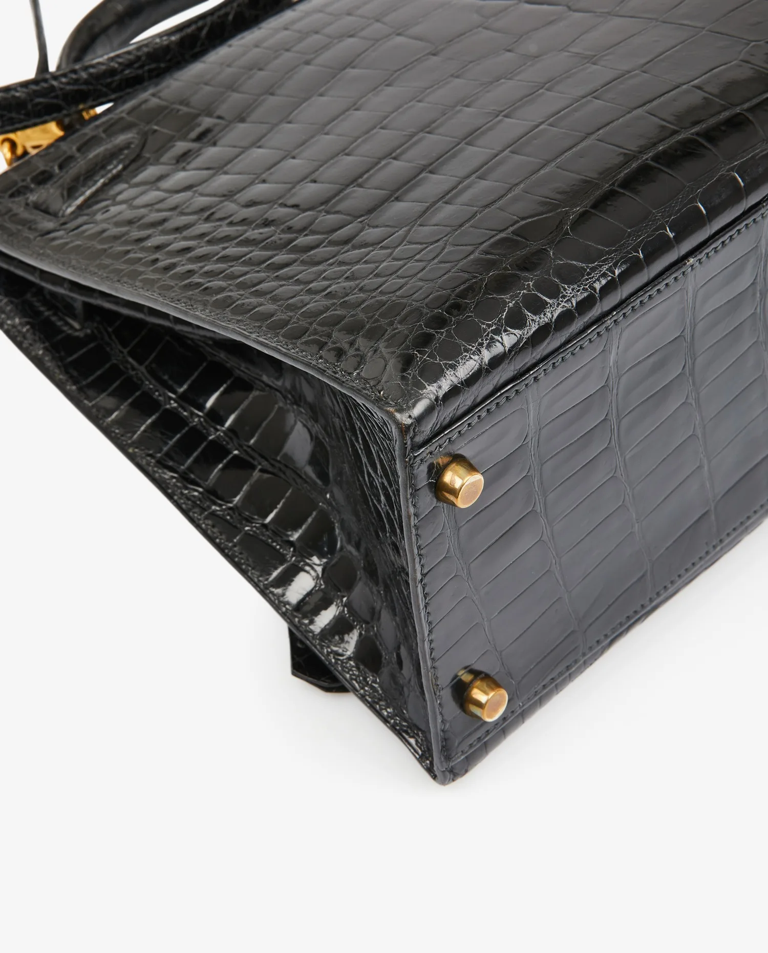 Kelly 32 Hermès bag in black porosus crocodile. Pull cord, bell and padlock. Carried by hand or on the shoulder with a detachable shoulder strap measuring 90cm. Stamp V in a circle, year 1992. In very good condition.