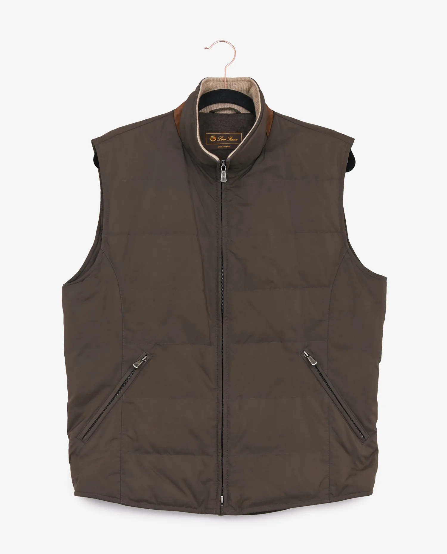 Since its origins, Loro Piana has developed garments combining luxury and functionality, often oriented towards elegant outdoor use. A specialist in top-of-the-range materials, the Italian house entered the technical clothing segment in the 1990s with its Storm System and Travel Line collections. This vest is part of this heritage, at the crossroads of country chic and urban elegance, in collaboration with Brussels-based Degand Sport, a benchmark in high-end men’s ready-to-wear.