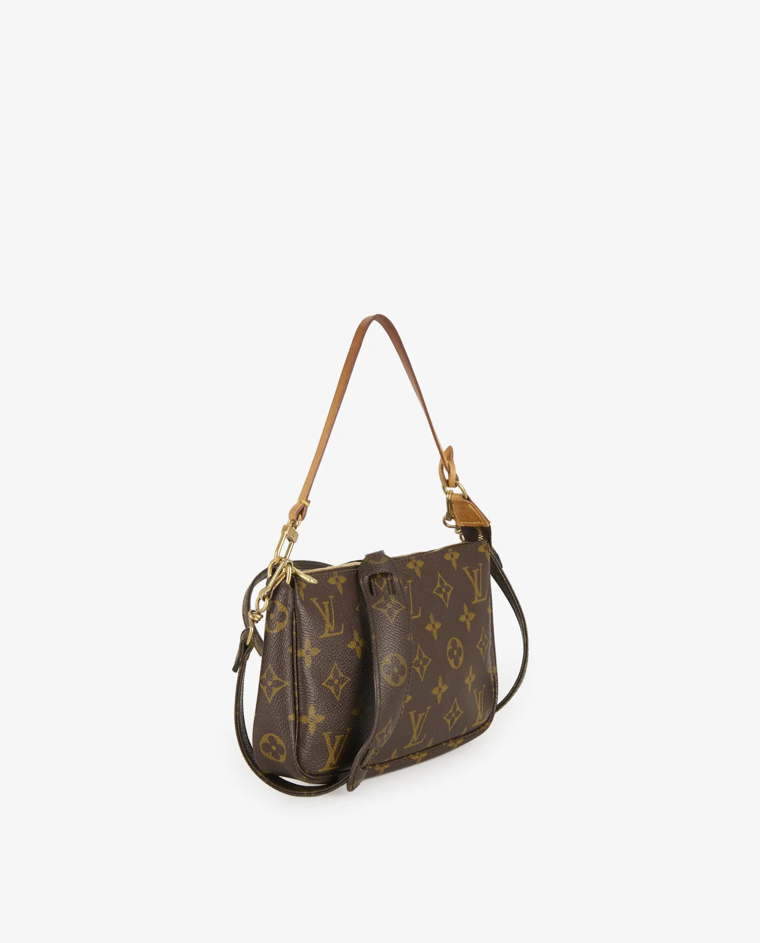 This pouch follows in the footsteps of the compact, versatile models developed by Louis Vuitton in the late 1990s and early 2000s. Initially designed to accompany travel bags, the Pochette Accessoires quickly gained popularity as a handbag in its own right. This revisited version, with double pocket and detachable shoulder straps, prefigures the aesthetic of the Multi Pochette Accessoires later launched by the house. Made in France, this 2001 model combines the robustness of Monogram canvas with the flexibility of contemporary uses.