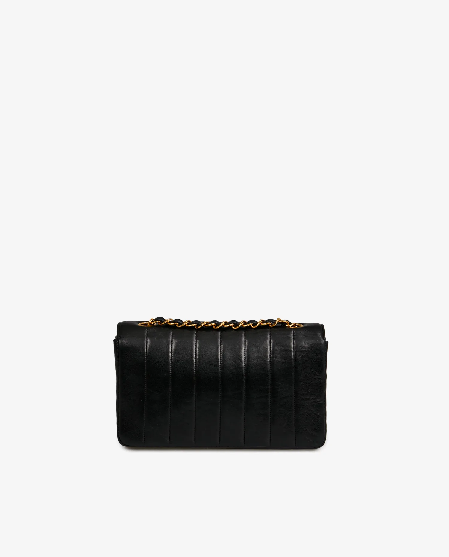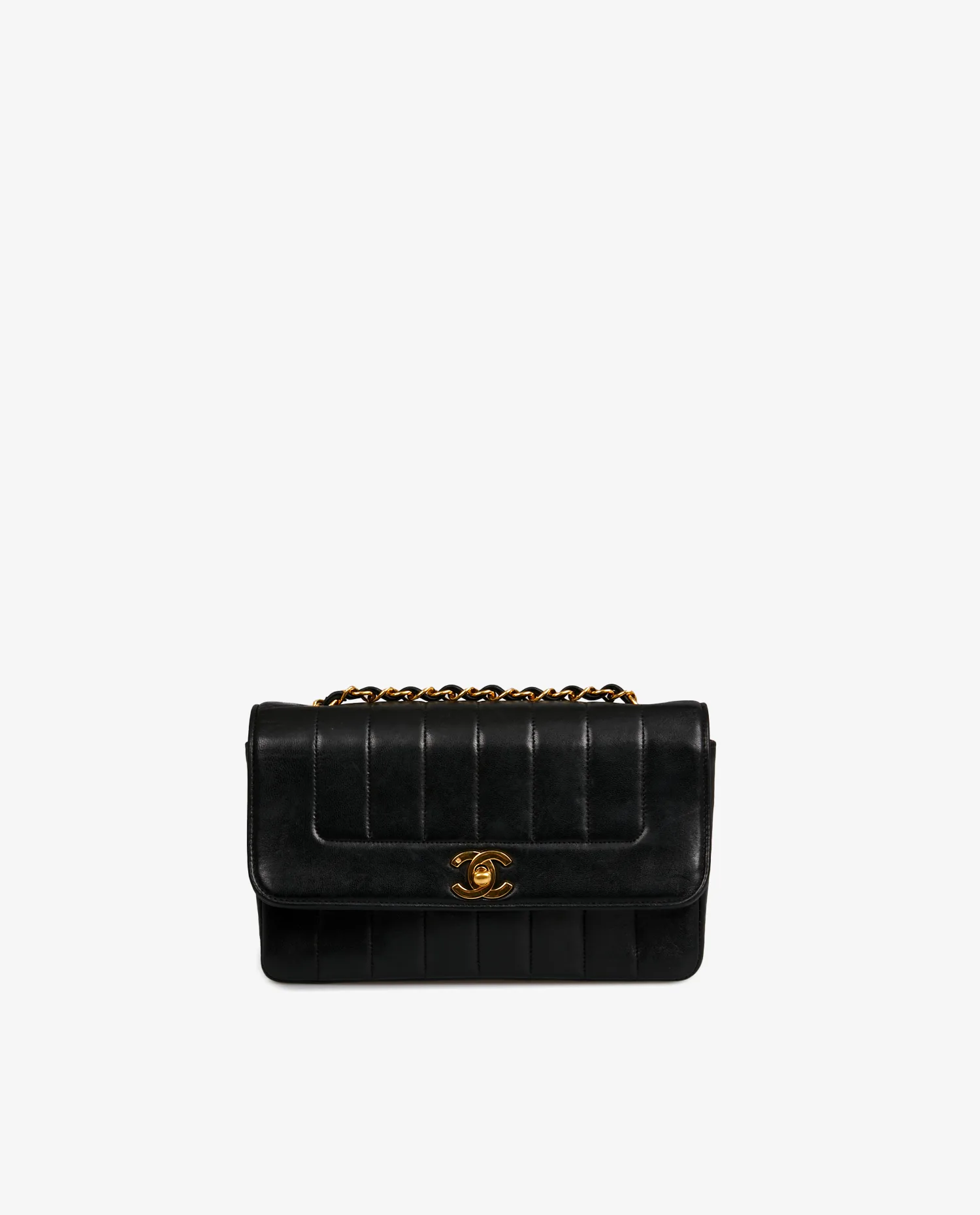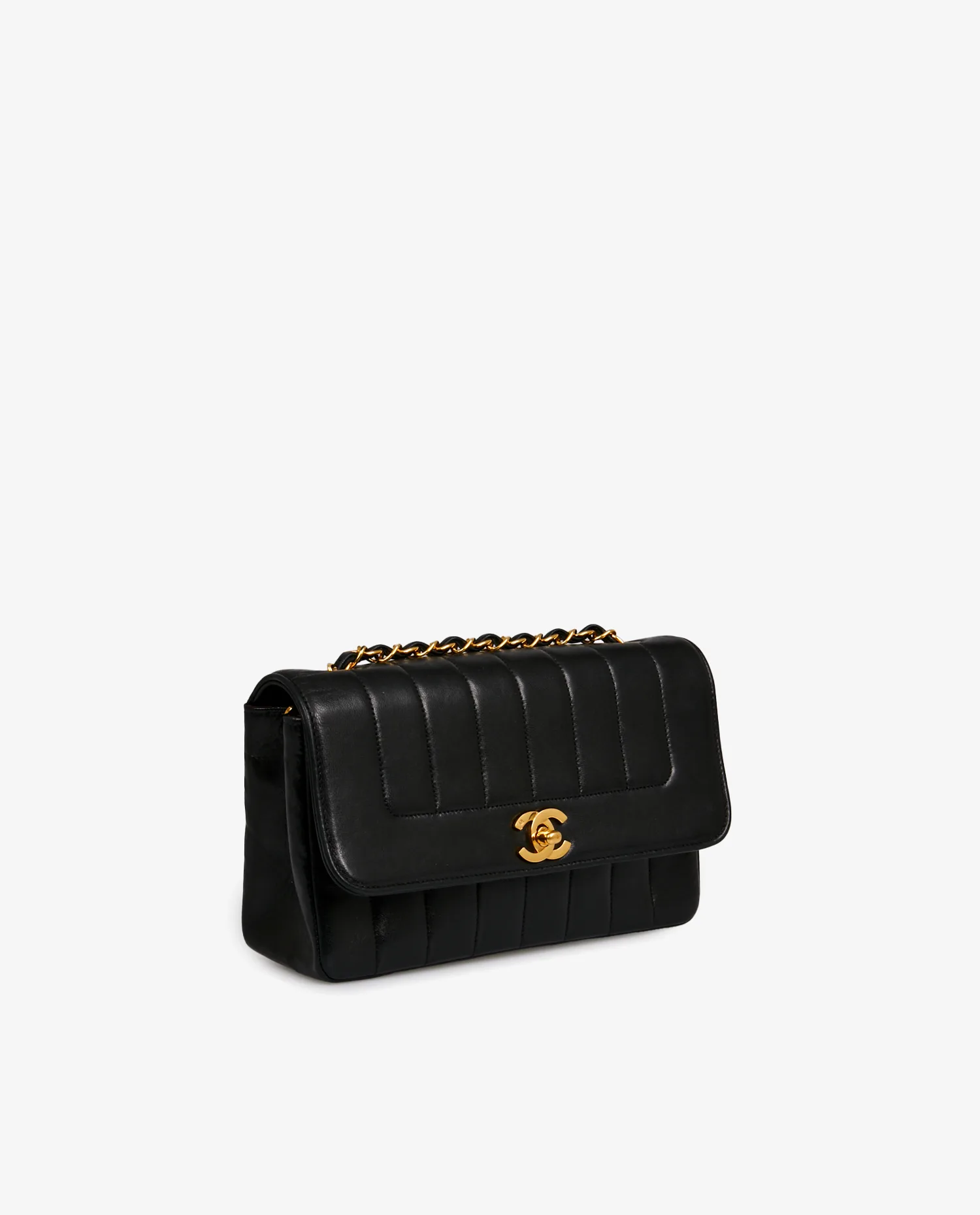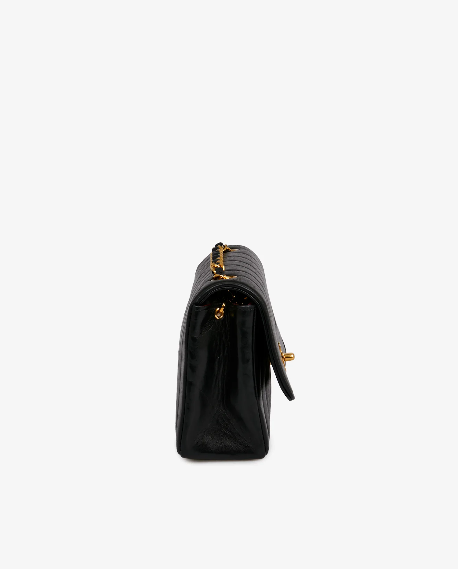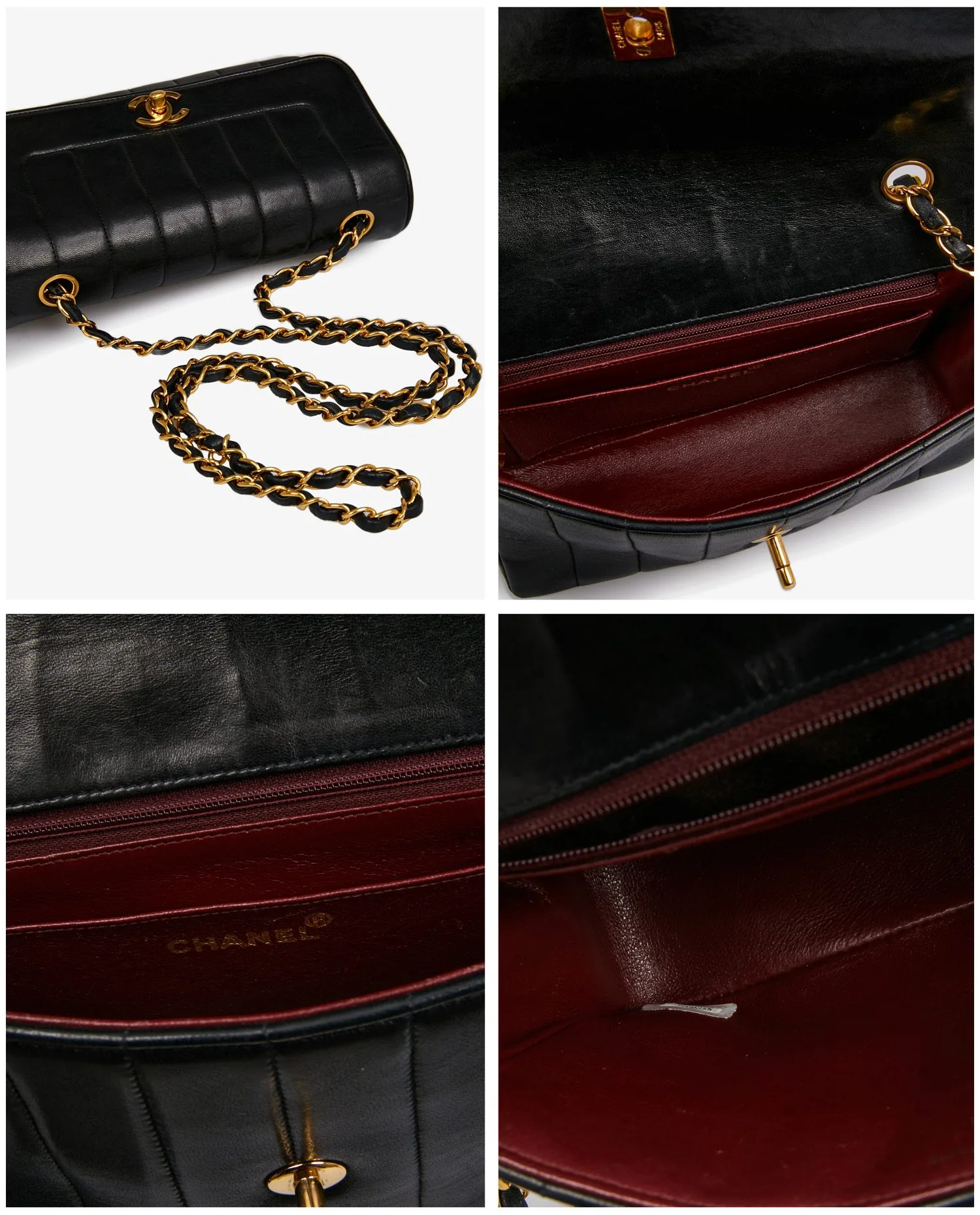 Vintage Mademoiselle Chanel bag in black lambskin. Carried on the shoulder or across the body. The burgundy leather interior features two pockets, 1 of which is patch. The jewelry is 24K gold-plated. In very good condition. It will be delivered in an Old Fashioned Club dustbag.