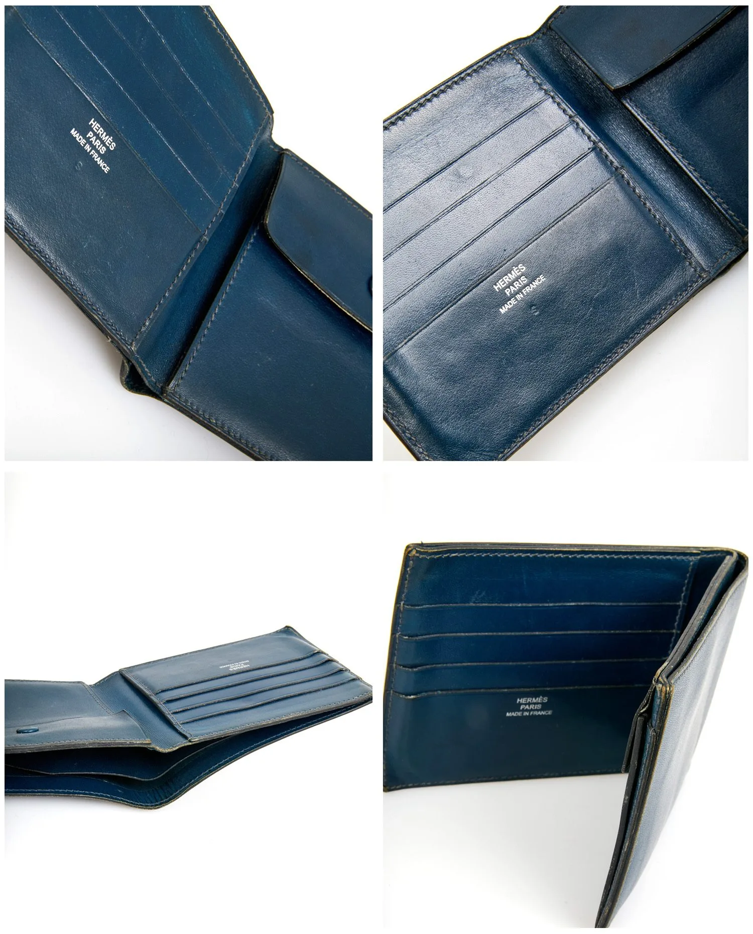 Vintage Hermès wallet in navy blue leather. Inside, 4 card slots, one coin slot and two bill slots. Letter L in a square, 2008. In good condition. Slight wear due to age. See photos.