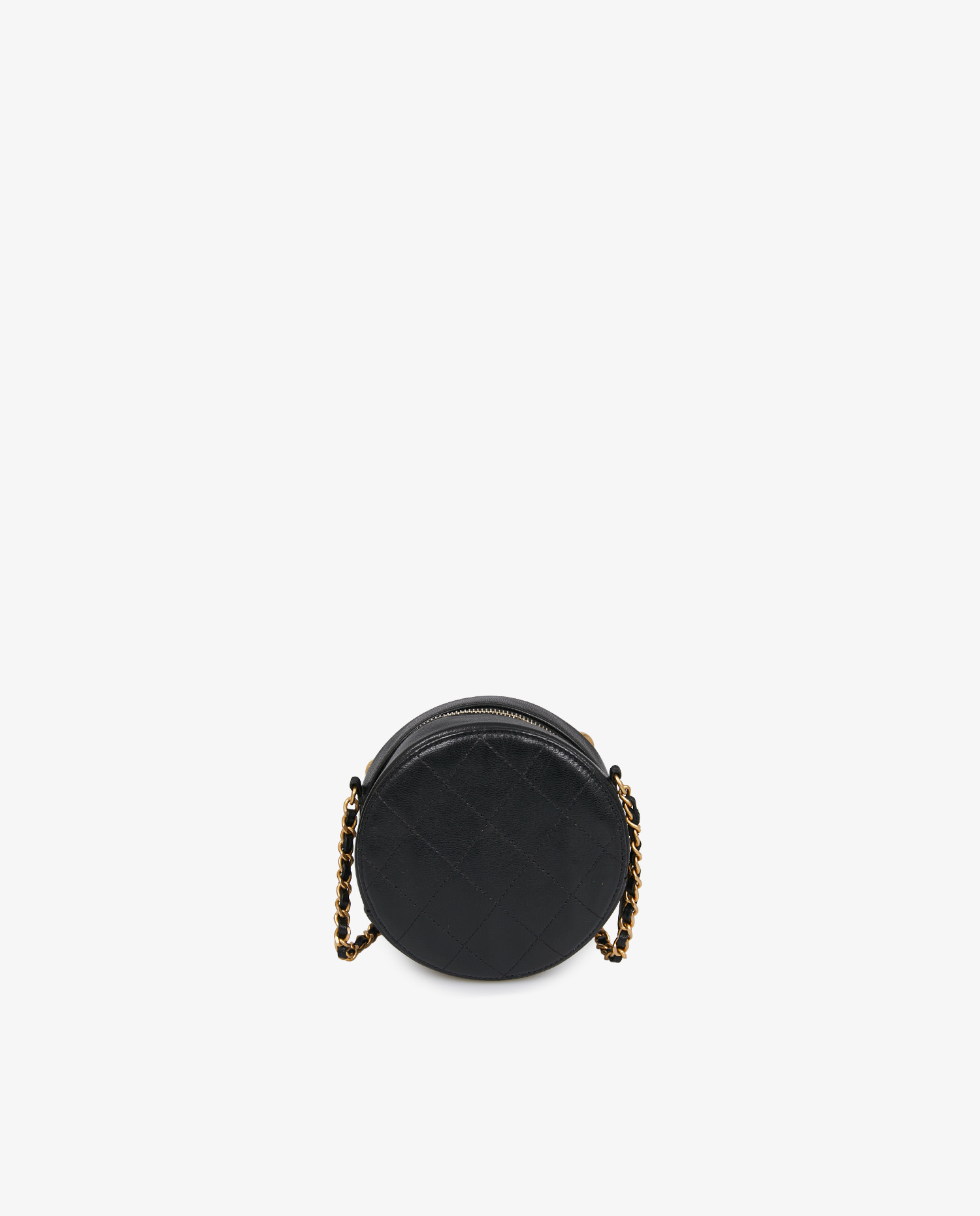 Chanel’s round bags, often nicknamed “circle bags” or “minaudières”, take up the codes of evening accessories imagined by the house as early as the 1980s. This model combines the charm of jewelry bags with Chanel’s timeless codes, with quilted leather, gold chain and pearls evoking Gabrielle Chanel’s couture heritage and taste for precious details.
