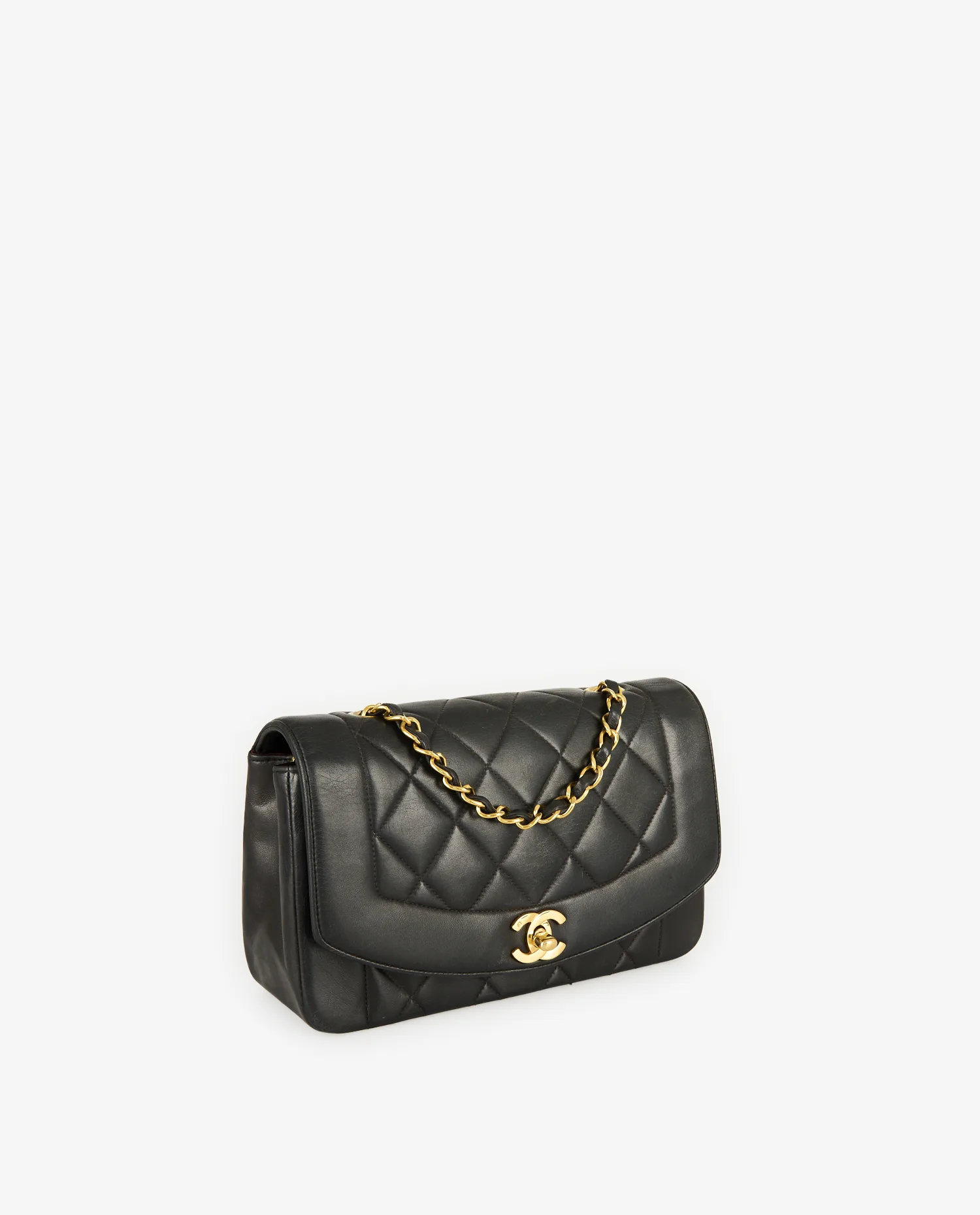The Diana bag, introduced by Chanel in the early 1990s, owes its name to Princess Diana, who frequently wore it, thus contributing to her notoriety. This model was produced until 1996, then reissued in limited editions, which gives the original versions a particular value on the vintage market. Recognizable by its slightly rounded silhouette and its structured flap, it is in line with classic Chanel bags while maintaining a distinct identity, between refinement and sobriety.