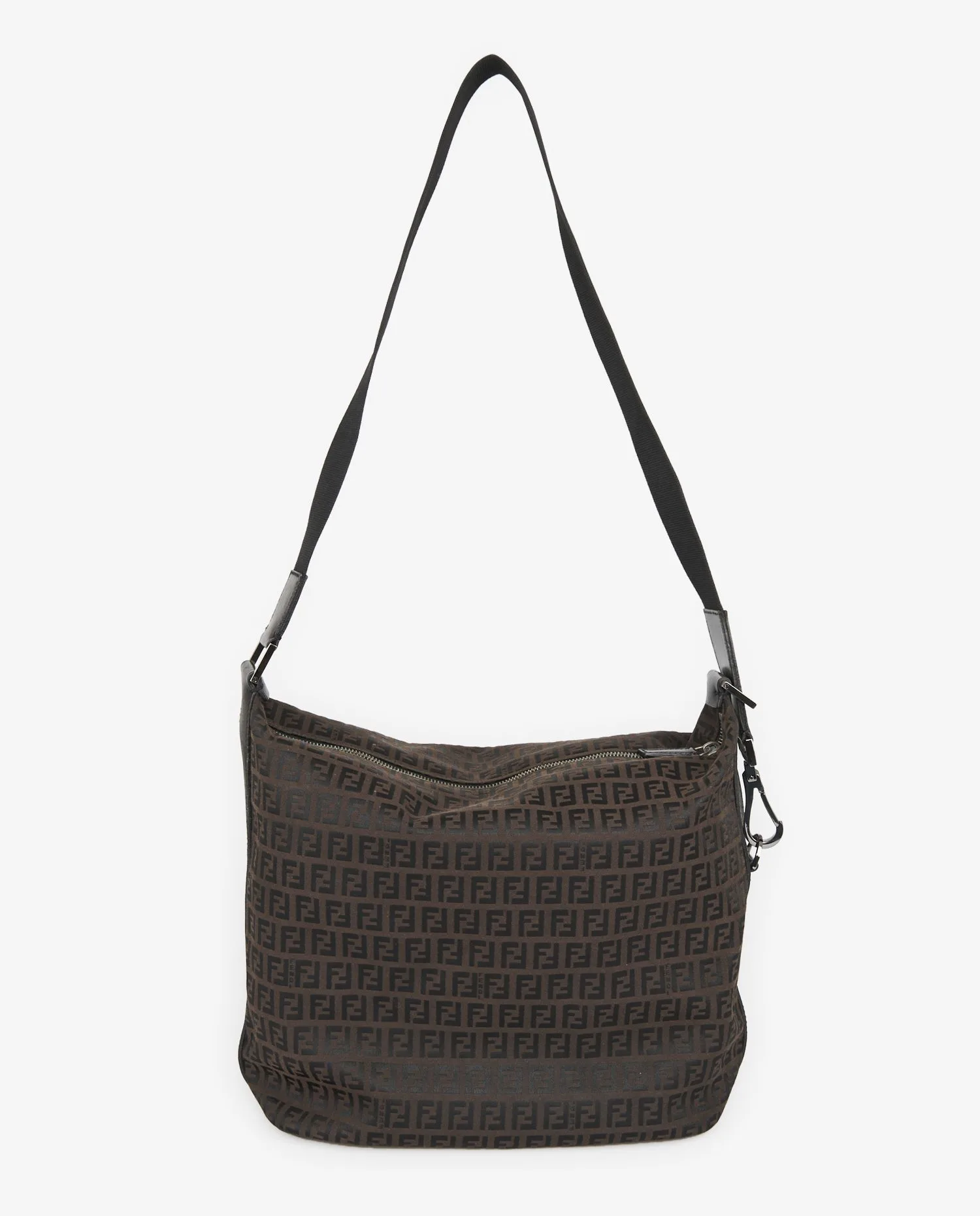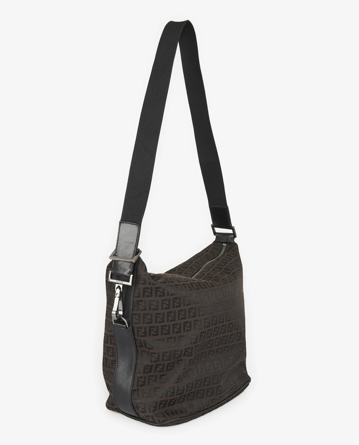 The FF pattern, also called “Zucca”, was created in 1965 by Karl Lagerfeld when he arrived at Fendi. First used as a lining, it quickly became a central element of the visual identity of the house. This type of bag, typical of collections from the 1990s and 2000s, reflects a utilitarian, urban and luxurious aesthetic, like the period when the logo was displayed as an integral element of style.