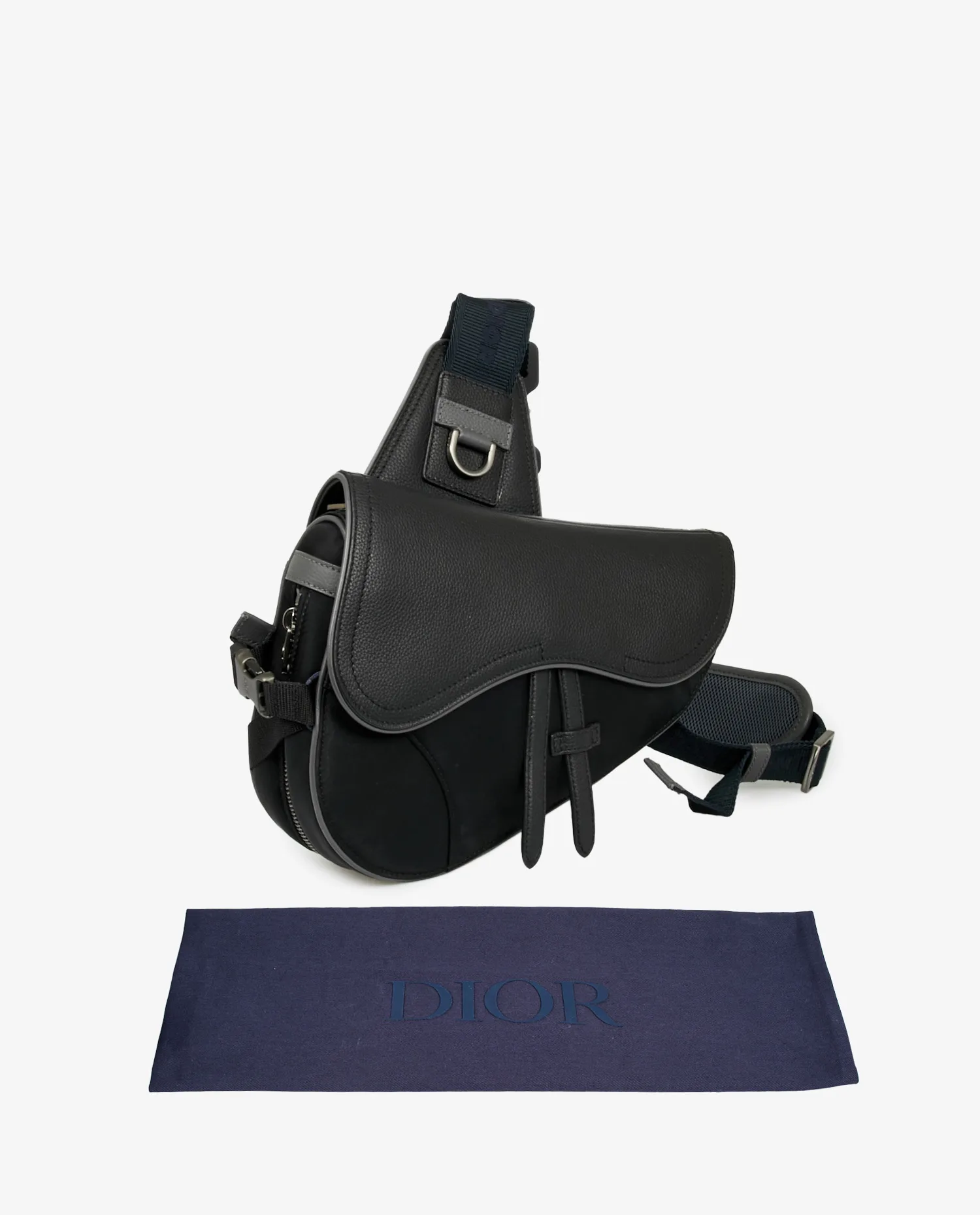 Dior men’s Saddle bag in black grained leather. Matte silver jewelry. Magnetic zipper closure. The interior is in black canvas. In very good condition. Delivered in its original dustbag. Public price 2900 euros.
