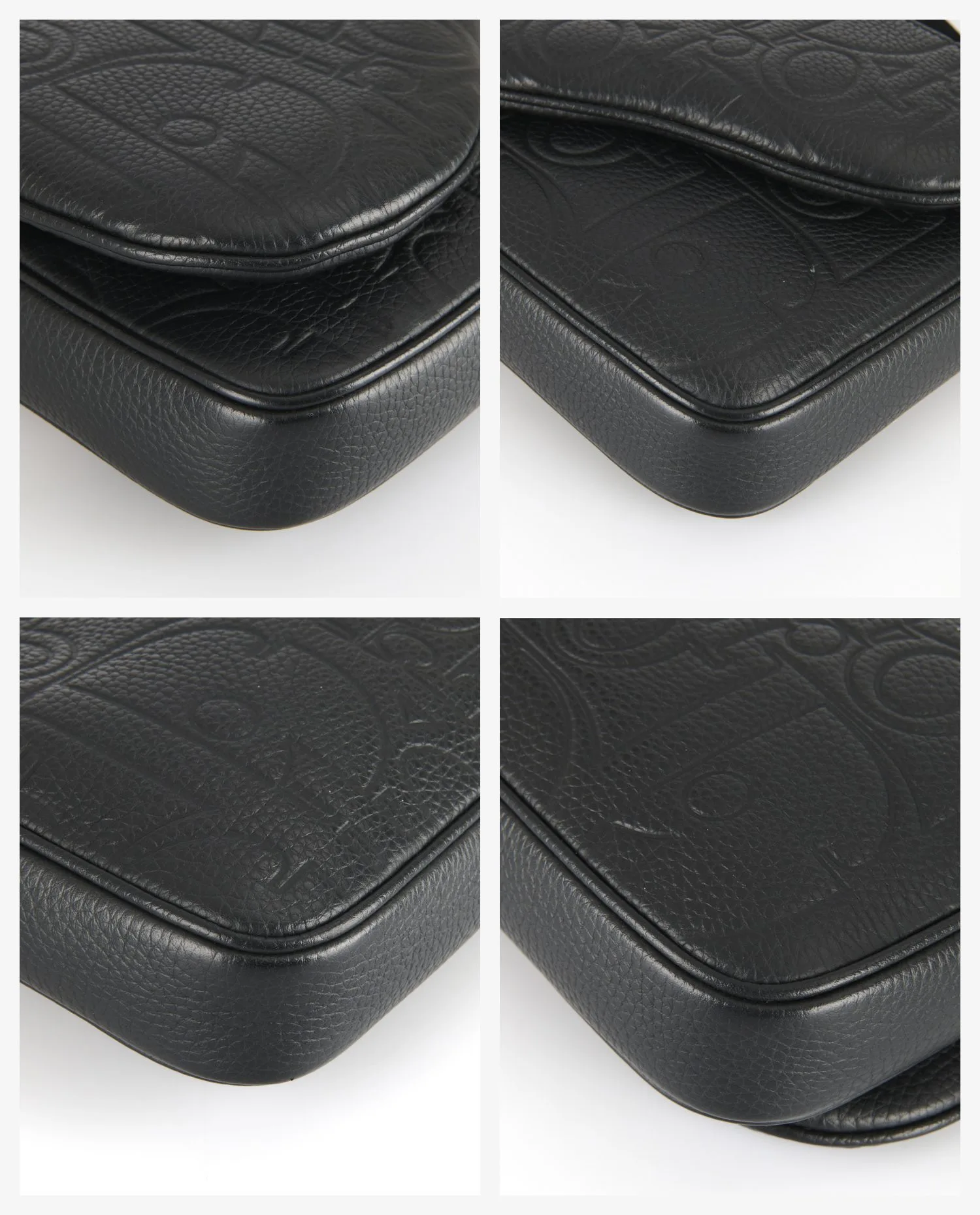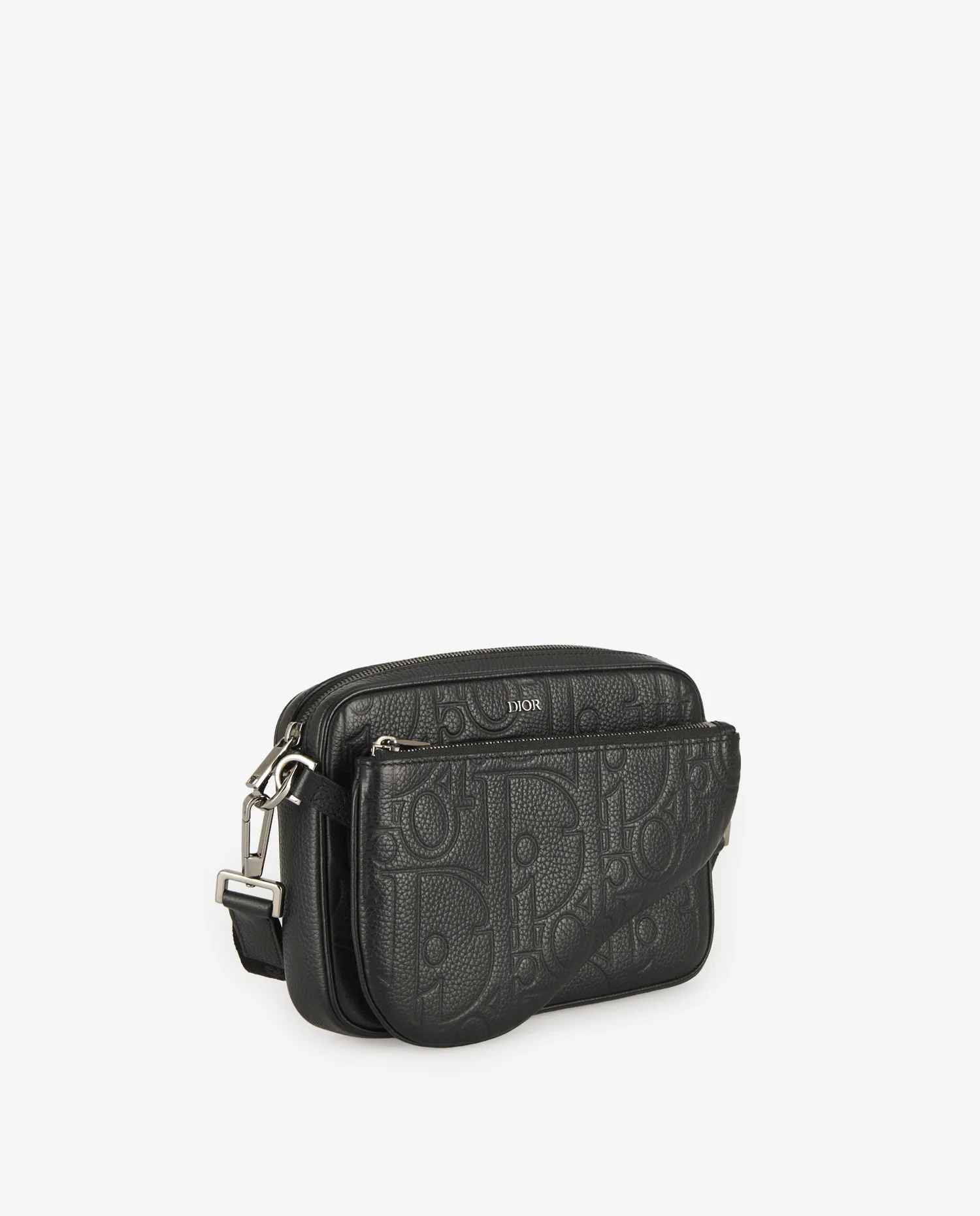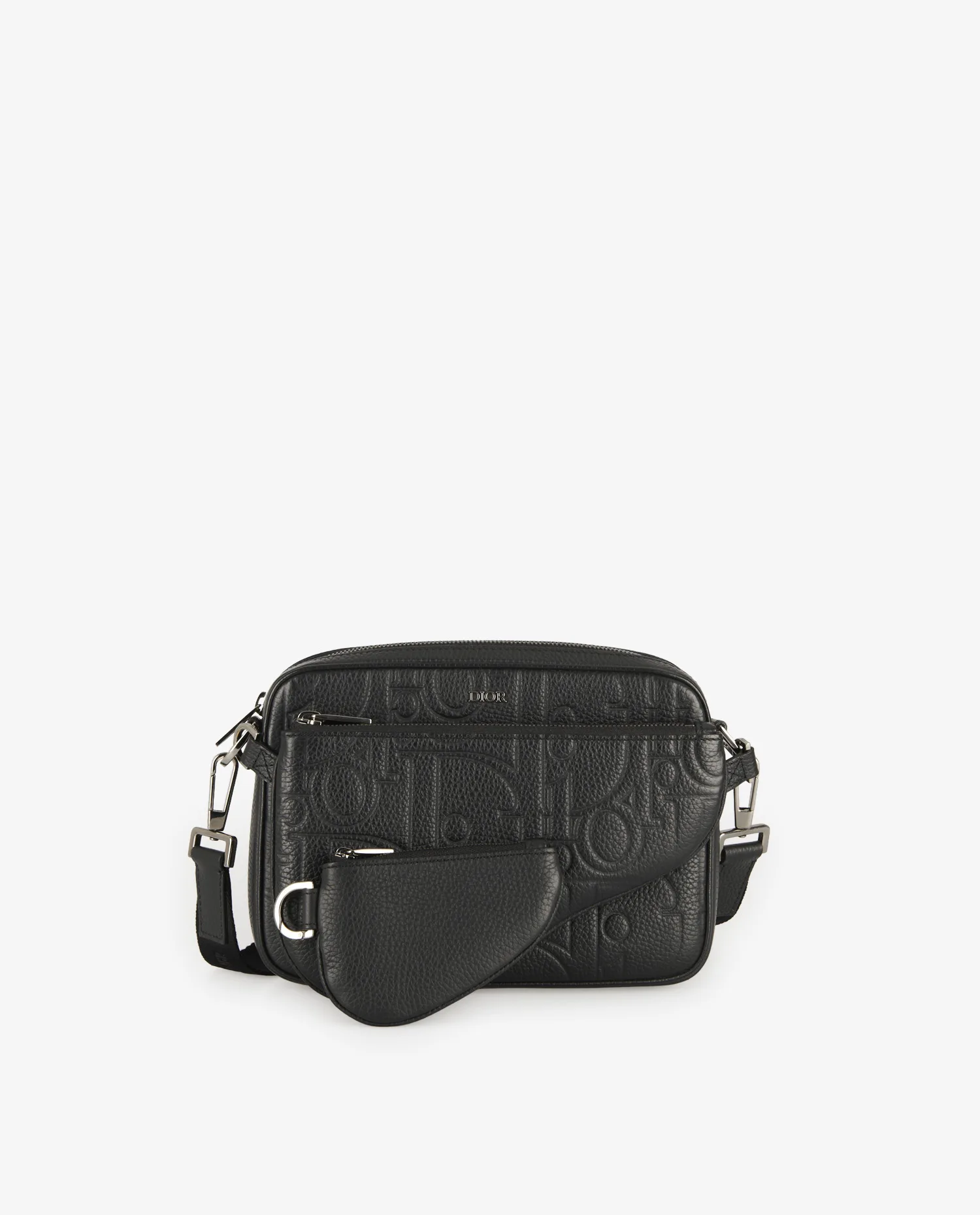 Black grained leather provides a robust, elegant texture, resistant to everyday wear and tear. The Dior monogram is embossed in tone-on-tone relief on the two larger pouches, reinforcing the visual identity of the piece. Metallic finishes in silver palladium provide a discreet yet refined contrast. All three pouches feature sturdy zippers, and metal rings allow them to be modulated at will on the shoulder strap.
