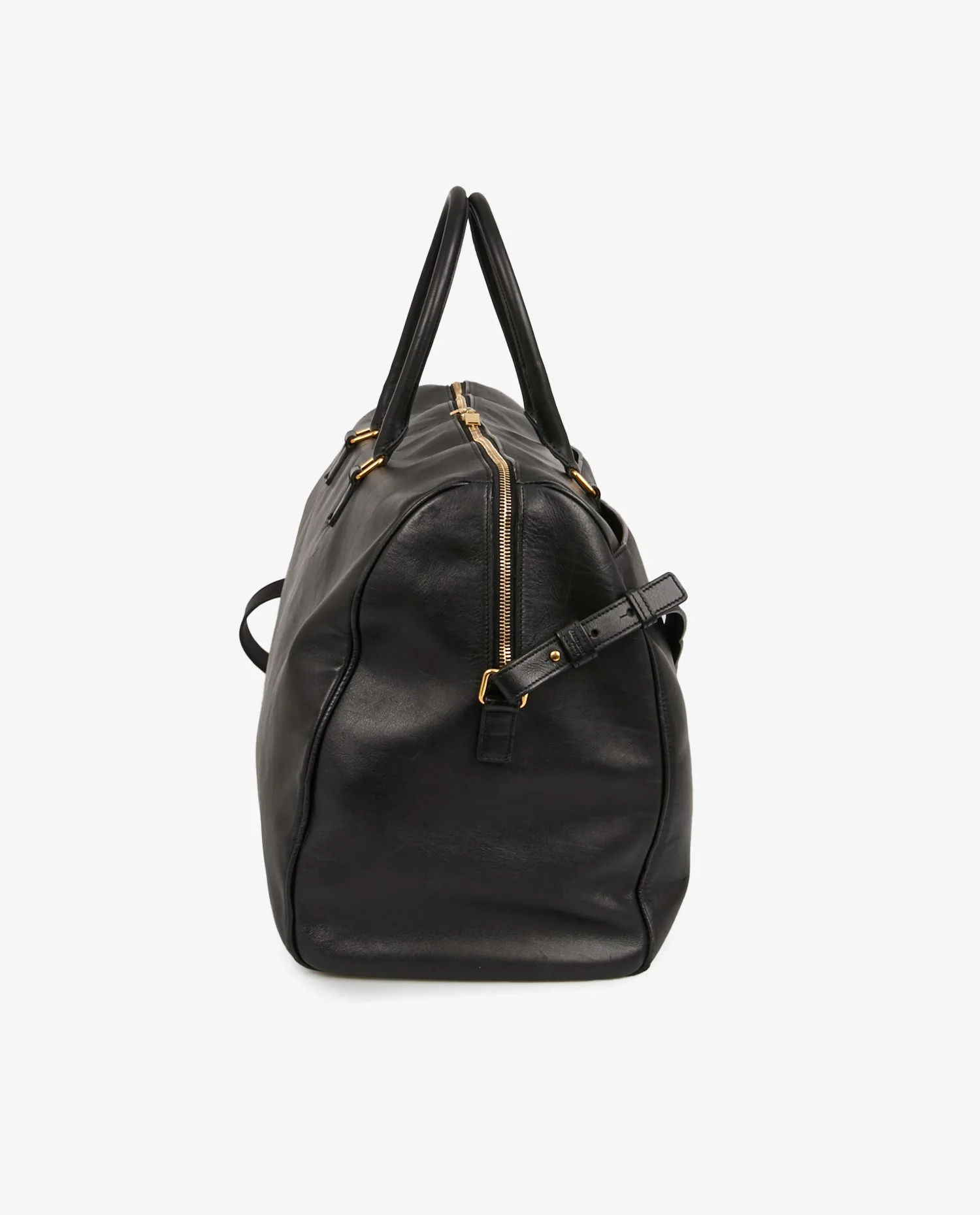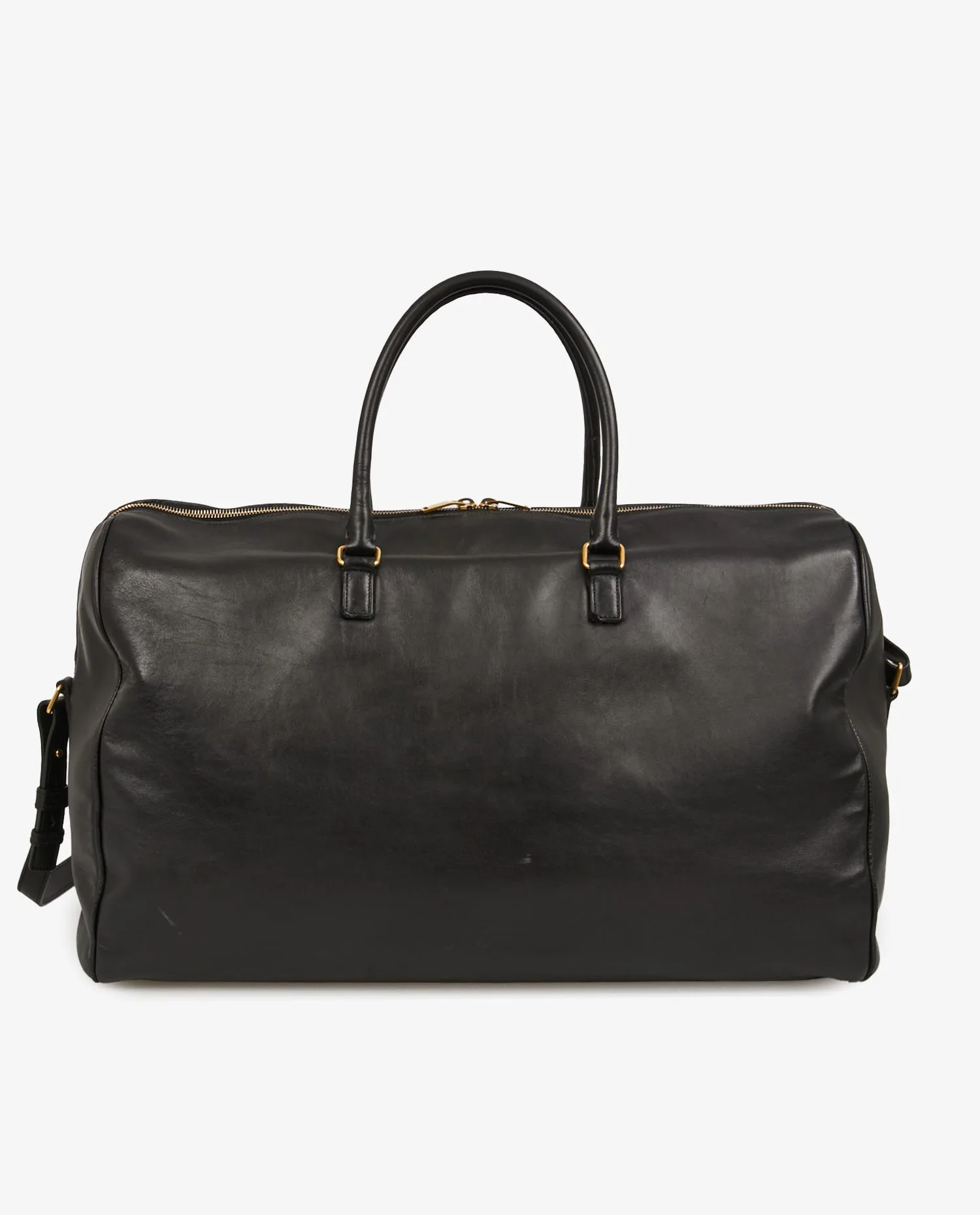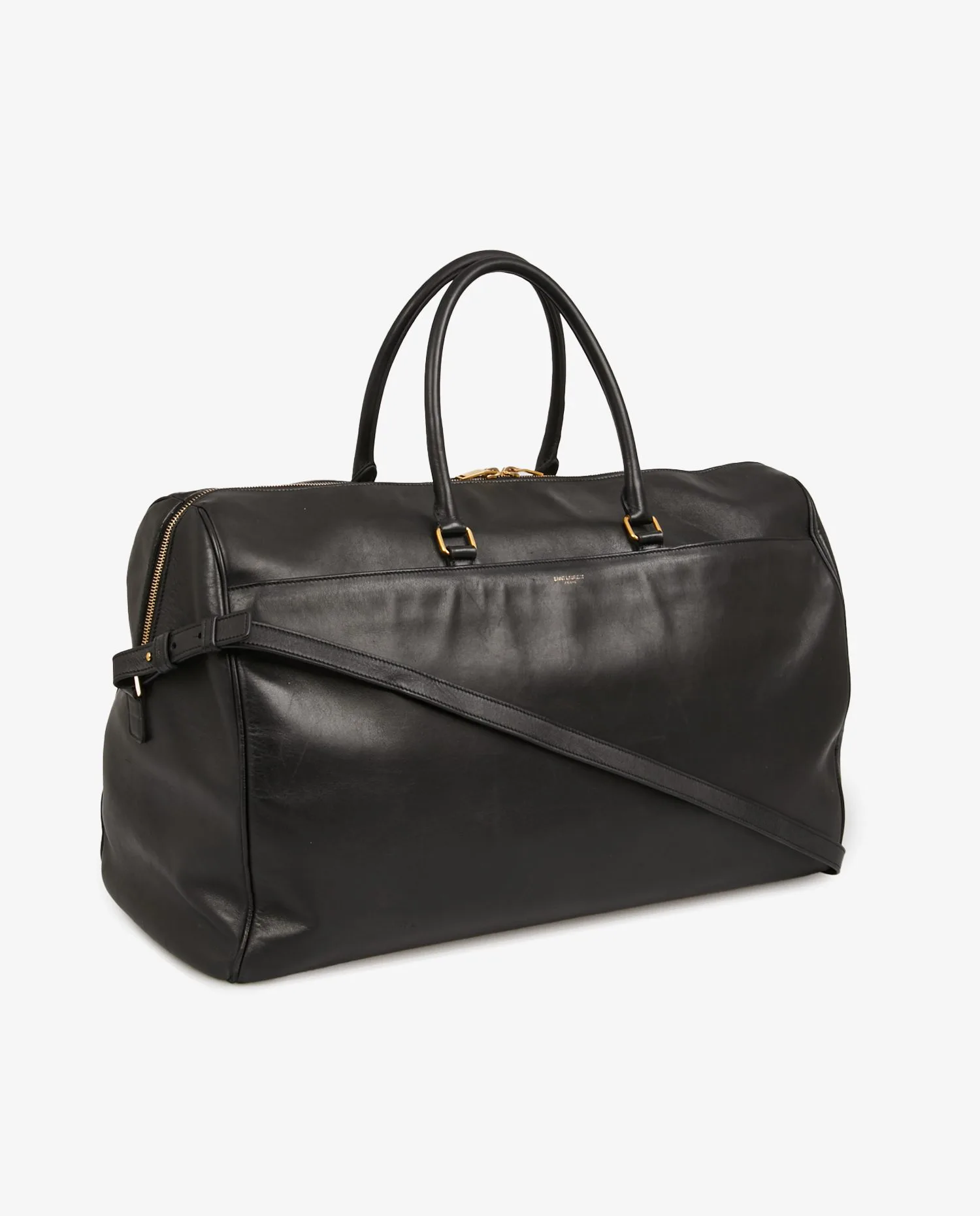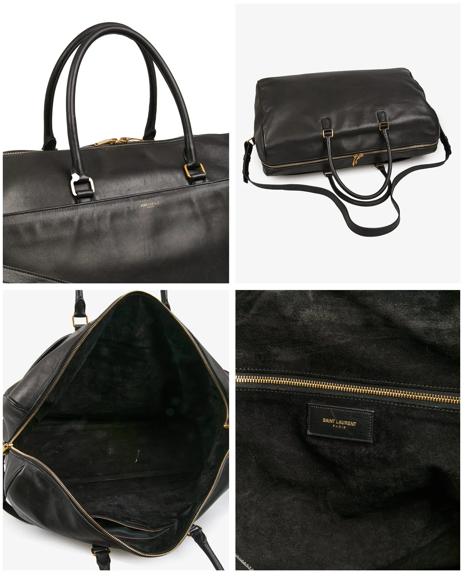 Saint Laurent travel bag in smooth black calf leather. Zipper closure. Carried by hand or over the shoulder (125cm). Black suede interior. In very good condition. A few scratches from wear and tear over time.