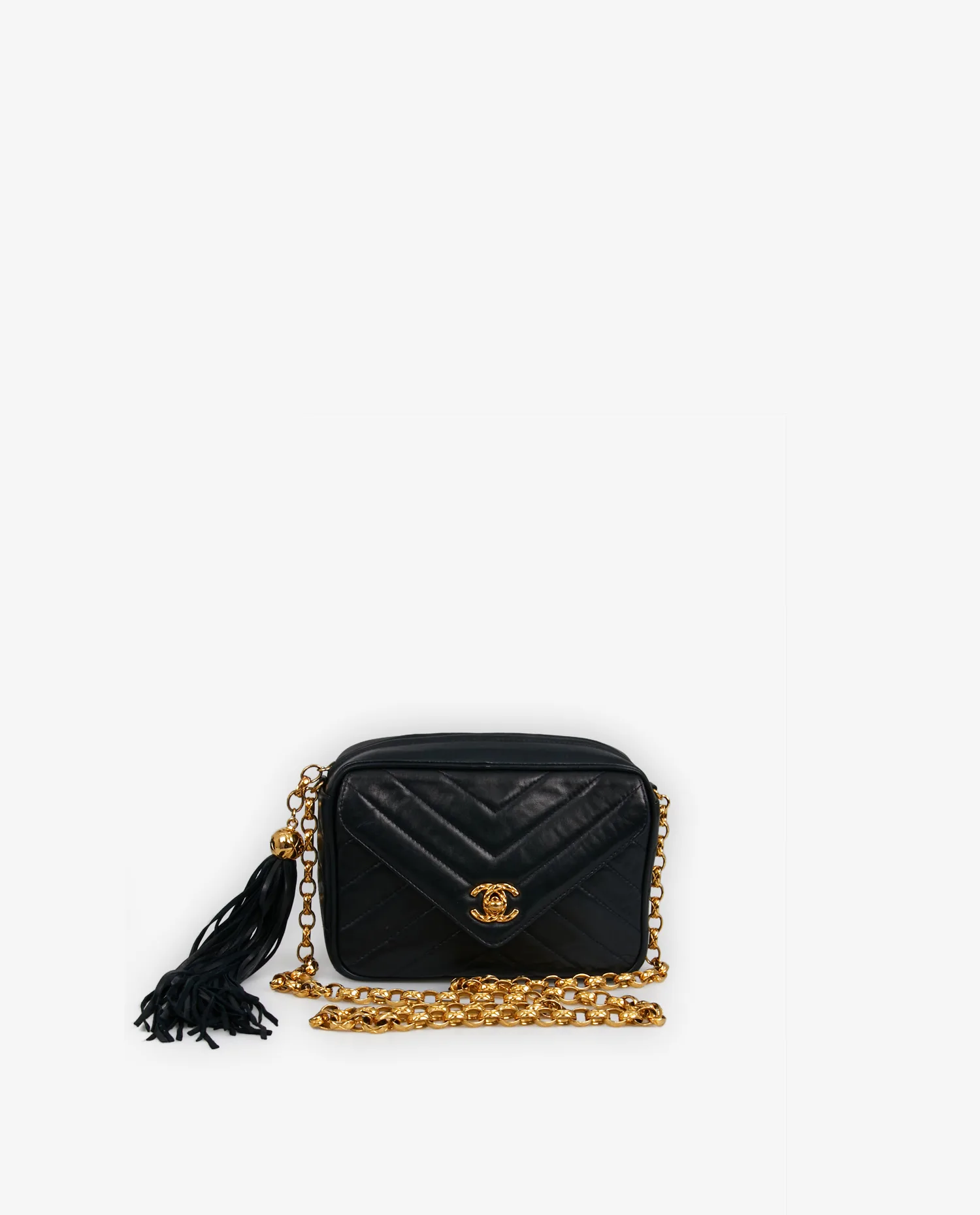 This Chanel mini camera bag is the perfect choice for lovers of vintage pieces that combine rarity and timelessness. Its navy blue hue and 24-carat jewelry perfectly illustrate the elegance of Chanel creations from the 90s. Compact, practical and refined, it is a singular addition to any collection or everyday wardrobe, while testifying to the House’s savoir-faire.