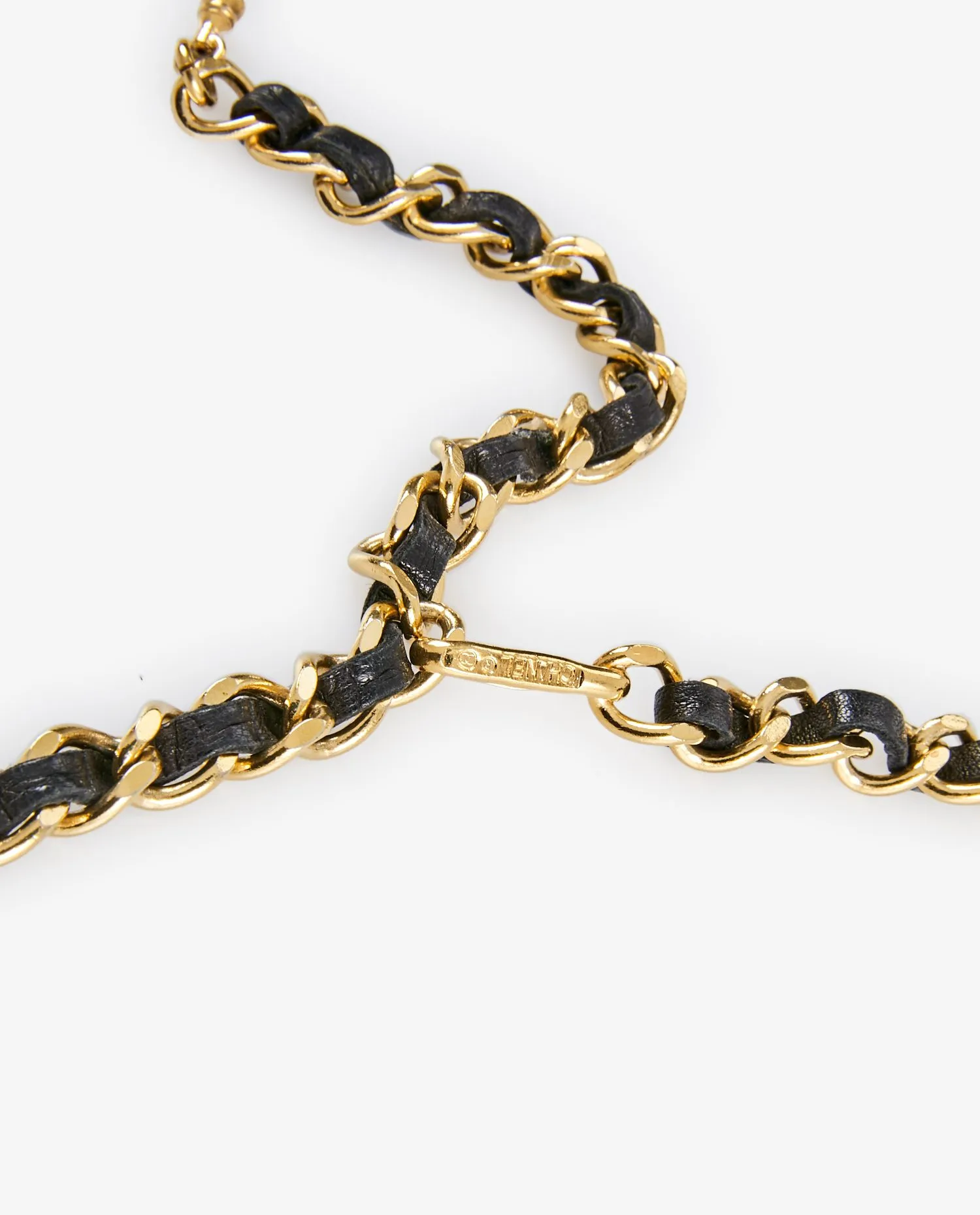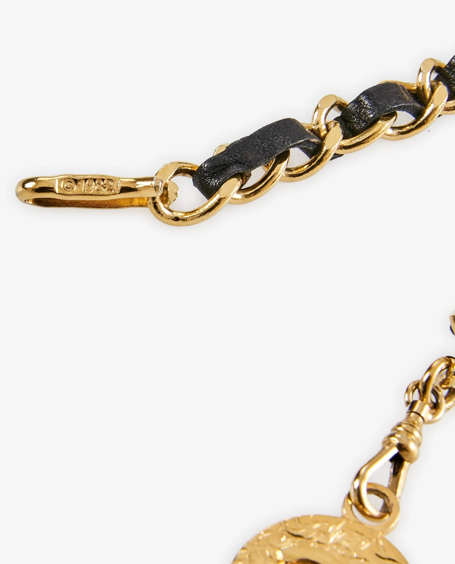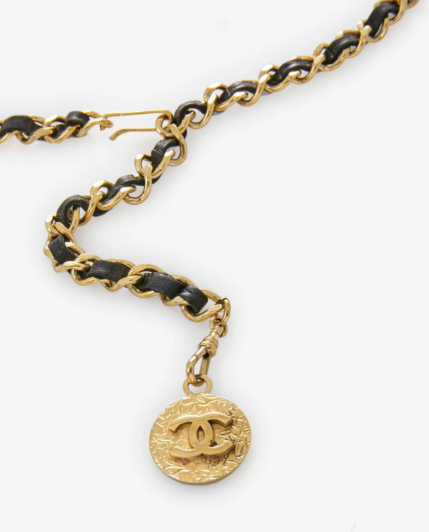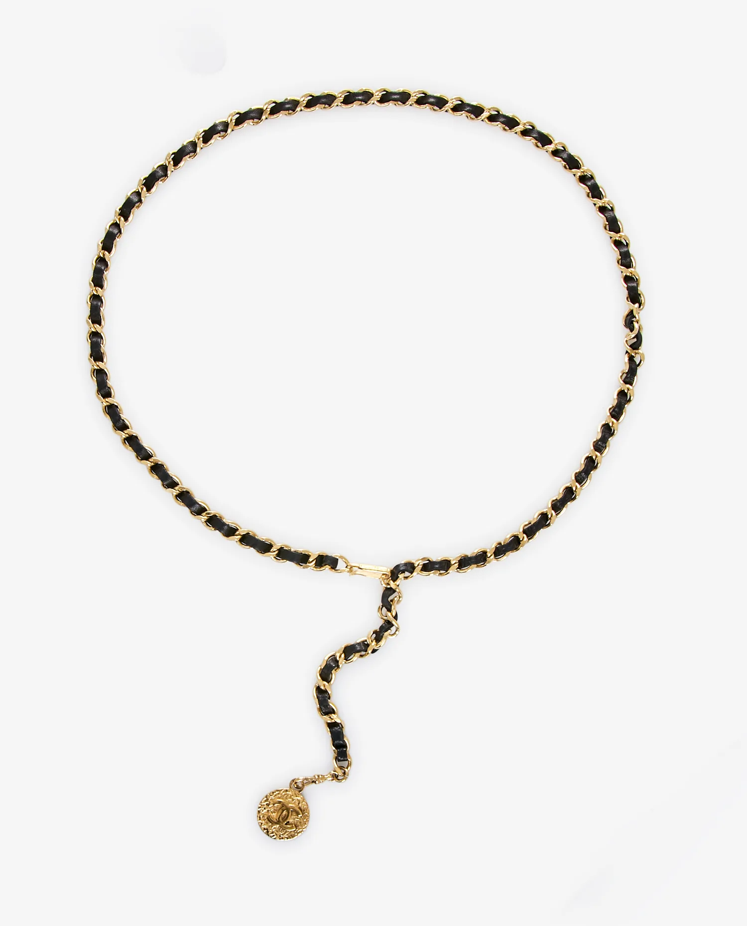 Vintage Chanel belt in gold chain interwoven with black lambskin leather. In very good condition.