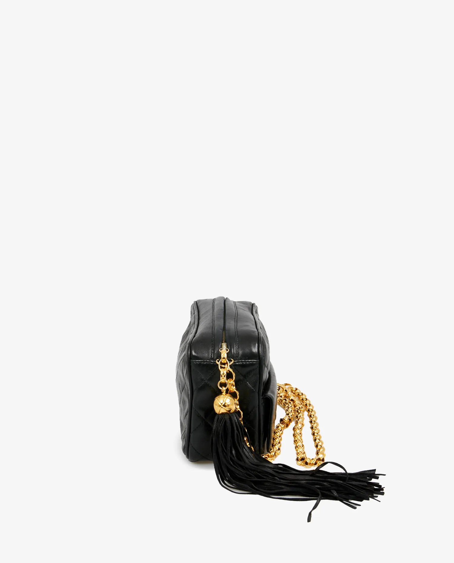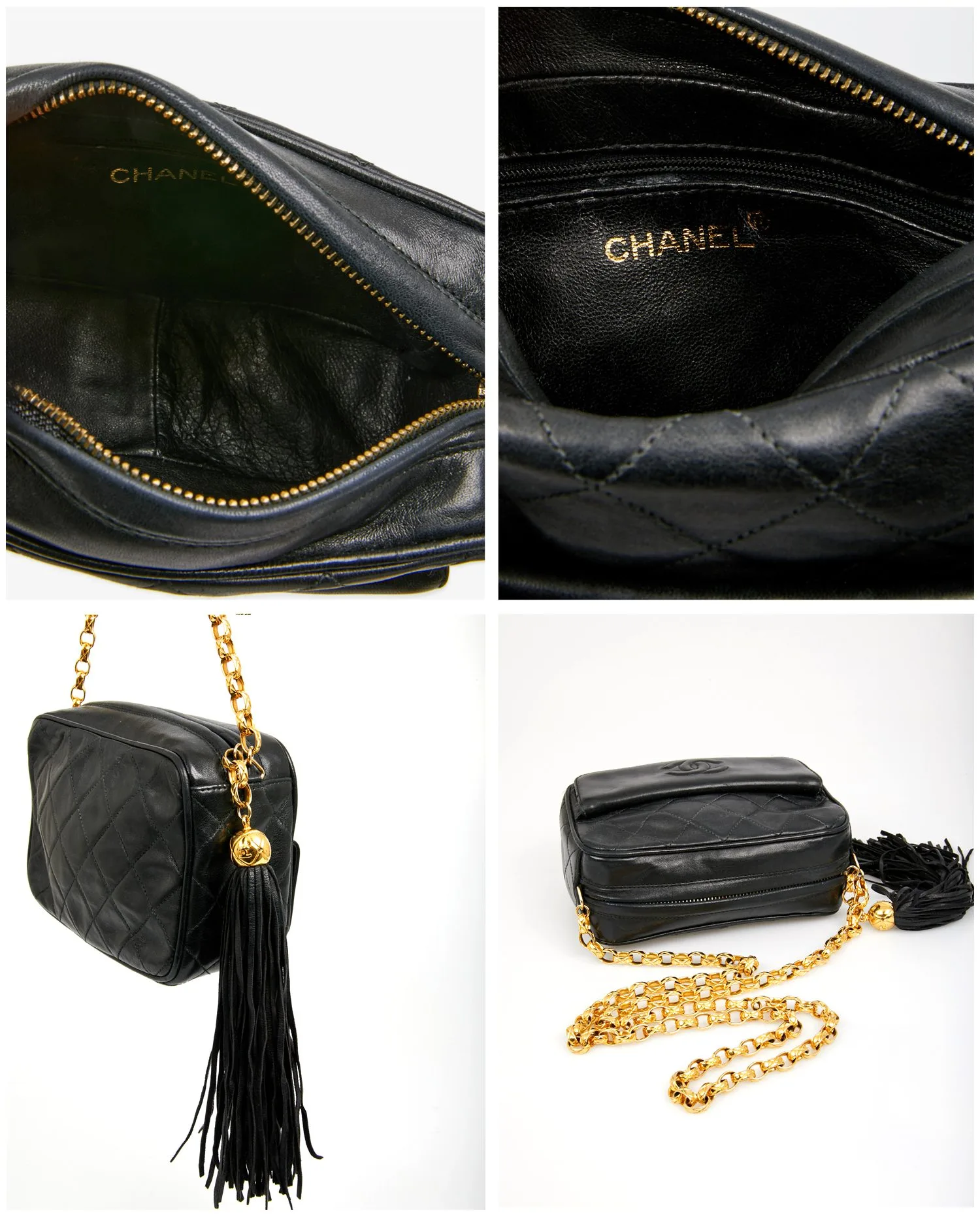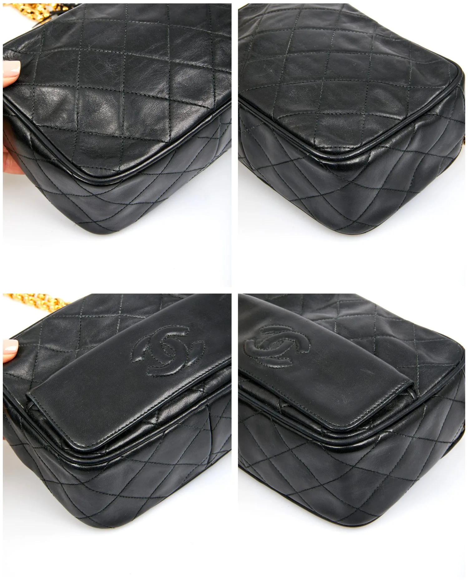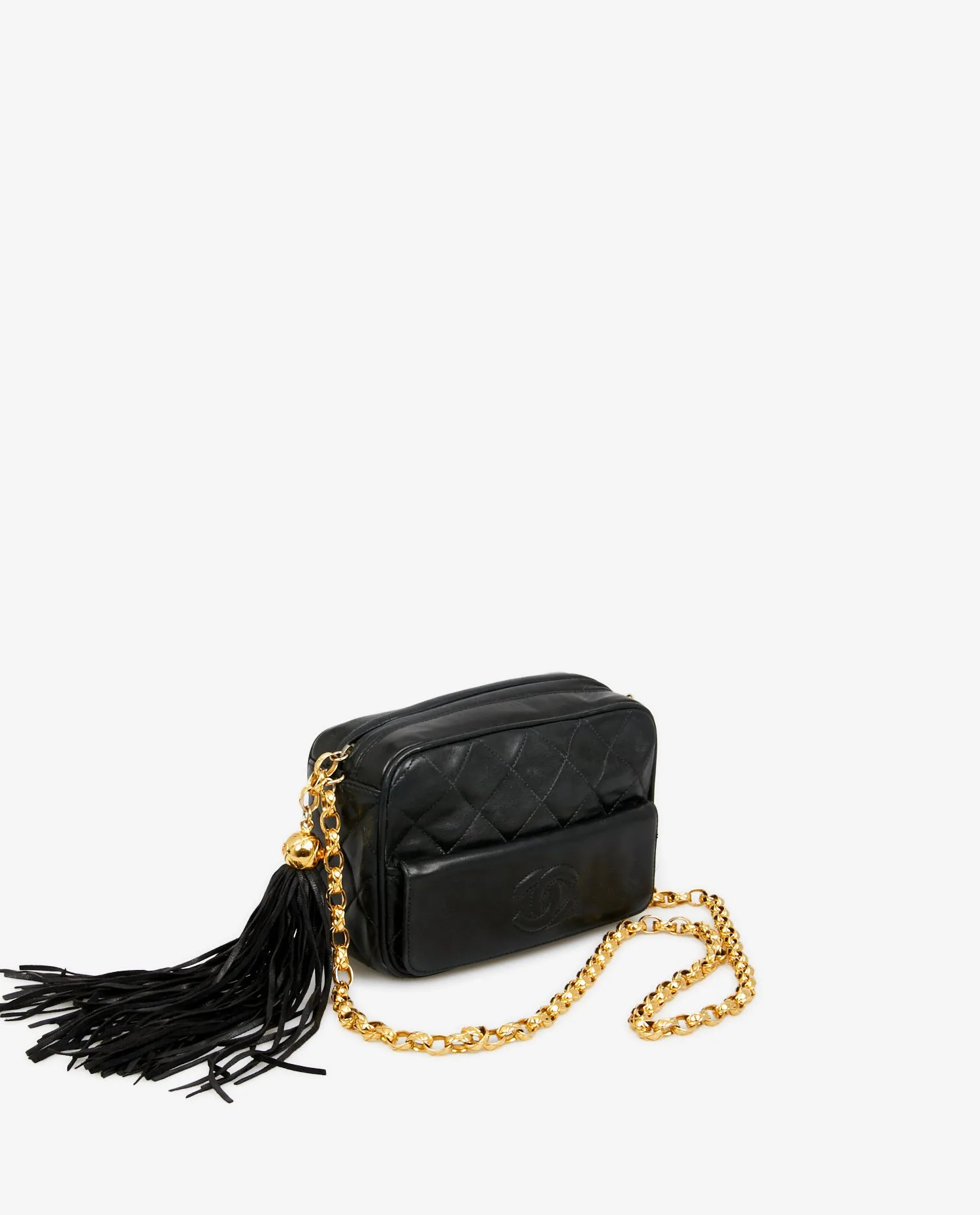 Vintage Chanel mini Camera bag in quilted black lambskin. Zipper closure. Carried over the shoulder. In very good condition.