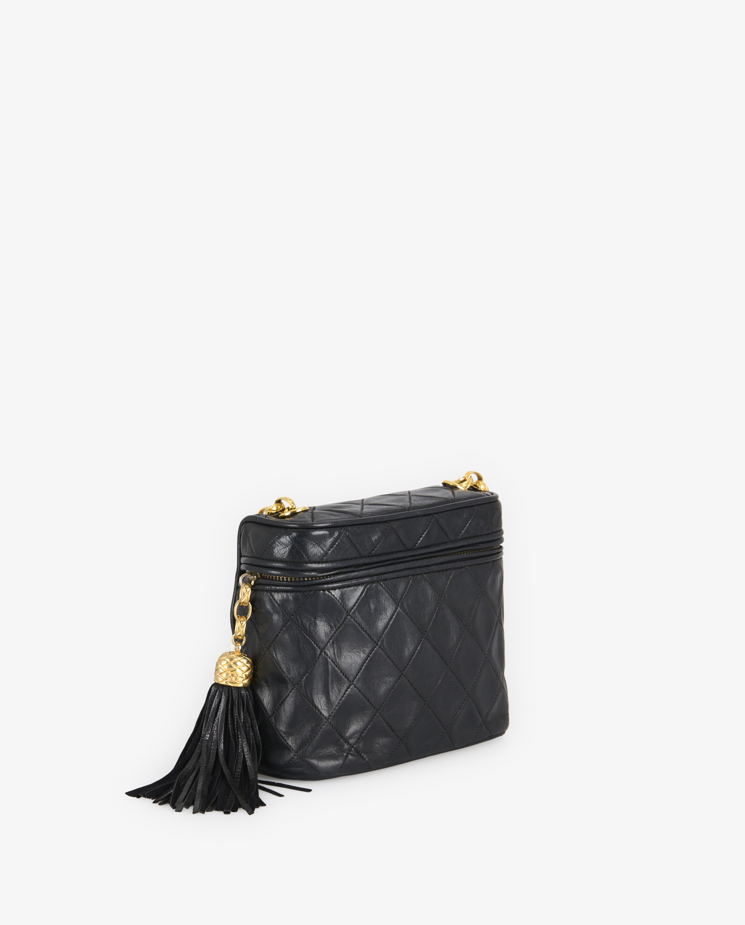 Chanel’s Vanity bag was inspired by the beauty kits that Gabrielle Chanel herself used. Over the years, this model has been declined in several sizes and finishes, becoming a Chanel leather goods staple of the 80s and 90s. This mini version, dating from the late ’80s, reflects the trend of the time for more compact bags, without compromising luxury or functionality. The use of lambskin leather and 24K gold plating testifies to the quality of Chanel production in this period.