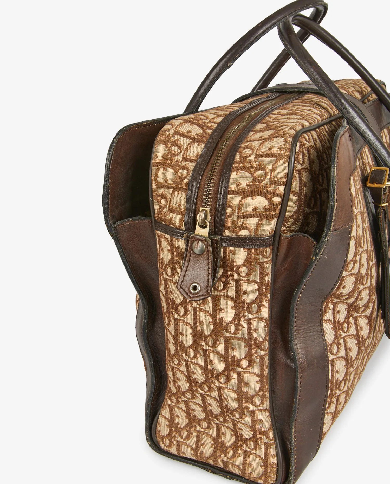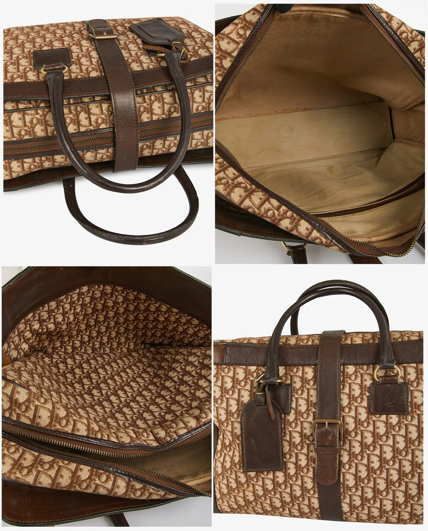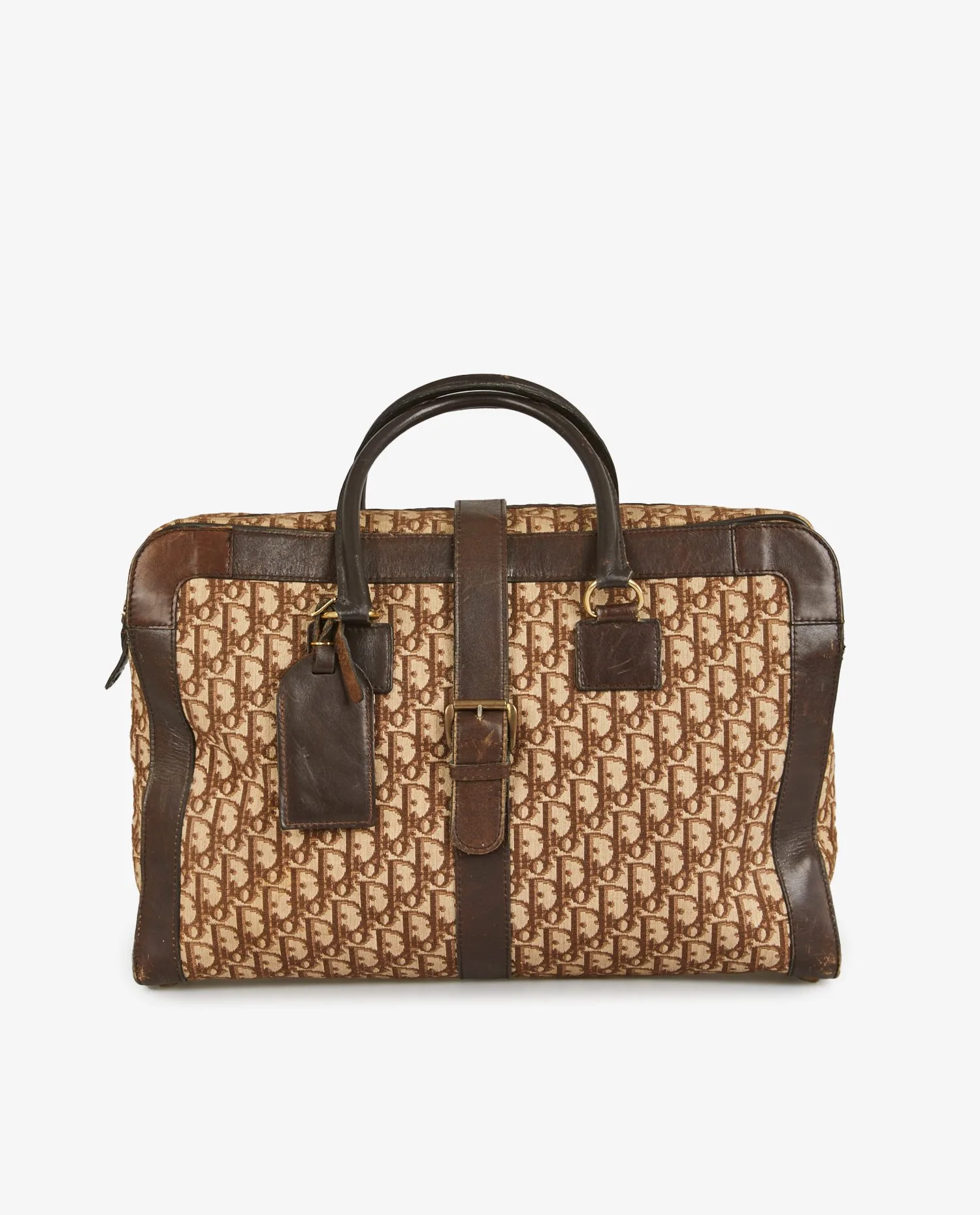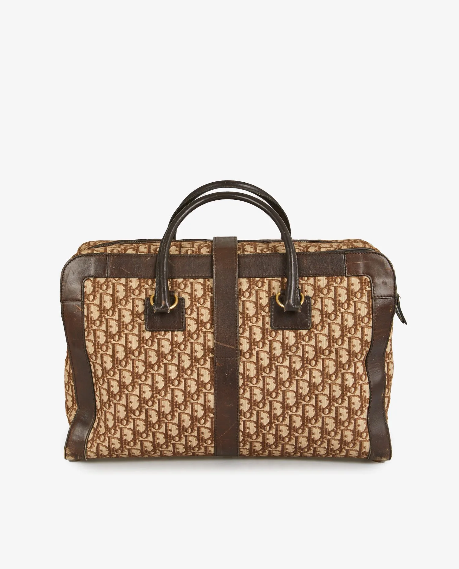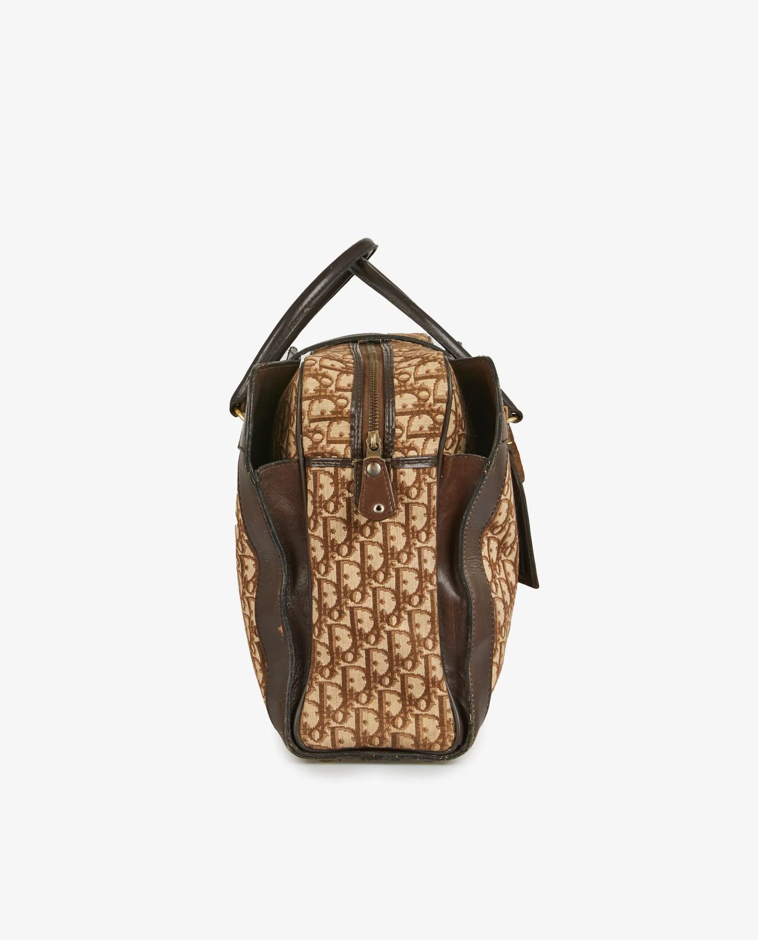 Christian Dior satchel in brown monogram canvas with leather trim. Hand-carried with zipper closure. In good condition. Signs of age-related wear.