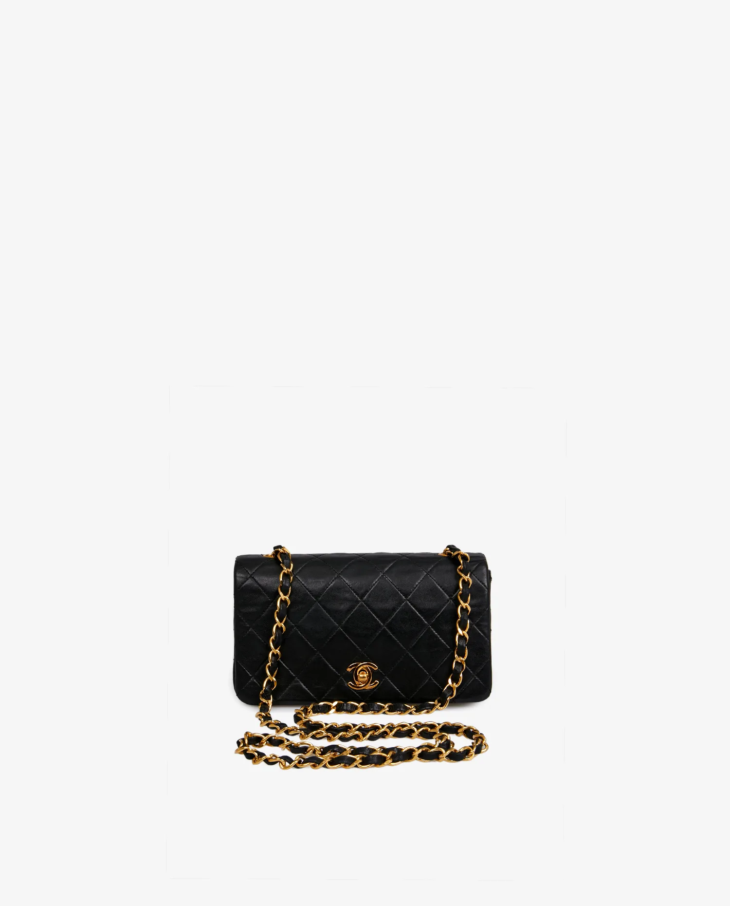 Wallet on chain Chanel vintager bag in black quilted lambskin. In very good condition.