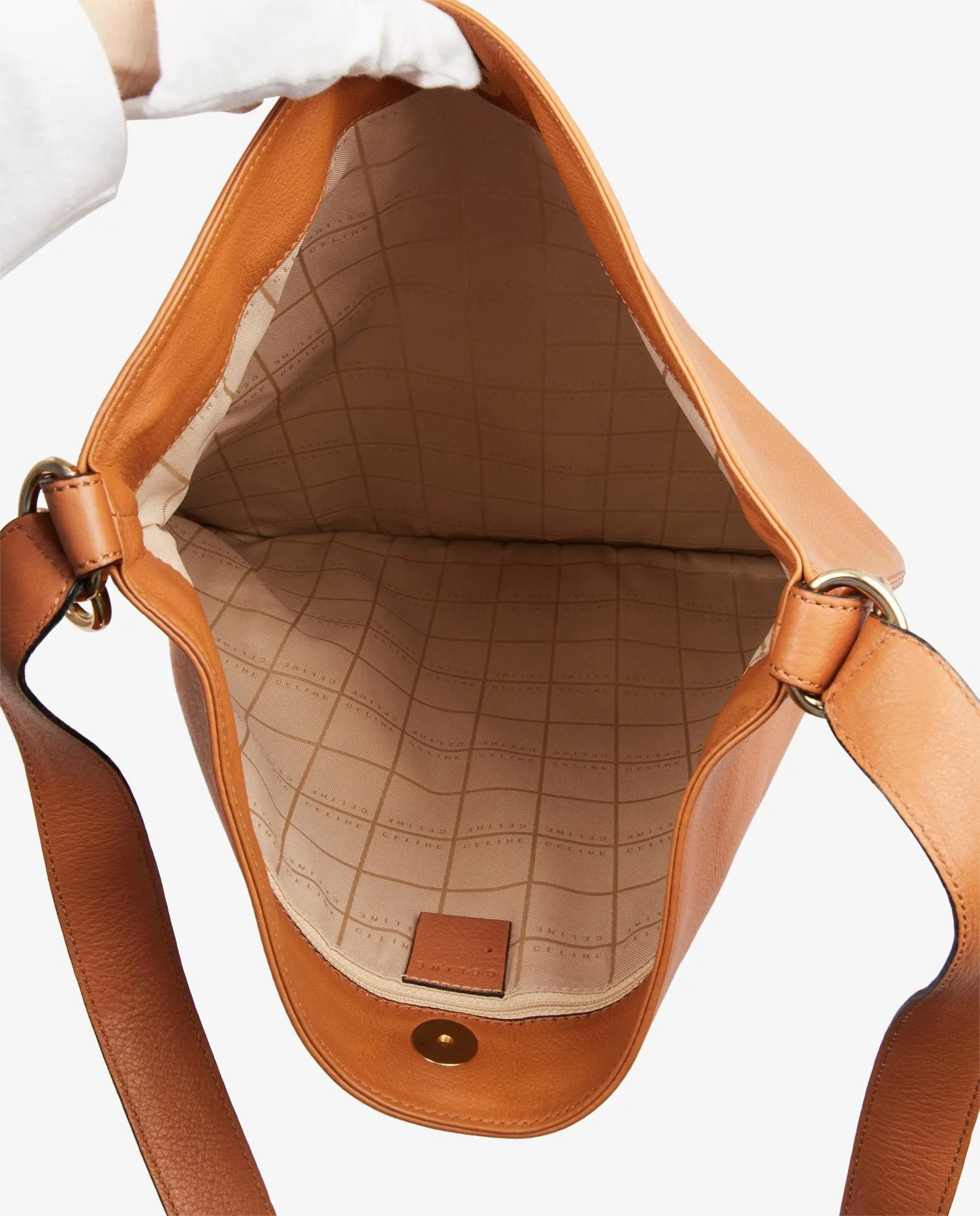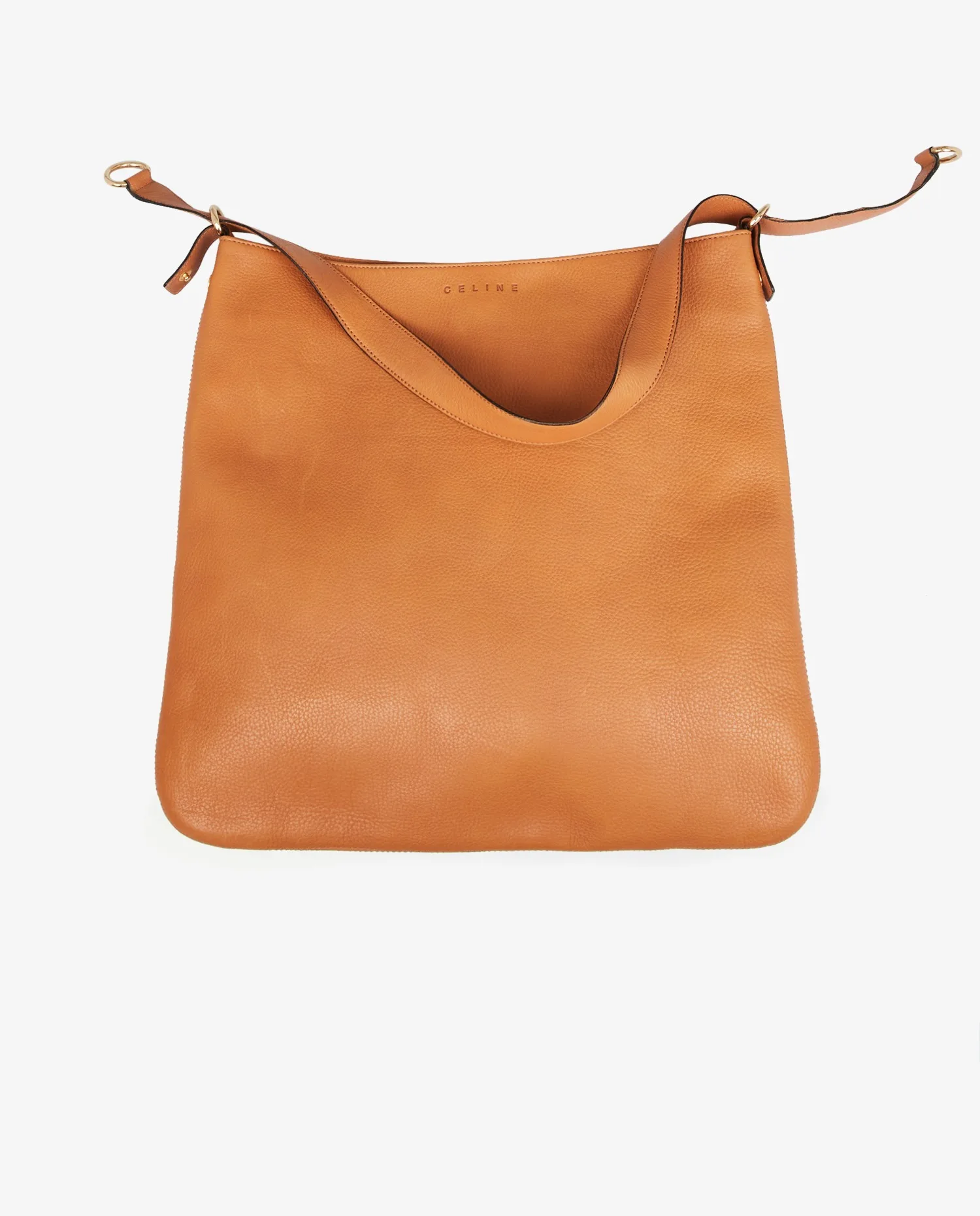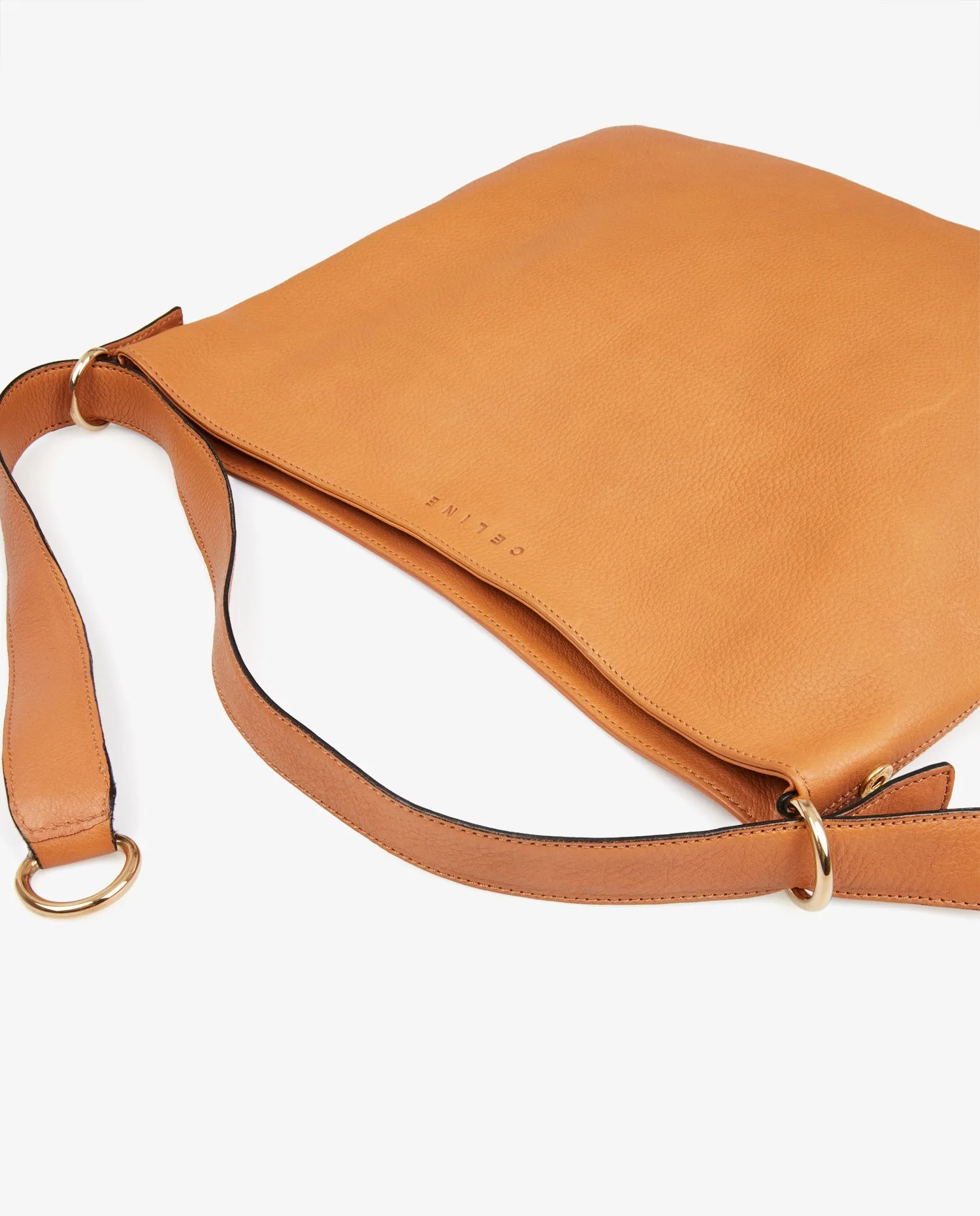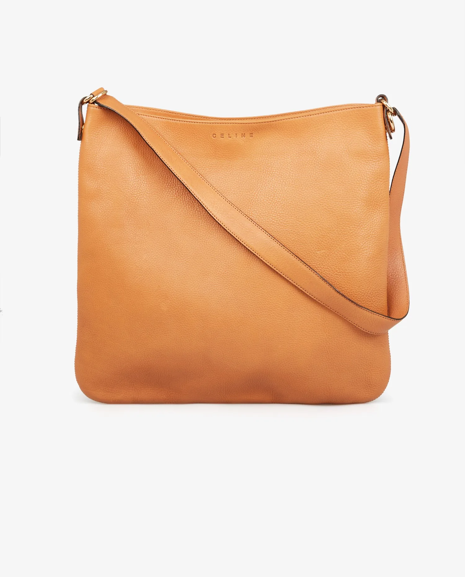Besace Celine en cuir gold. Fermeture par bouton pression. Porté à l’épaule ou crossbody. La bandoulière mesure 78cm. En très bon état. Quelques marques d’usure mais peu visible. Voir photos.