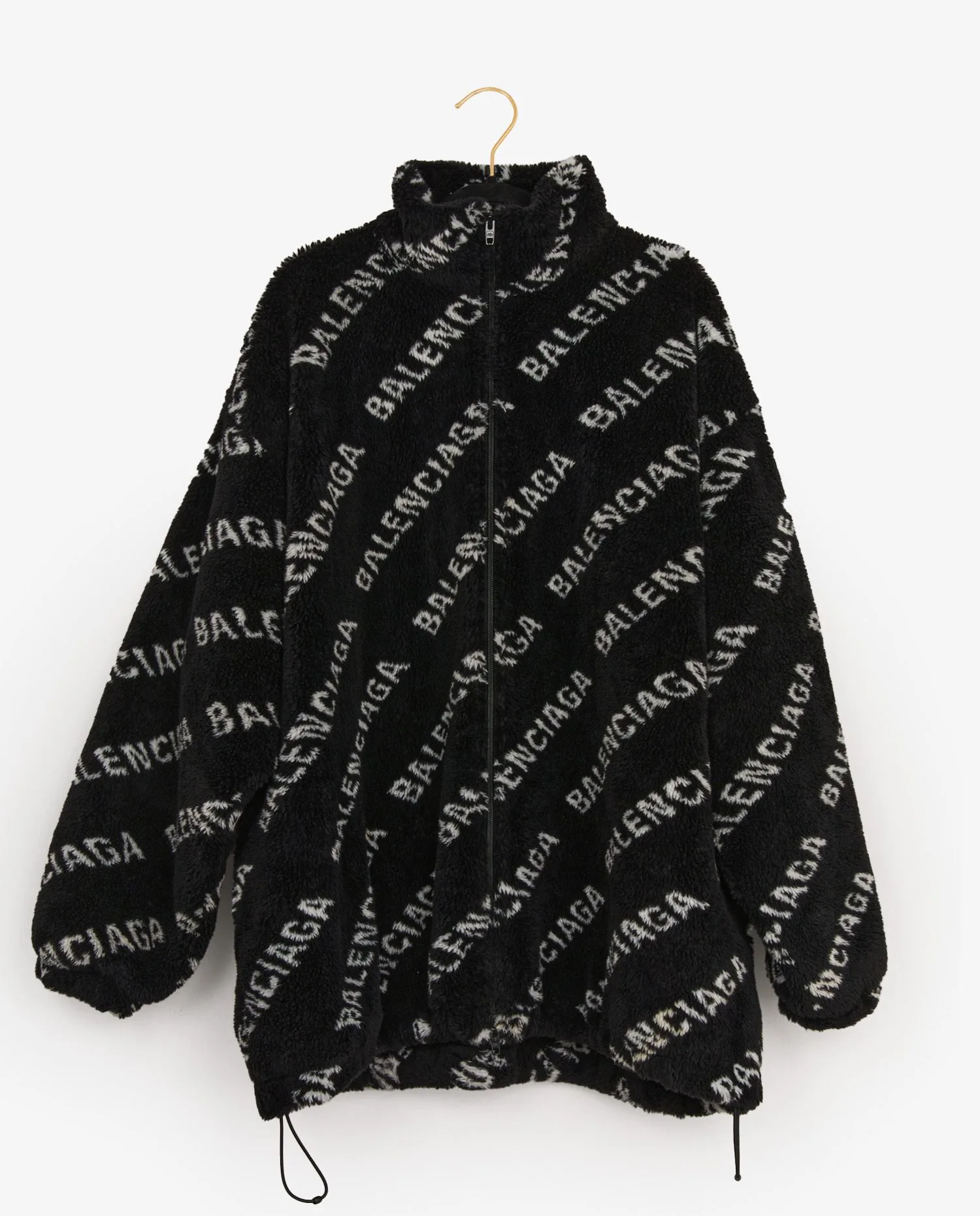 Blouson Balenciaga noir et blanc en fourrure synthétique. Fermeture centrale zippée. Doublure en cupro matelassé noir. Taille 34. En très bon état.