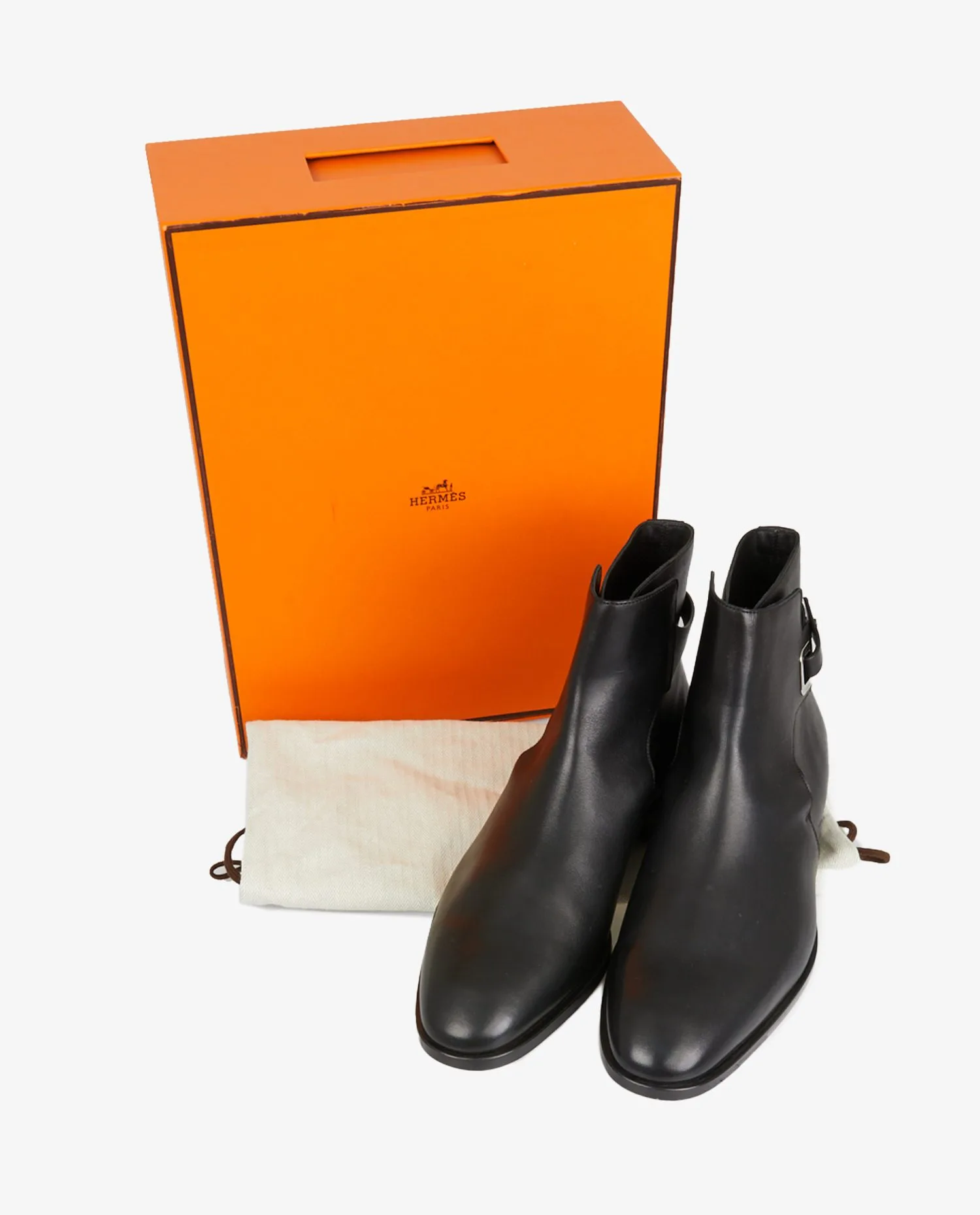 Bottines Dexter Hermès en cuir noir. Boucle argent. Taille 46. Jamais porté. Livré dans sa boite et dustbag d’origine.