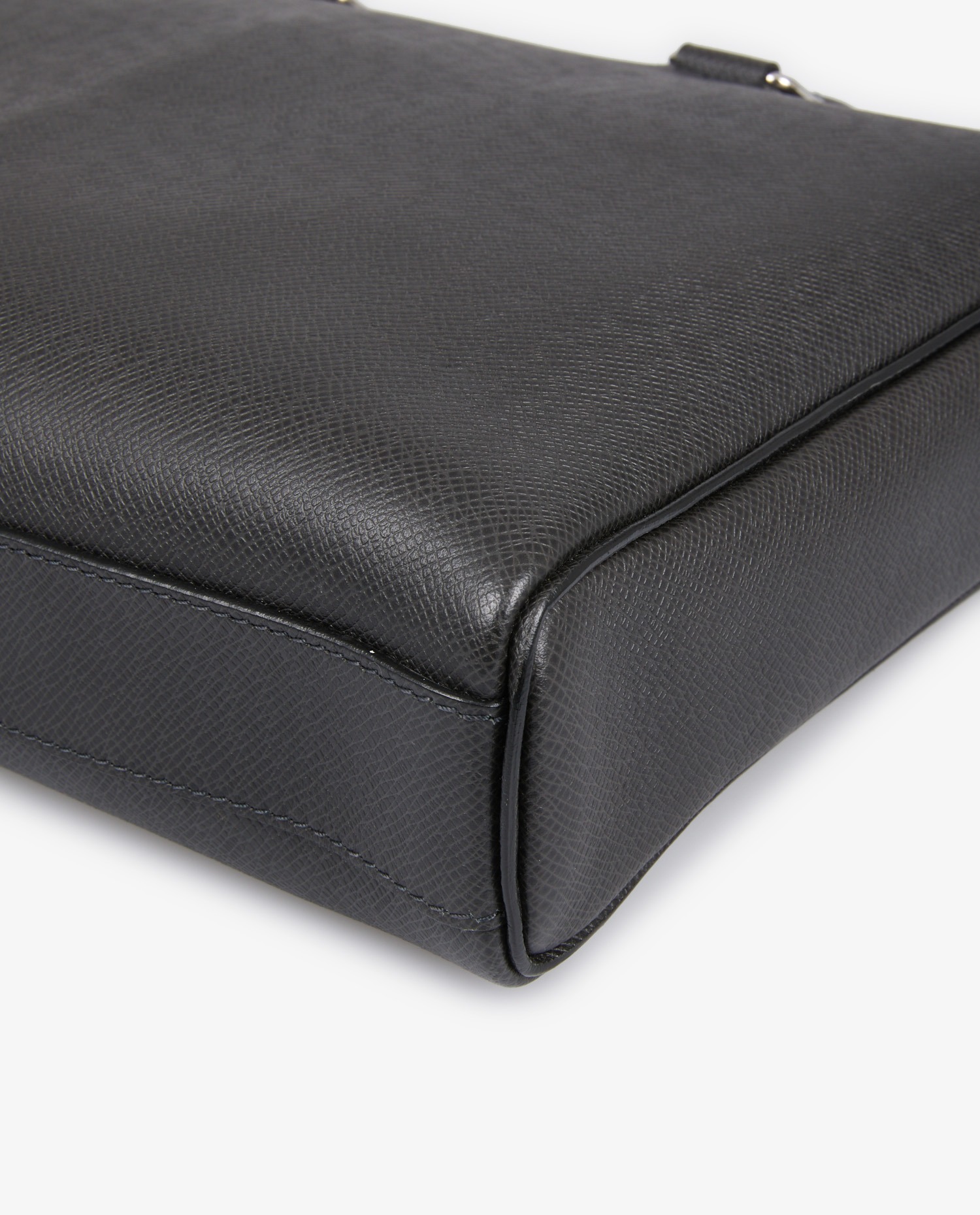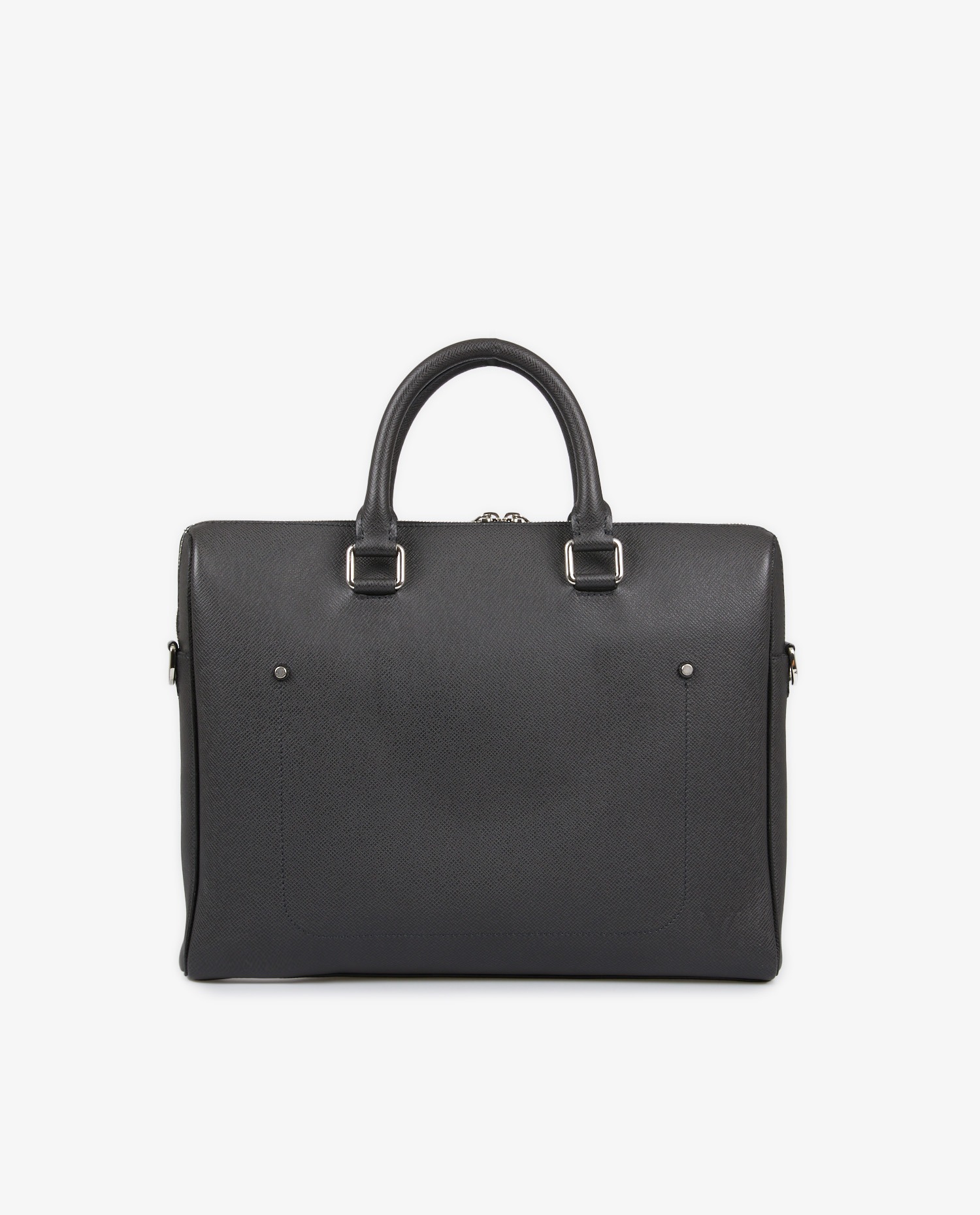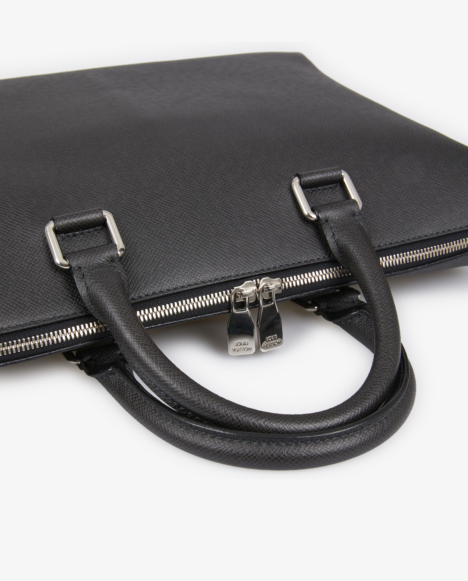 Sacoche Louis Vuitton en cuir épi noir. Porté à la main et à l’épaule à l’aide d’une bandoulière amovible (au plus court 116cm, au plus long 142cm).