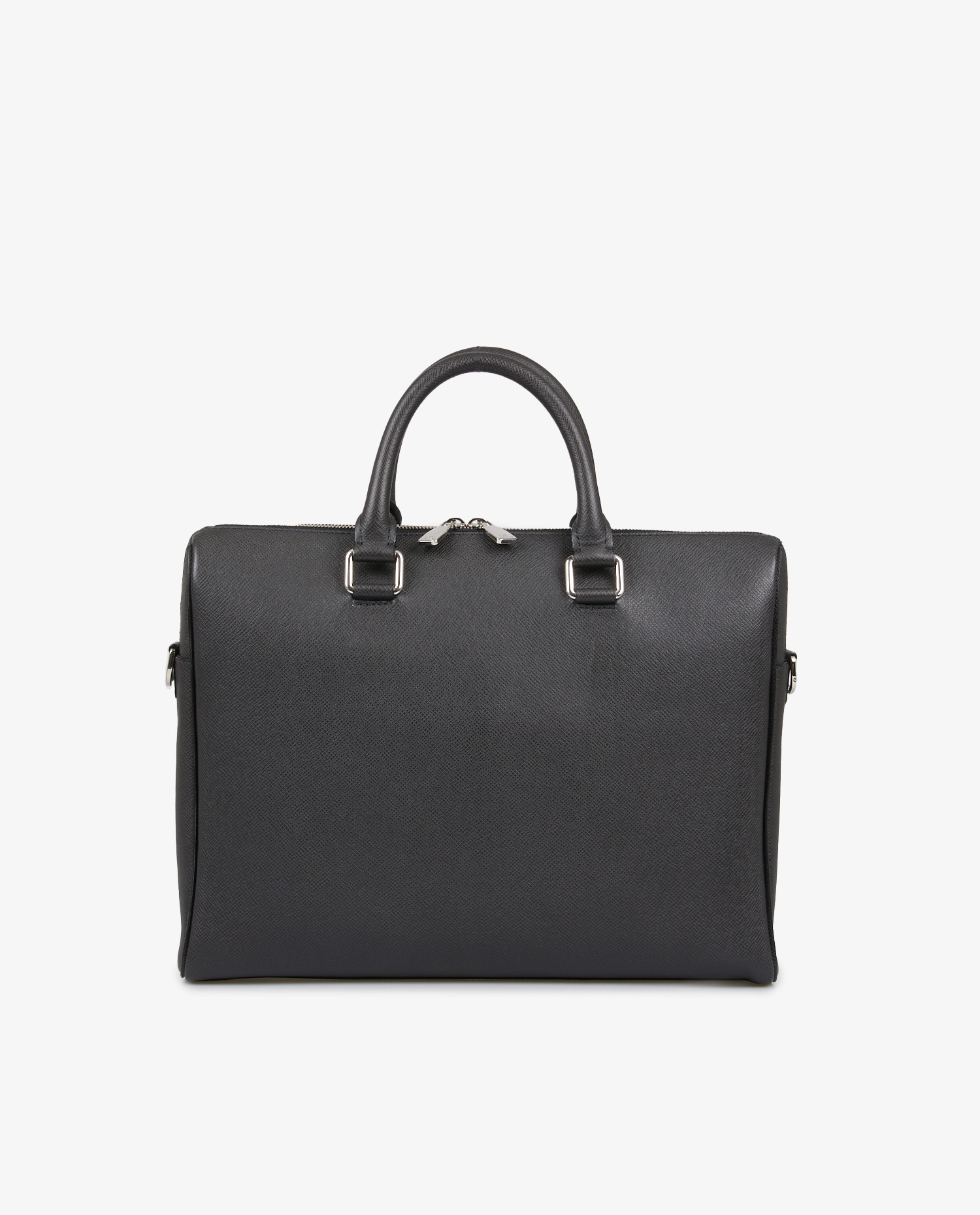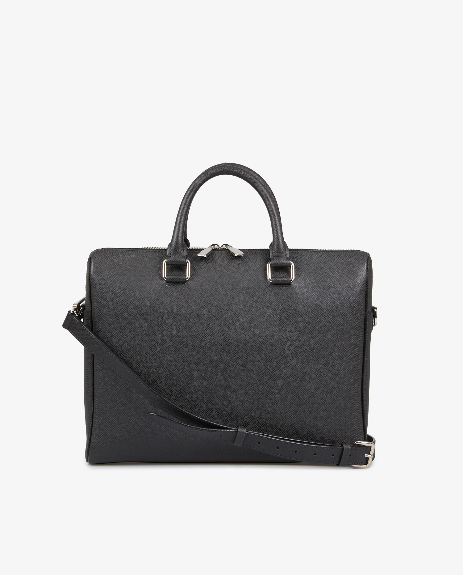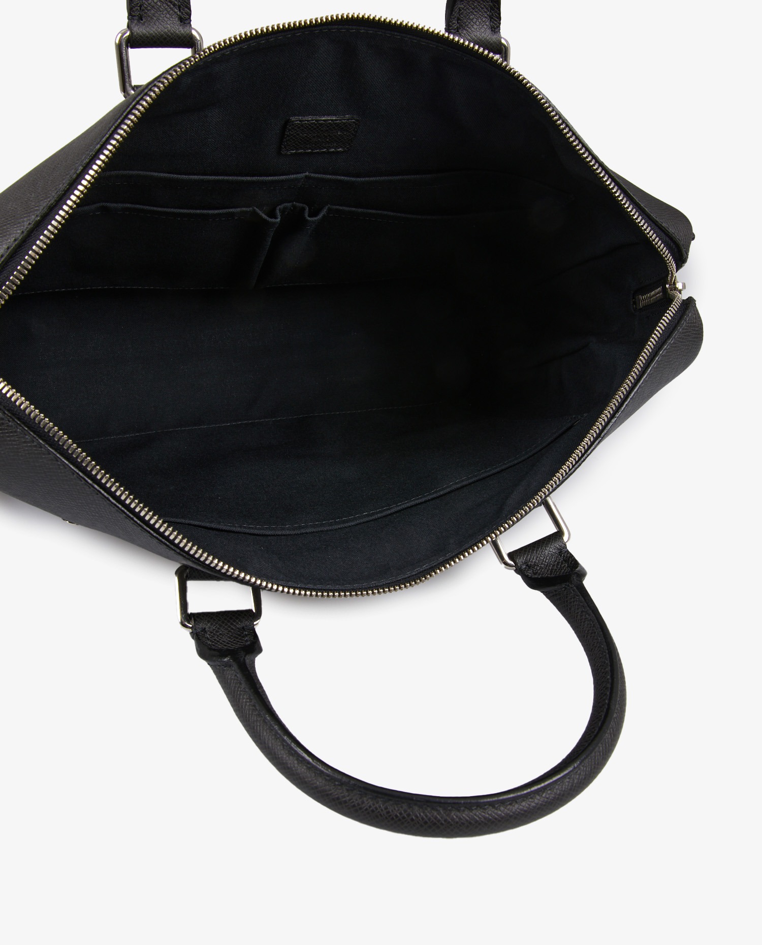 Sacoche Louis Vuitton en cuir épi noir. Porté à la main et à l’épaule à l’aide d’une bandoulière amovible (au plus court 116cm, au plus long 142cm).