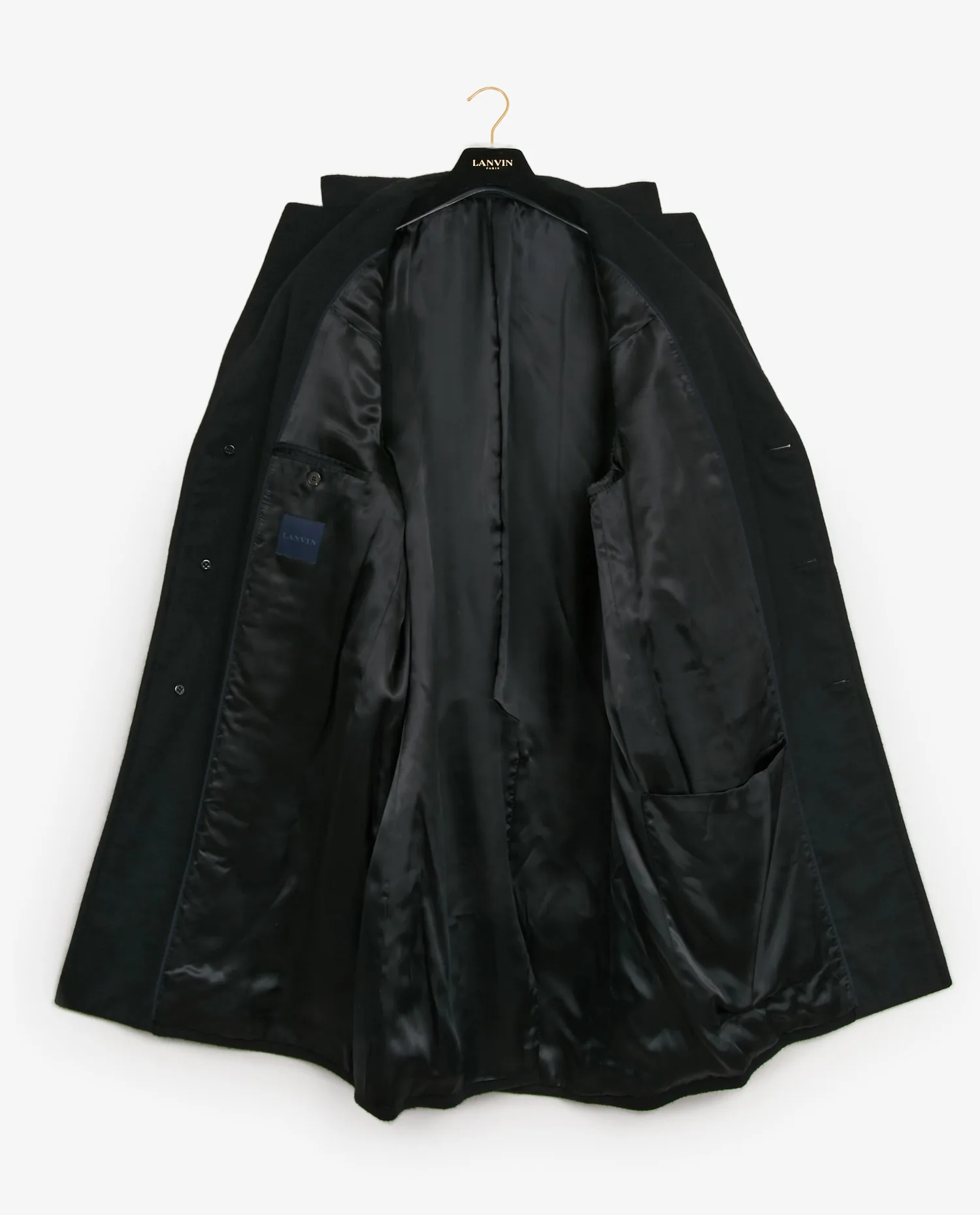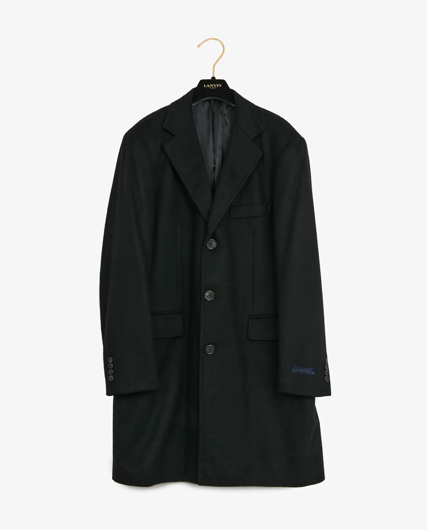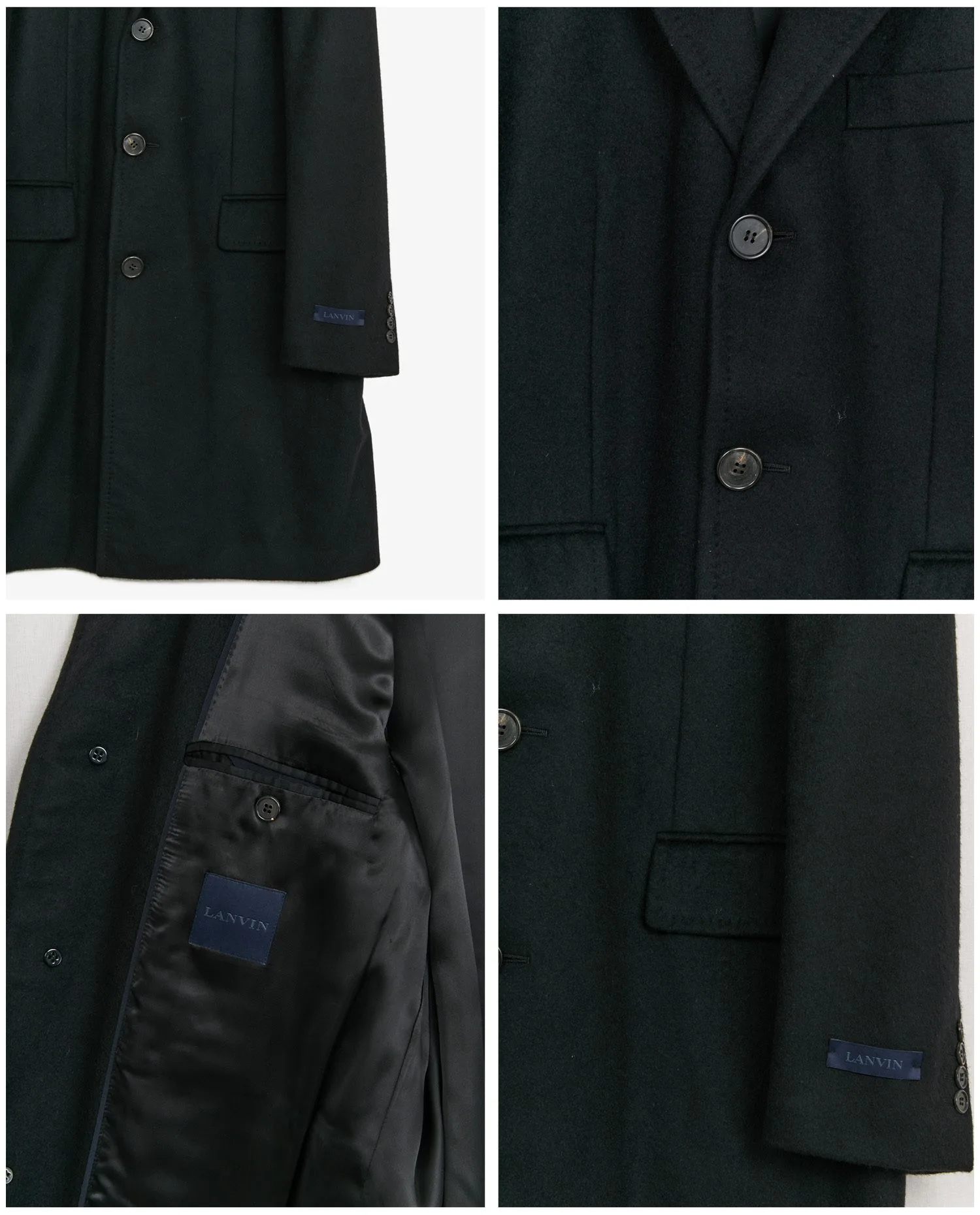 Caban Lanvin en cachemire noir avec deux poches plaquées. Taille 54. En très bon état.