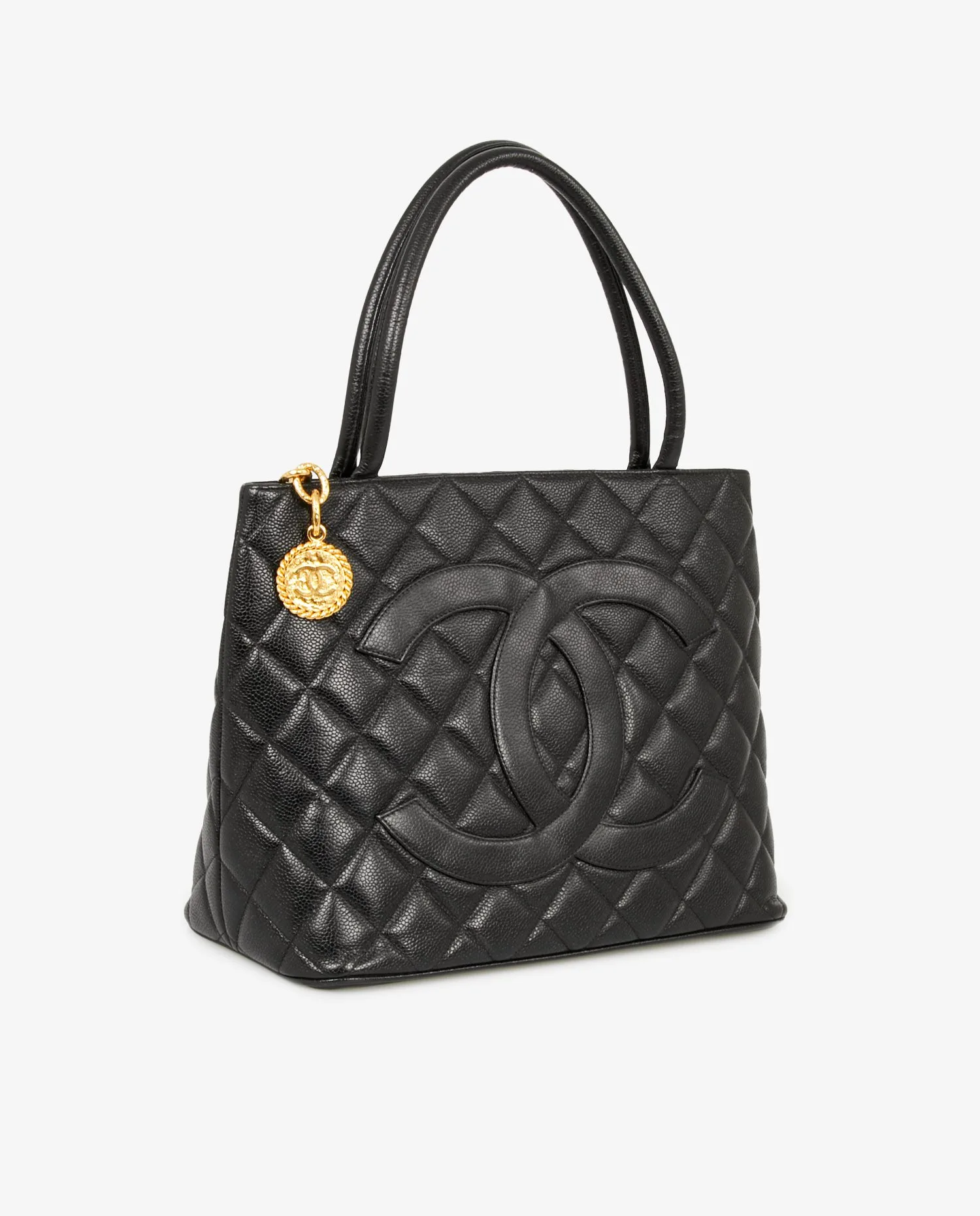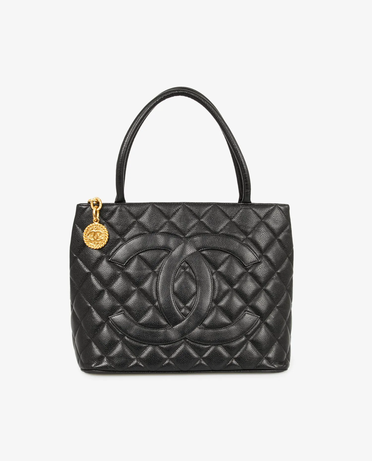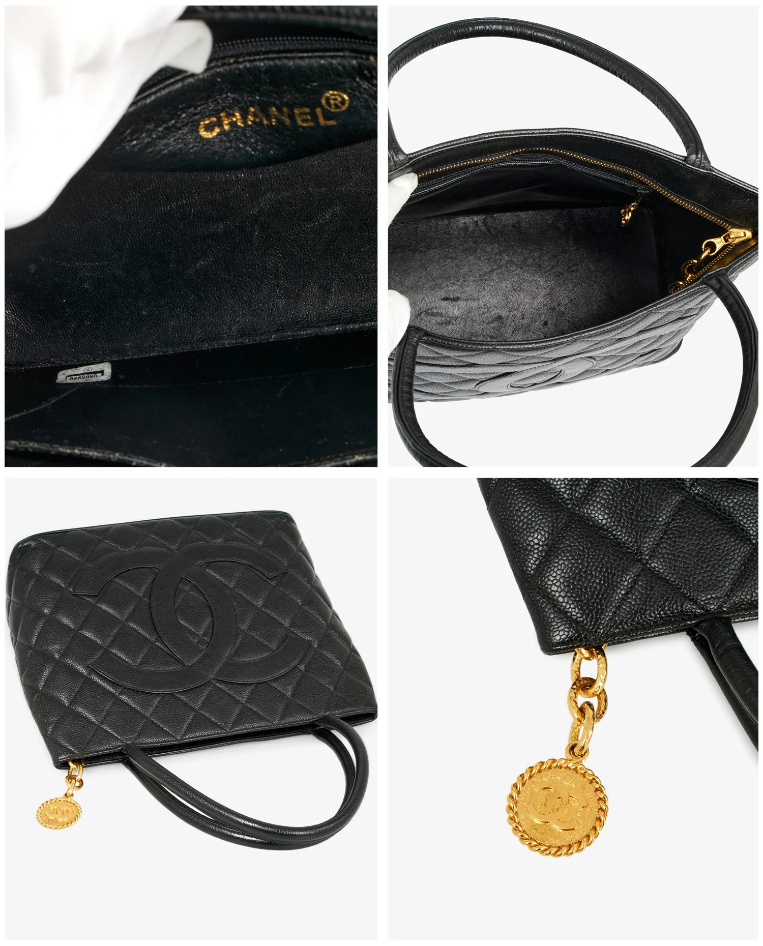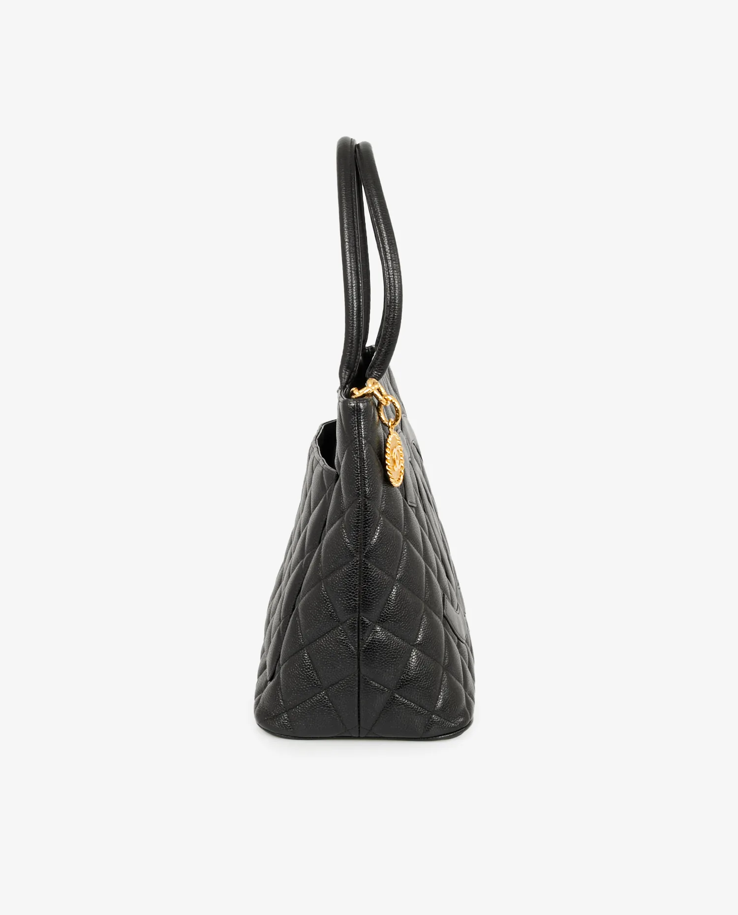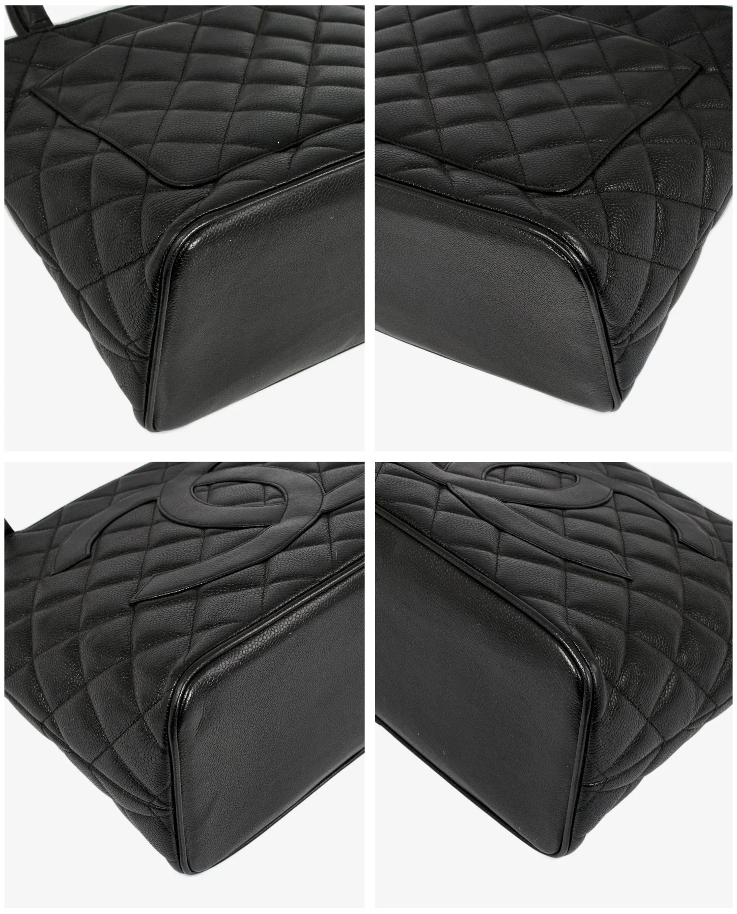 Sac cabas Chanel vintage en cuir caviar noir. Porté au bras ou à l’épaule. Fermeture zippée pour plus de sécurité. En très bon état.
