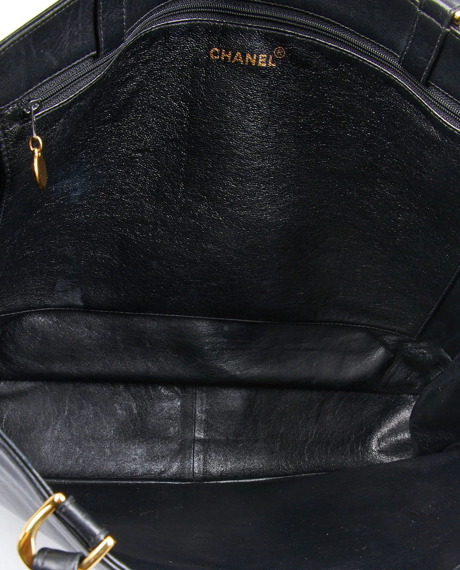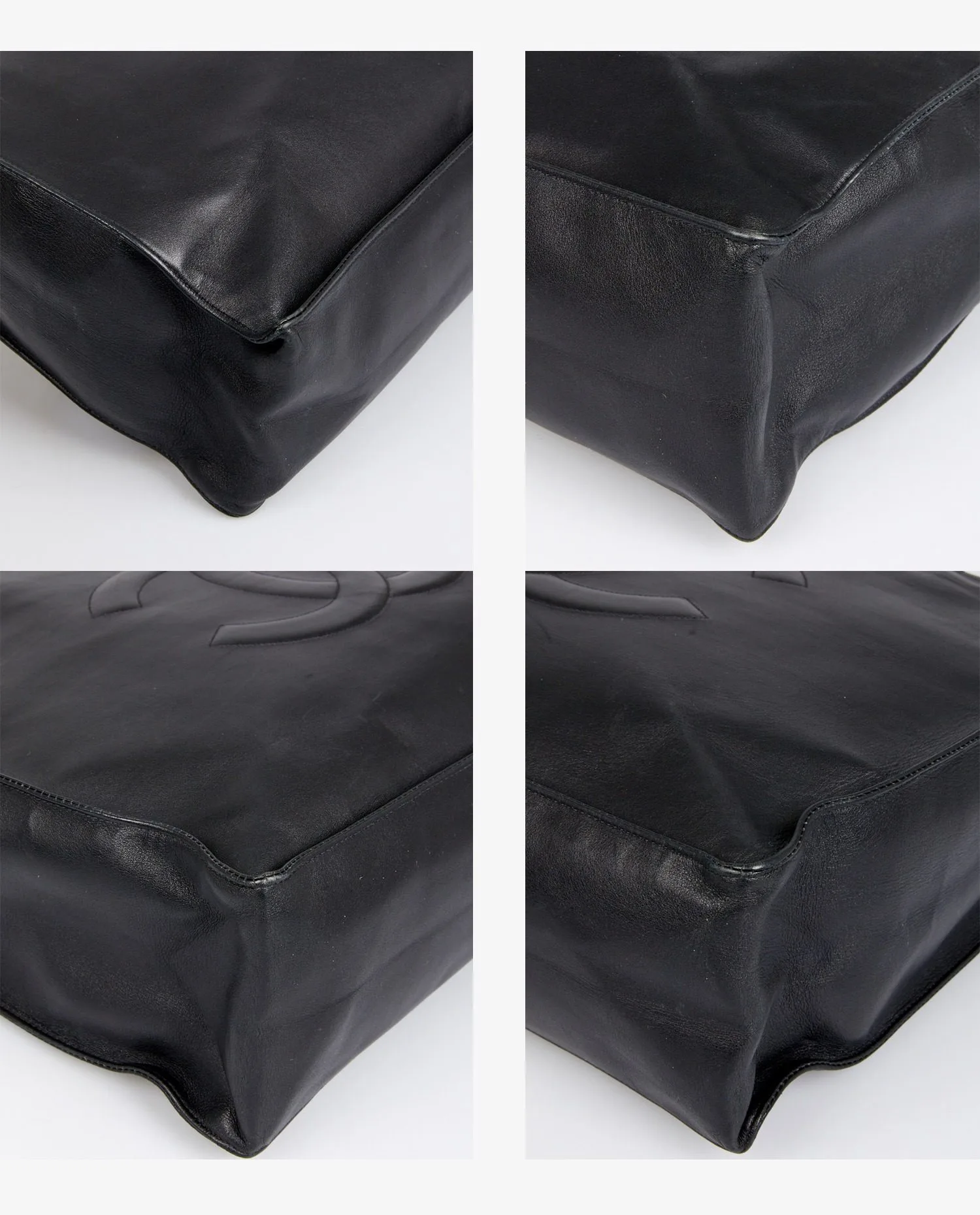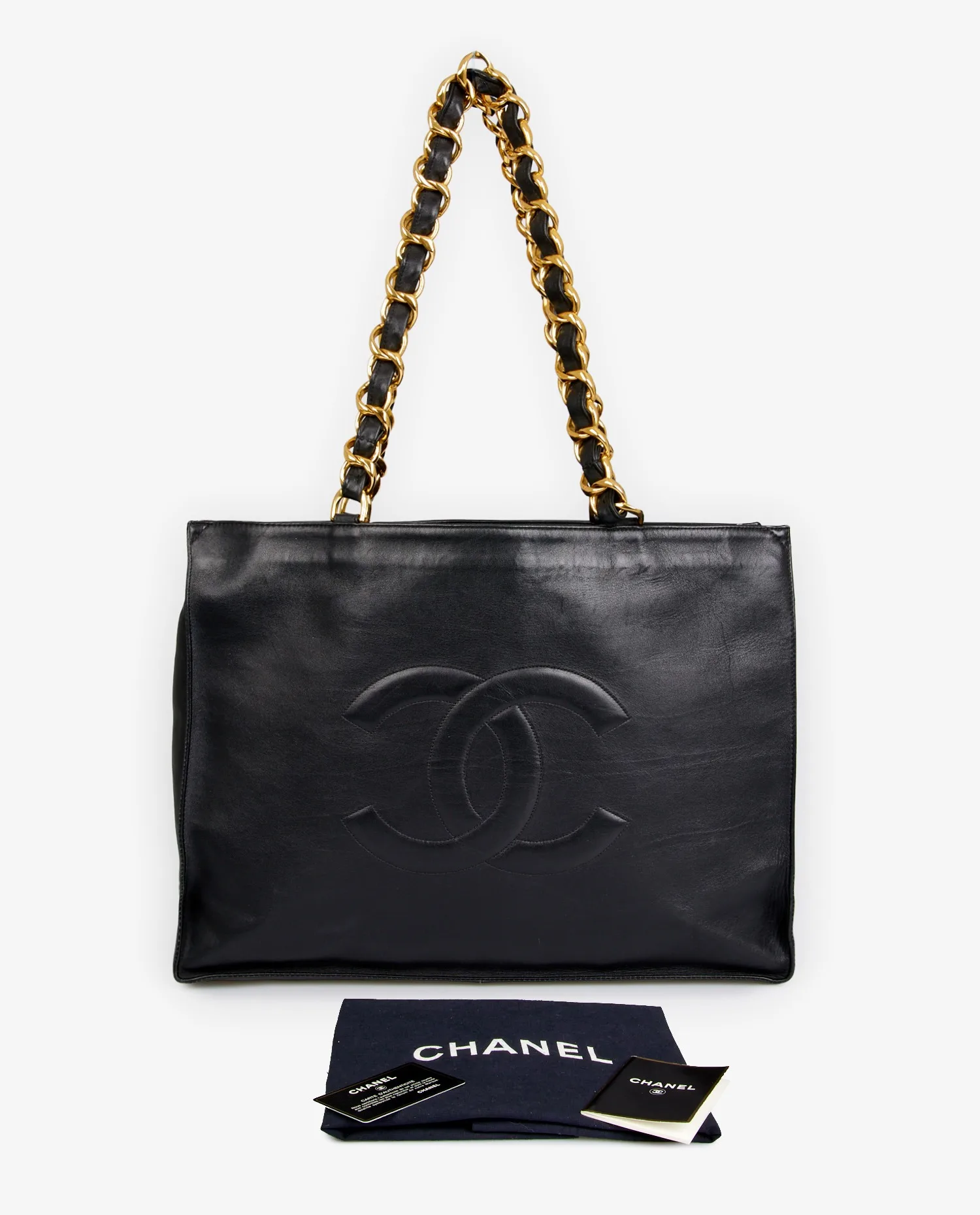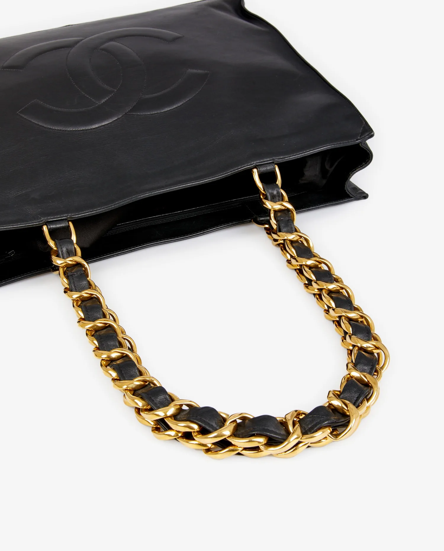 Sac cabas Chanel vintage en cuir noir. Porté épaule. En très bon état.