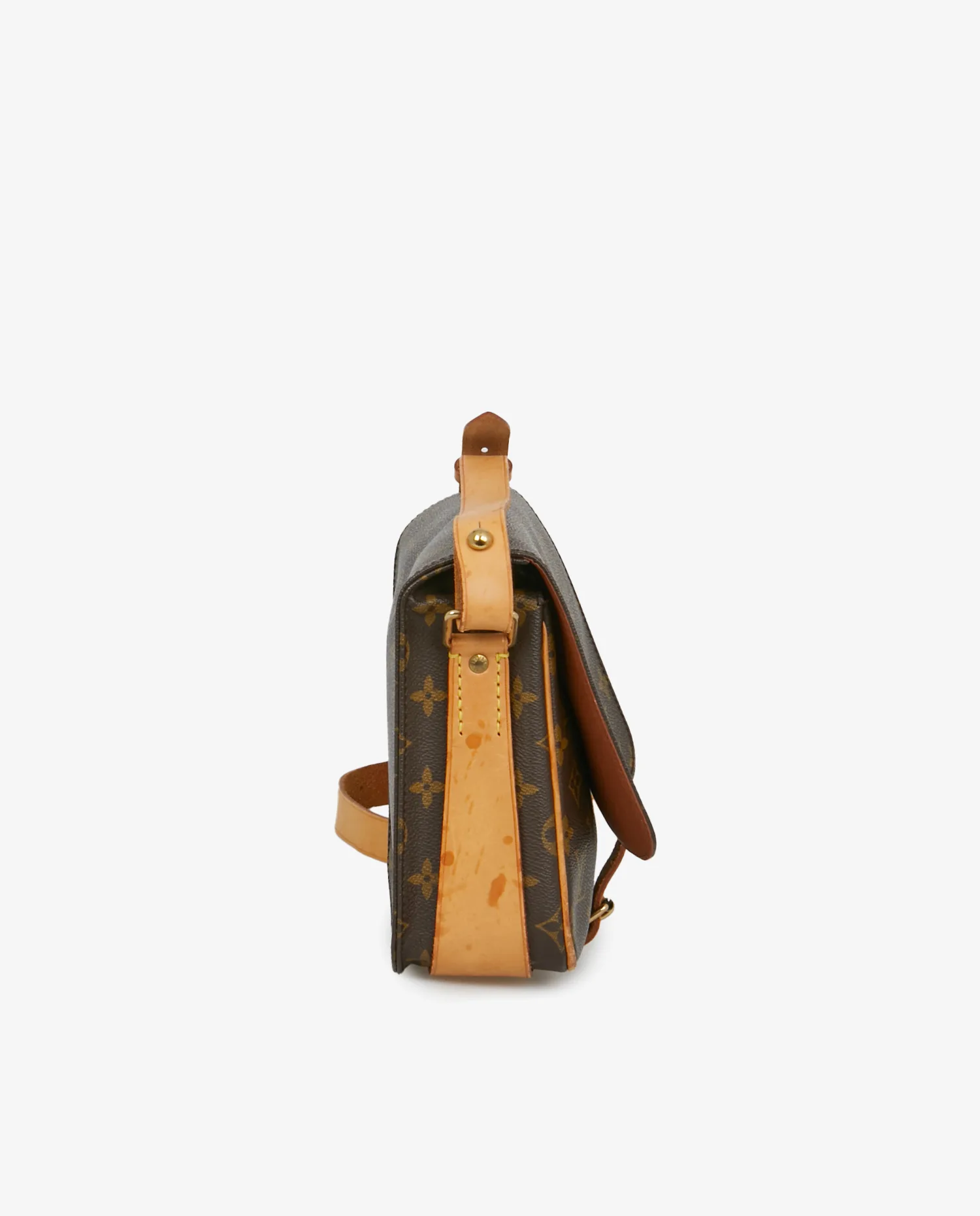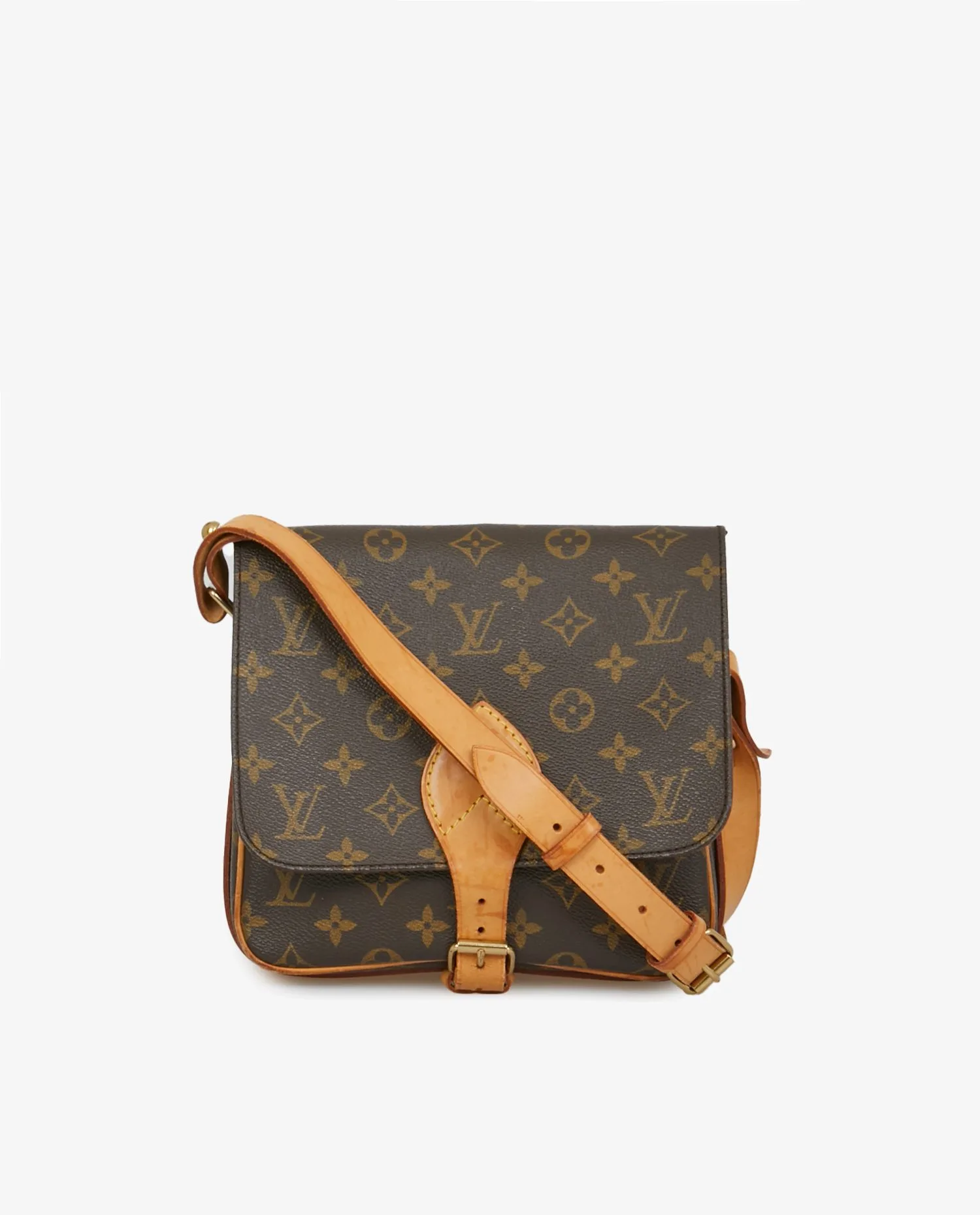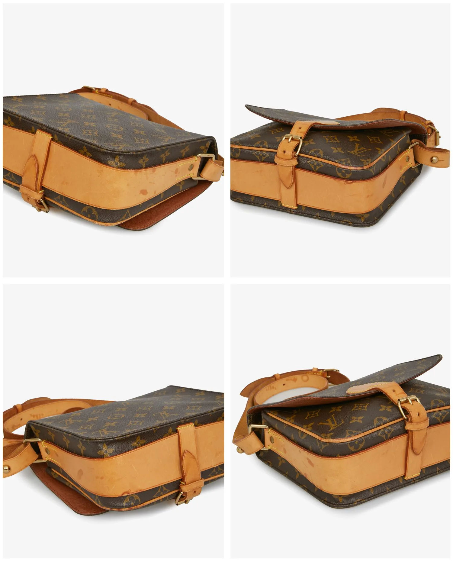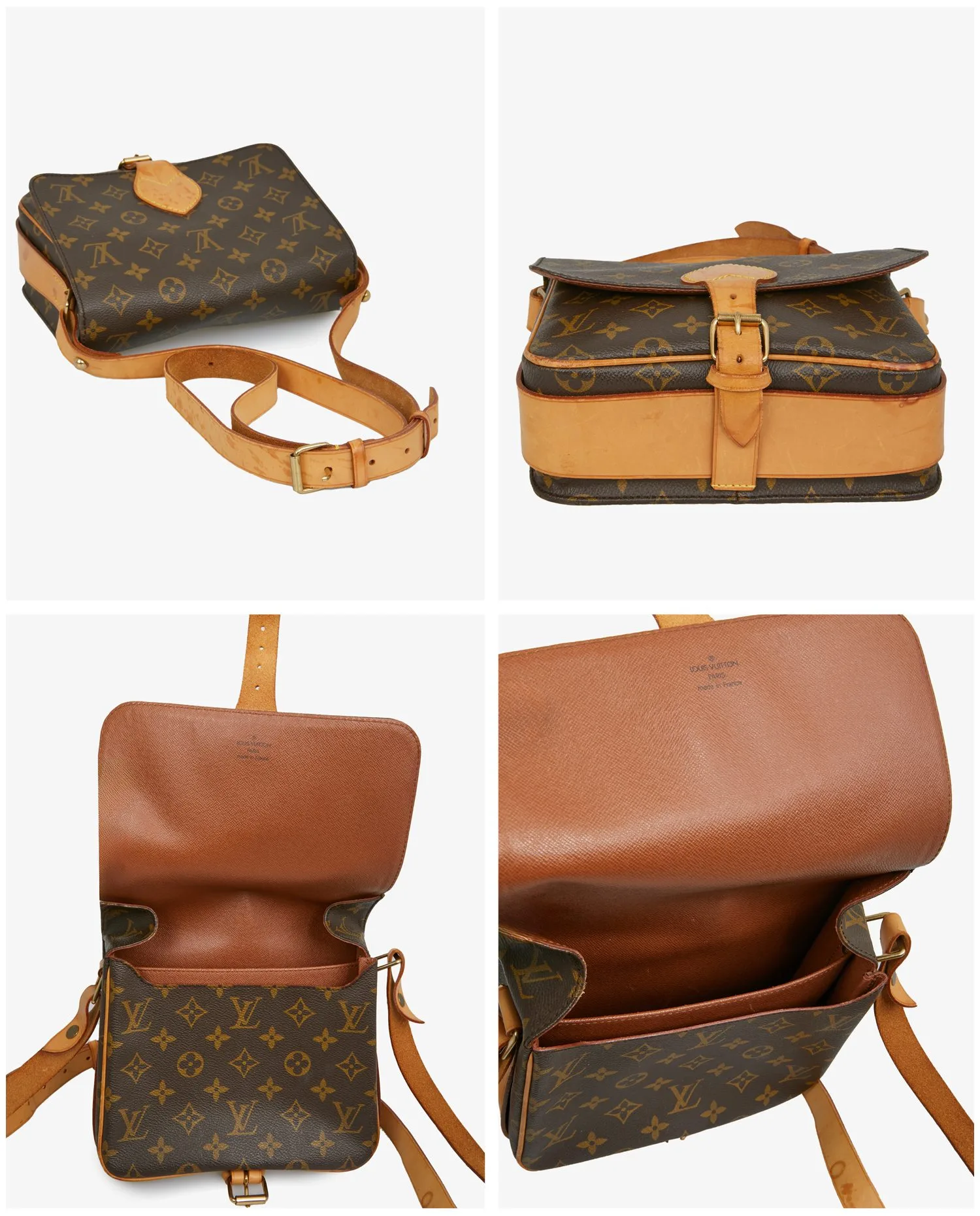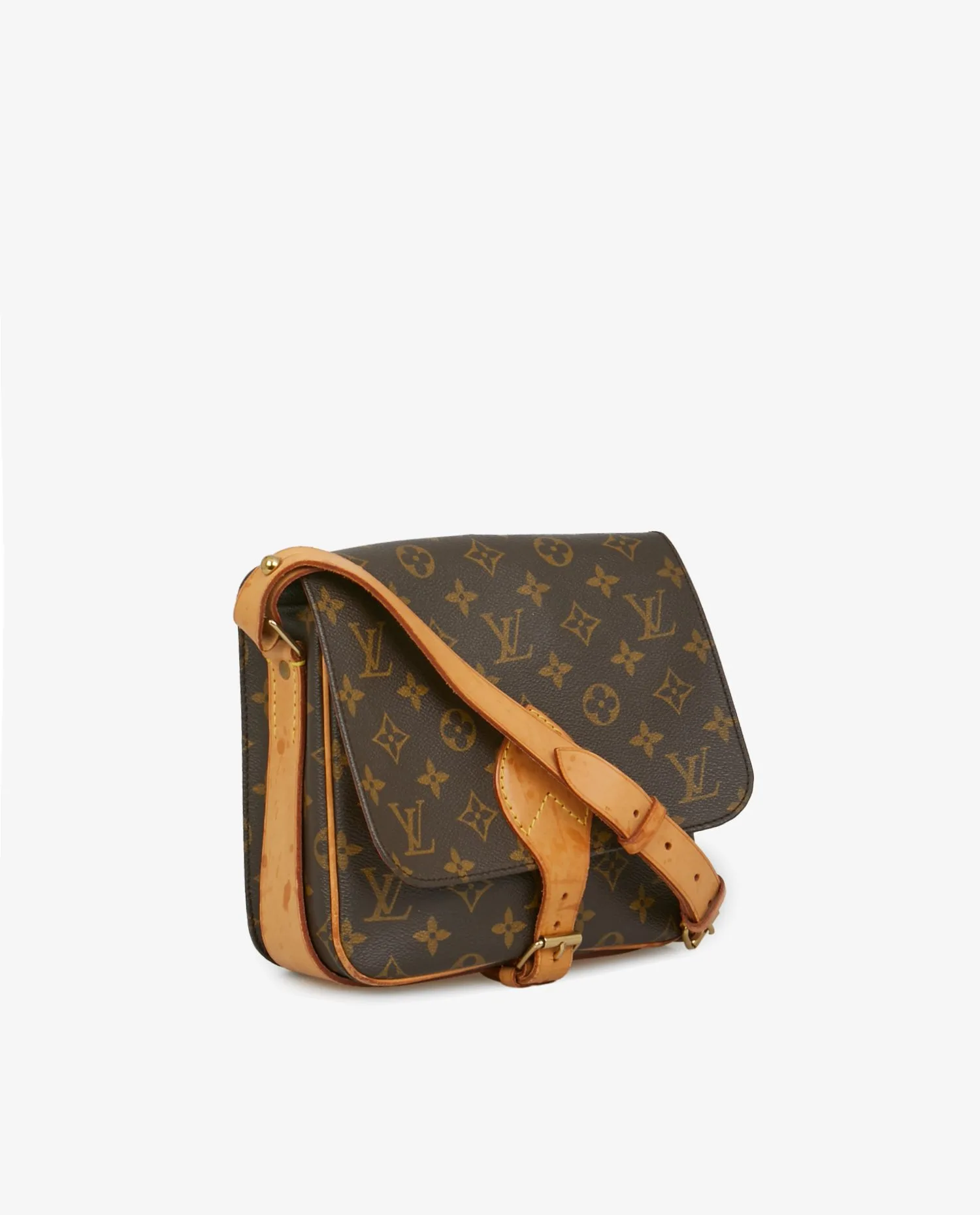 Sac cartouchière Louis Vuitton monogramme. Porté épaule ou en bandoulière réglable. En bon état. Quelques tâches d’usure d’usage visibles sur les finitons en cuir de vache. Voir les photos.