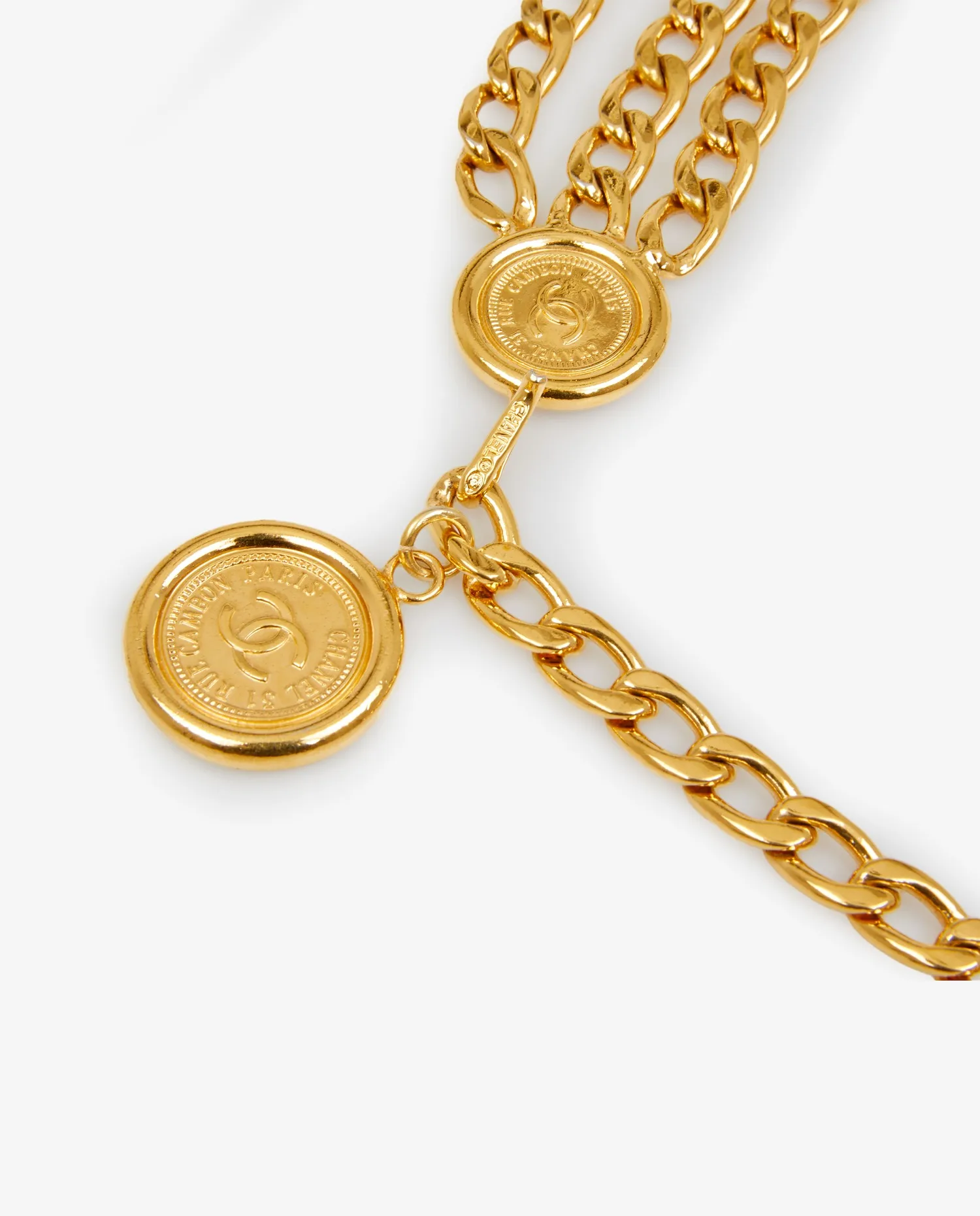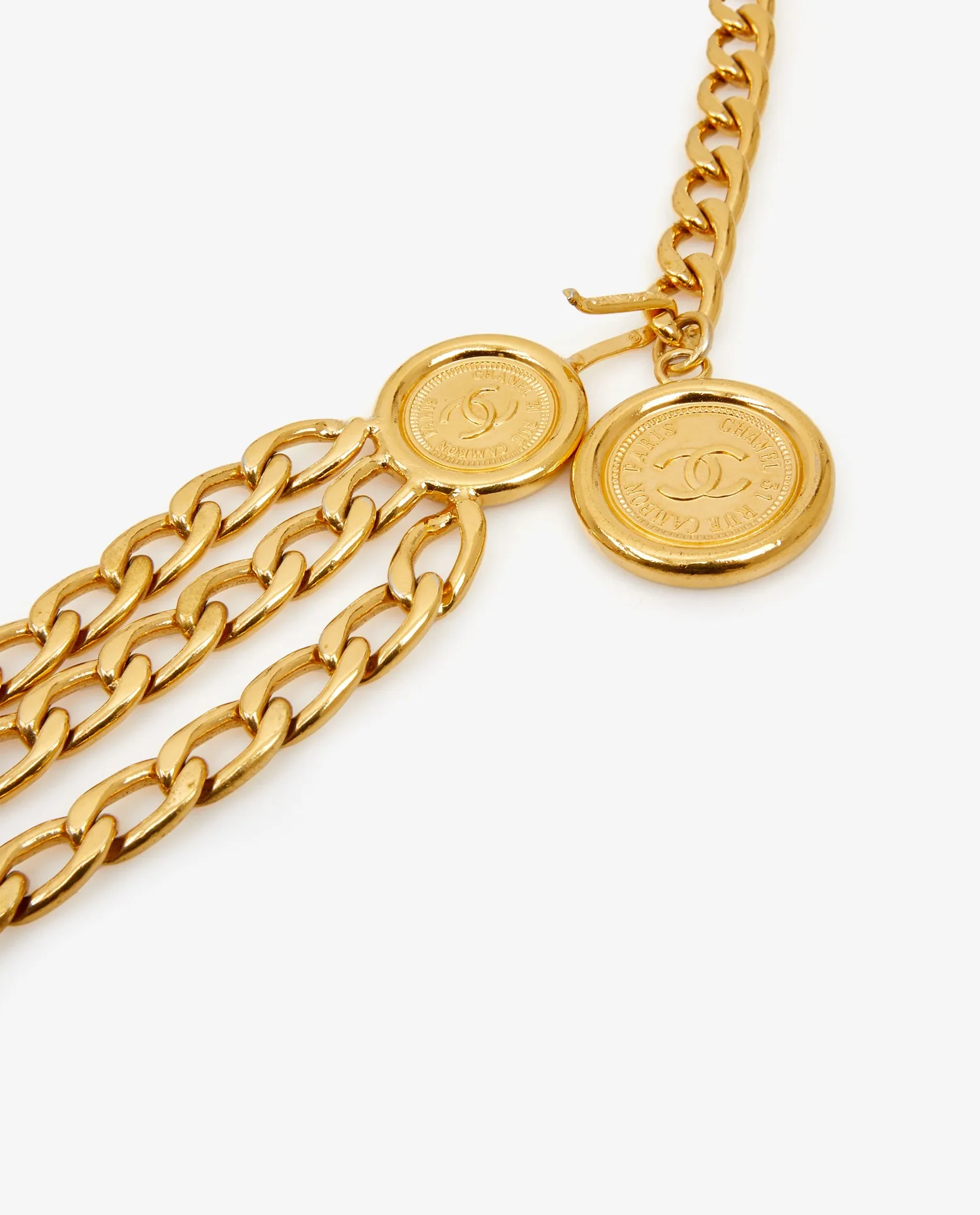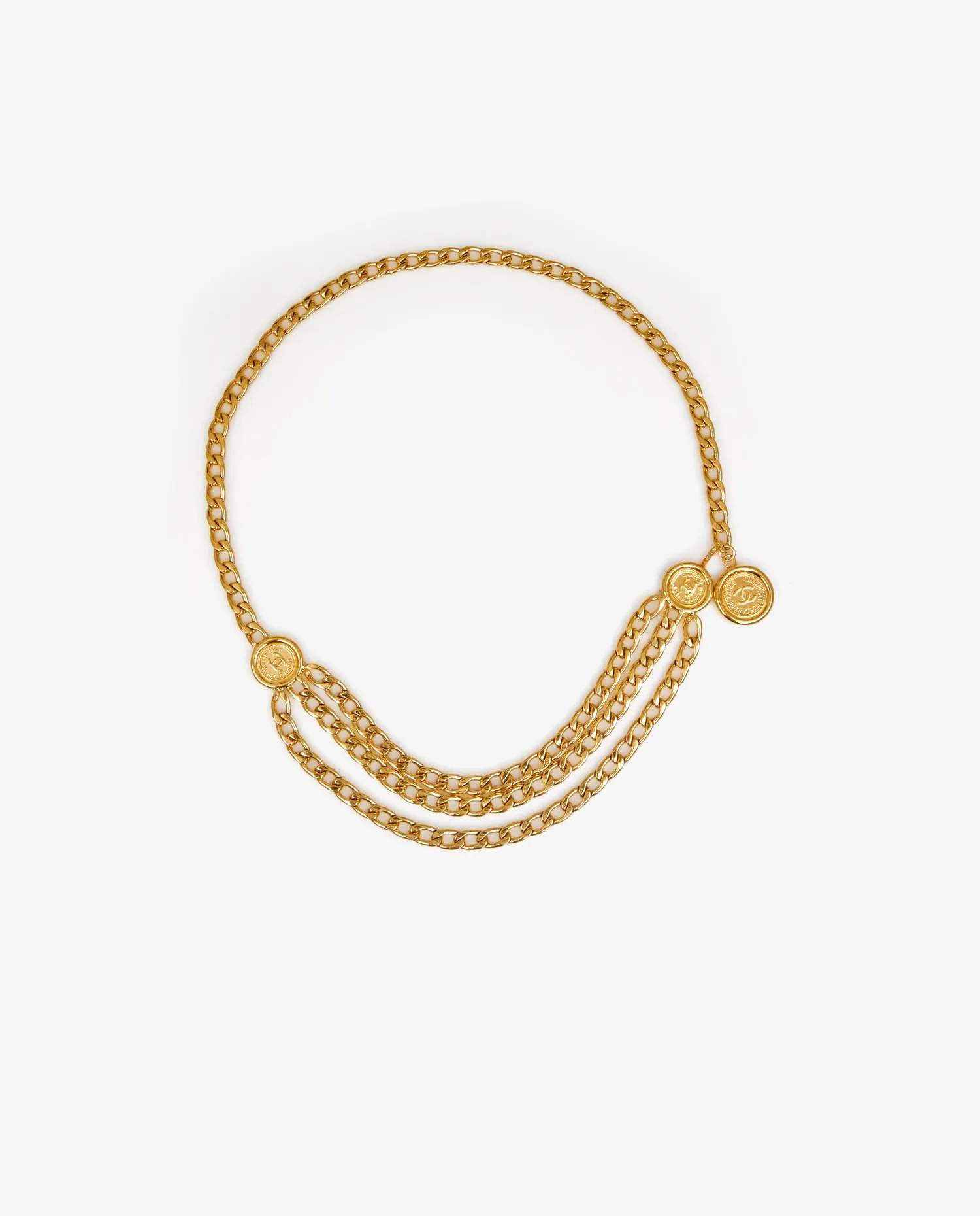 Ceinture Chanel vintage en chaine, triple rangs dorés. En très bon état.